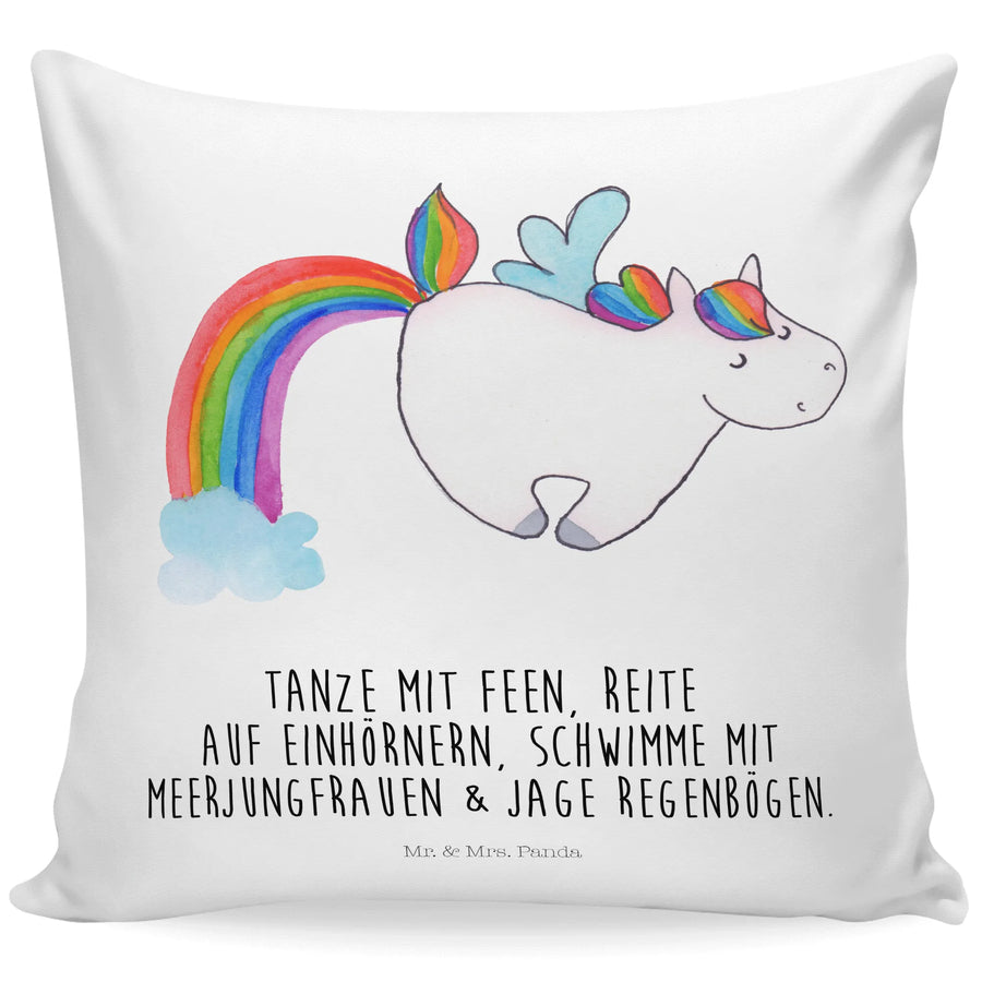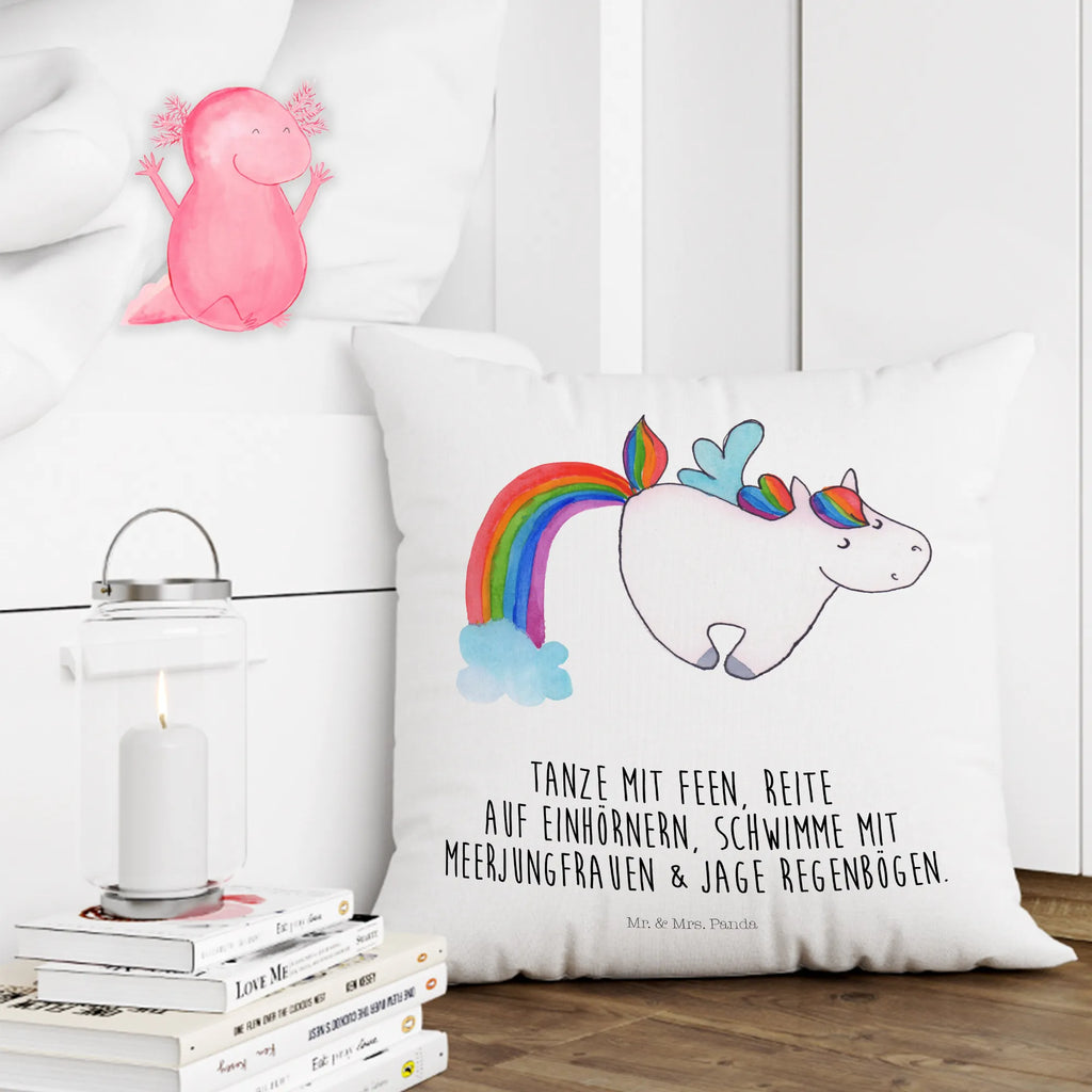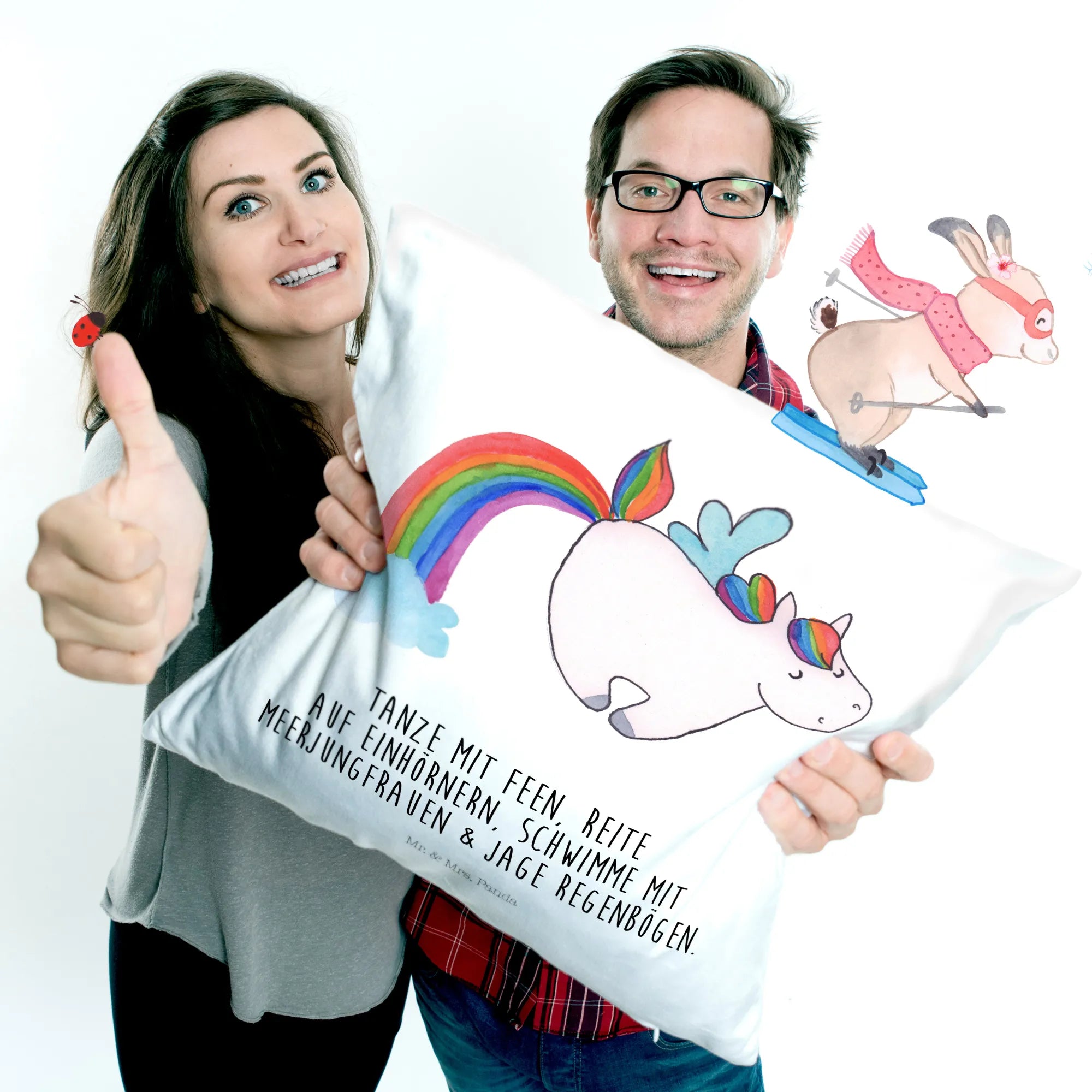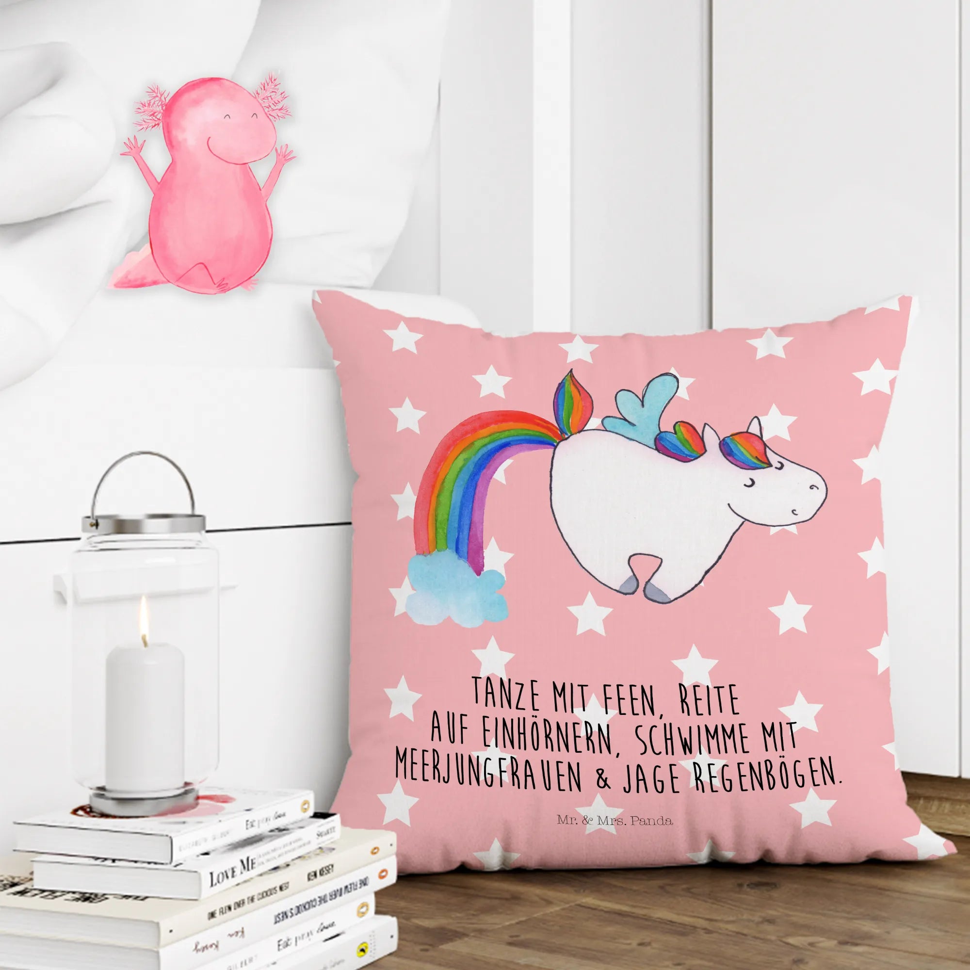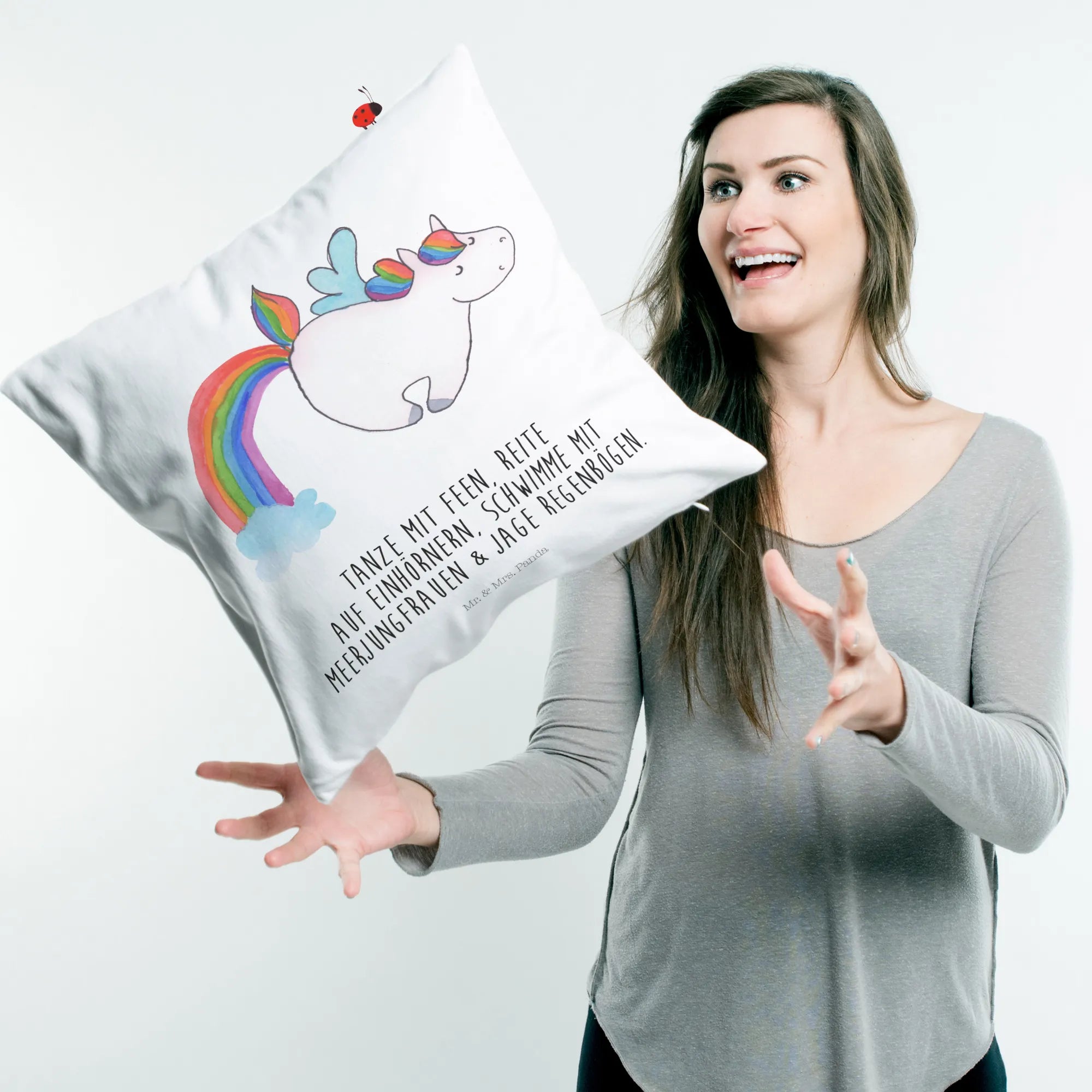 Dieses Kissen eignet sich hervorragend als Dekokissen für das Sofa, im Kinderzimmer oder als Wohlfühlaccessoire für jeden Raum. Es ist auch einfach ideal als Sofakissen oder für kreative Wohnideen. Mit einem Kissen von Mr. & Mrs. Panda bringst du die Magie von Einhörnern und Regenbogen direkt in dein Zuhause.