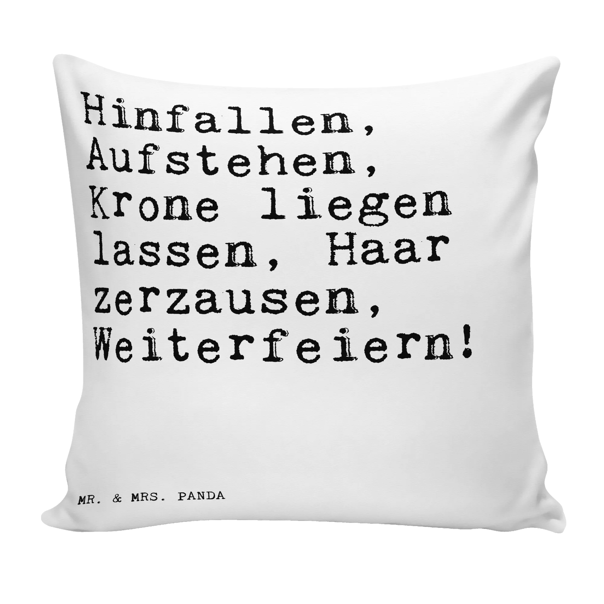 Das perfekte Kissen für alle Anlässe ist hier! Das 40x40 Kissen von Mr. & Mrs. Panda bringt einen Hauch von Freude und Gemütlichkeit in dein Zuhause. Egal ob als Sofakissen, Dekokissen oder einfach zum Kuscheln – dieses Kissen ist vielseitig einsetzbar. Bedruckt mit dem witzigen Spruch "Hinfallen, Aufstehen, Krone liegen lassen, Haar zerzausen, Weiterfeiern!" ist es ein echter Hingucker und sorgt garantiert für ein Lächeln. Es eignet sich hervorragend als Geschenk für Freunde und Freundinnen, ob zum Geburtstag, zur Einweihung oder einfach nur so! Die Botschaft passt perfekt zu jeder Party und jedem entspannten Abend auf der Couch.