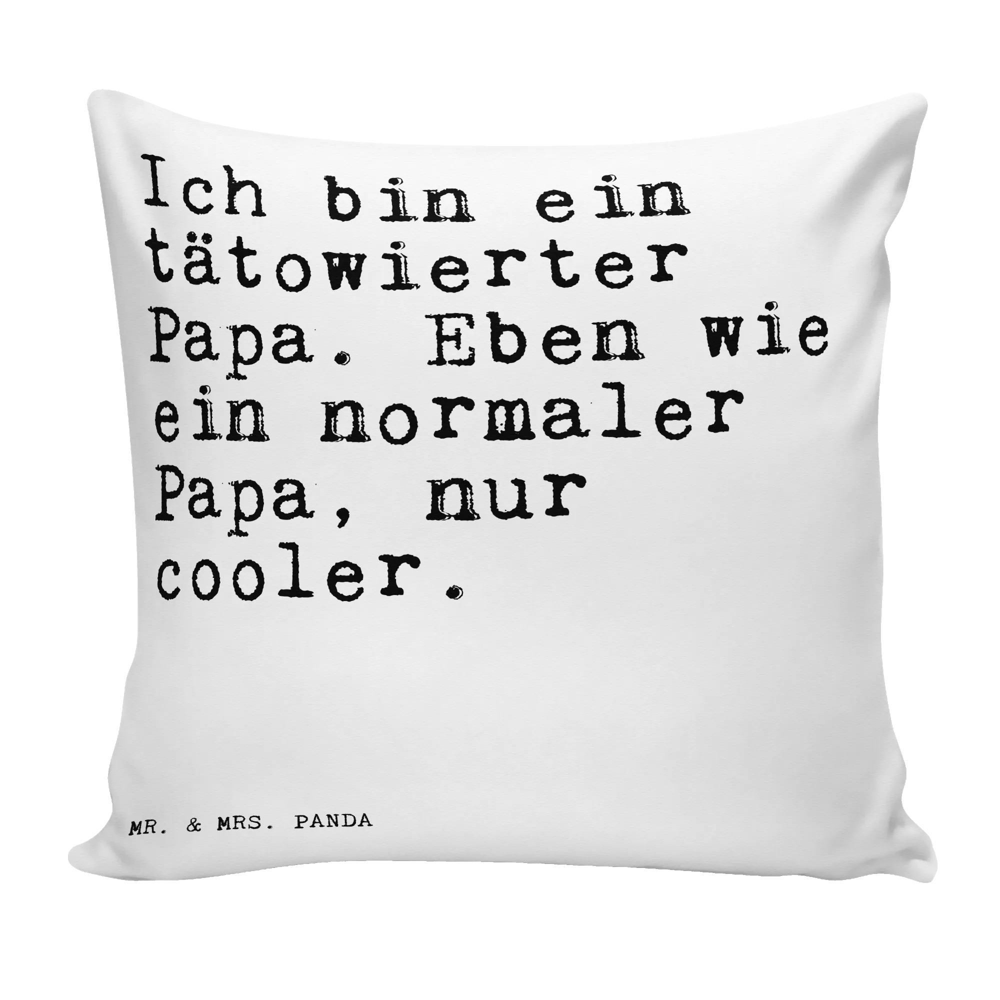 Du suchst nach dem perfekten Geschenk für einen coolen Papa? Dann ist das 40x40 Kissen "Ich bin ein tätowierter Papa. Eben wie ein normaler Papa, nur cooler." von Mr. & Mrs. Panda genau das Richtige! Dieses Kissen ist nicht nur stylish, sondern auch super bequem und kuschelig. Hergestellt aus hochwertiger und superfluschiger Mikrofaser, bietet es nicht nur einen angenehmen Komfort, sondern sieht dabei auch noch toll aus!
