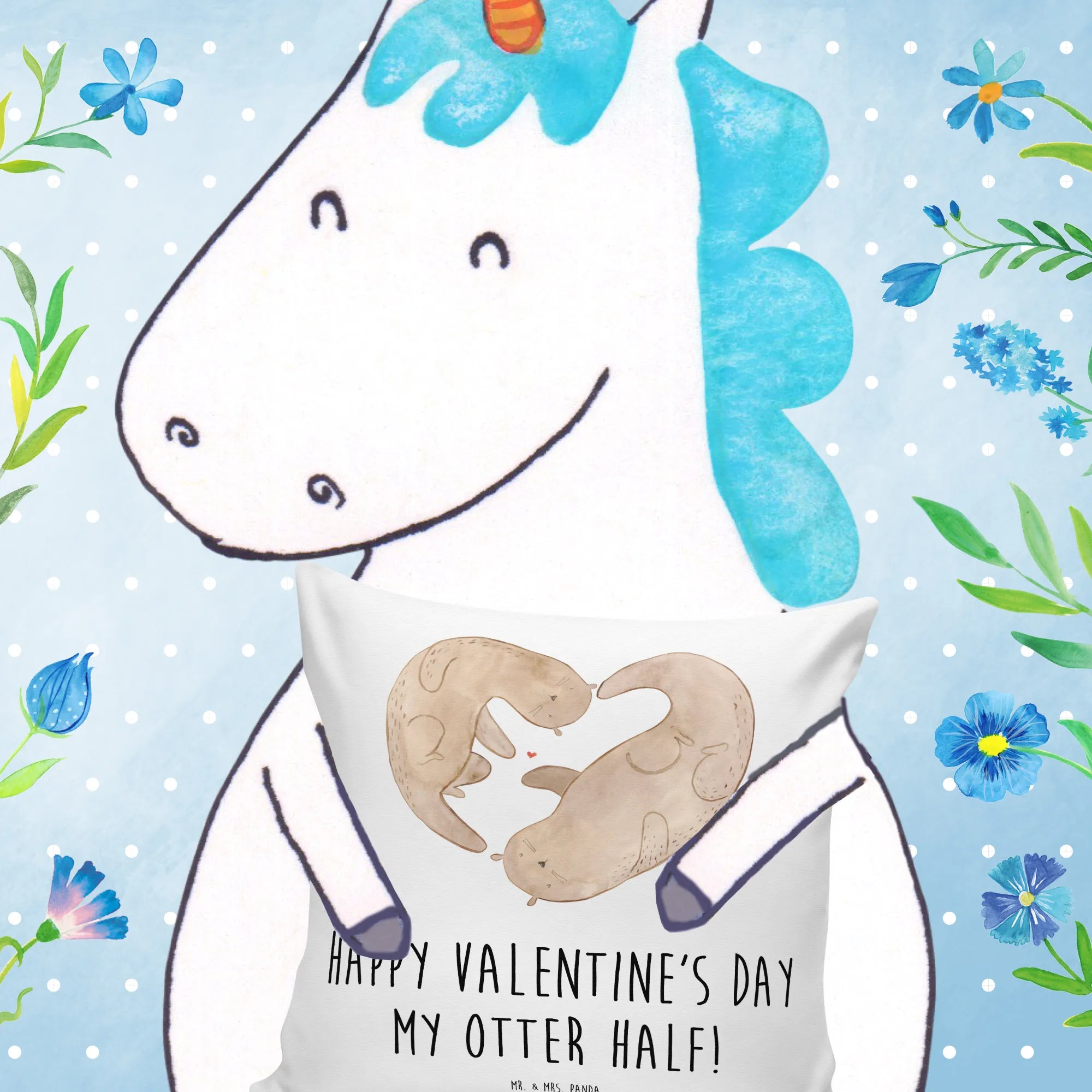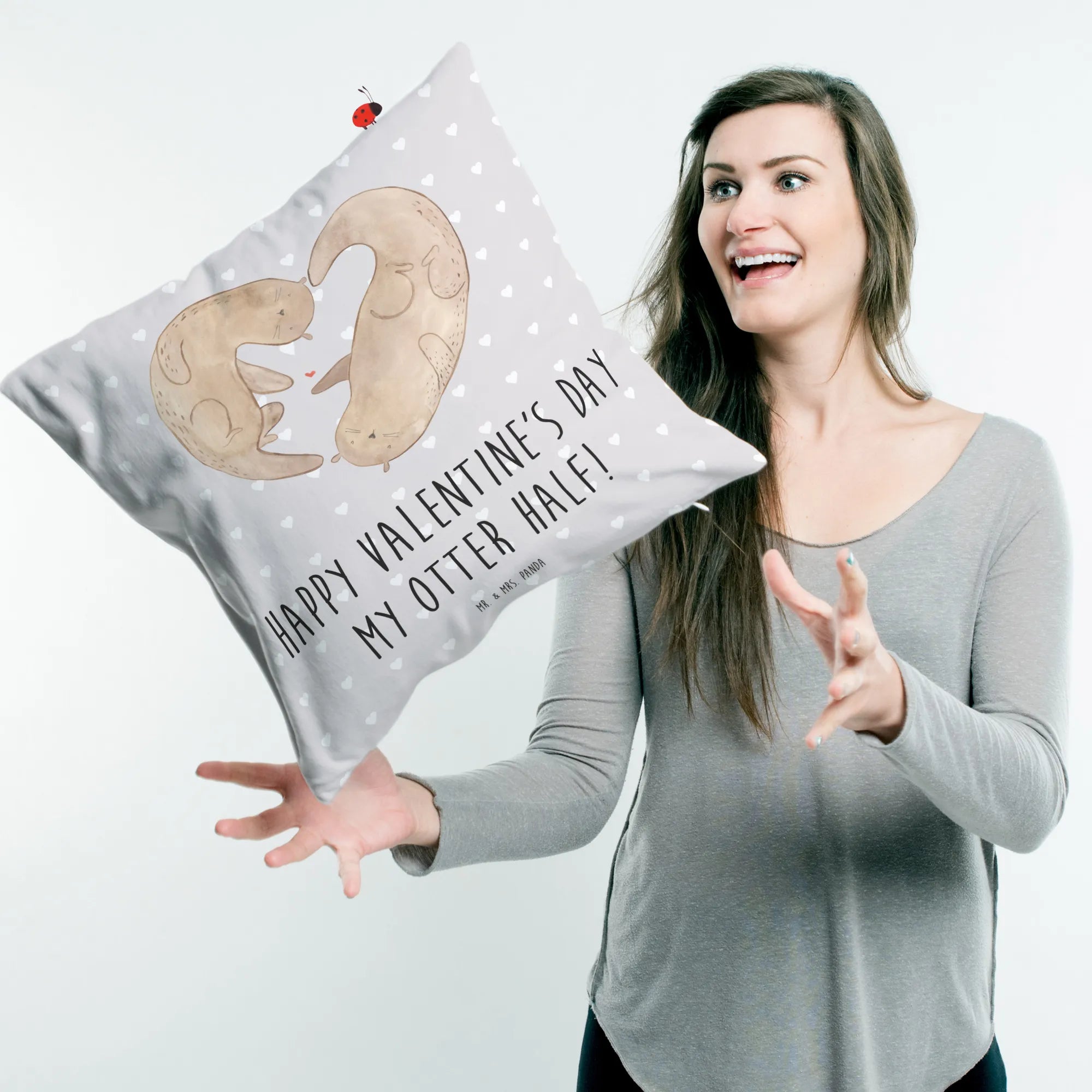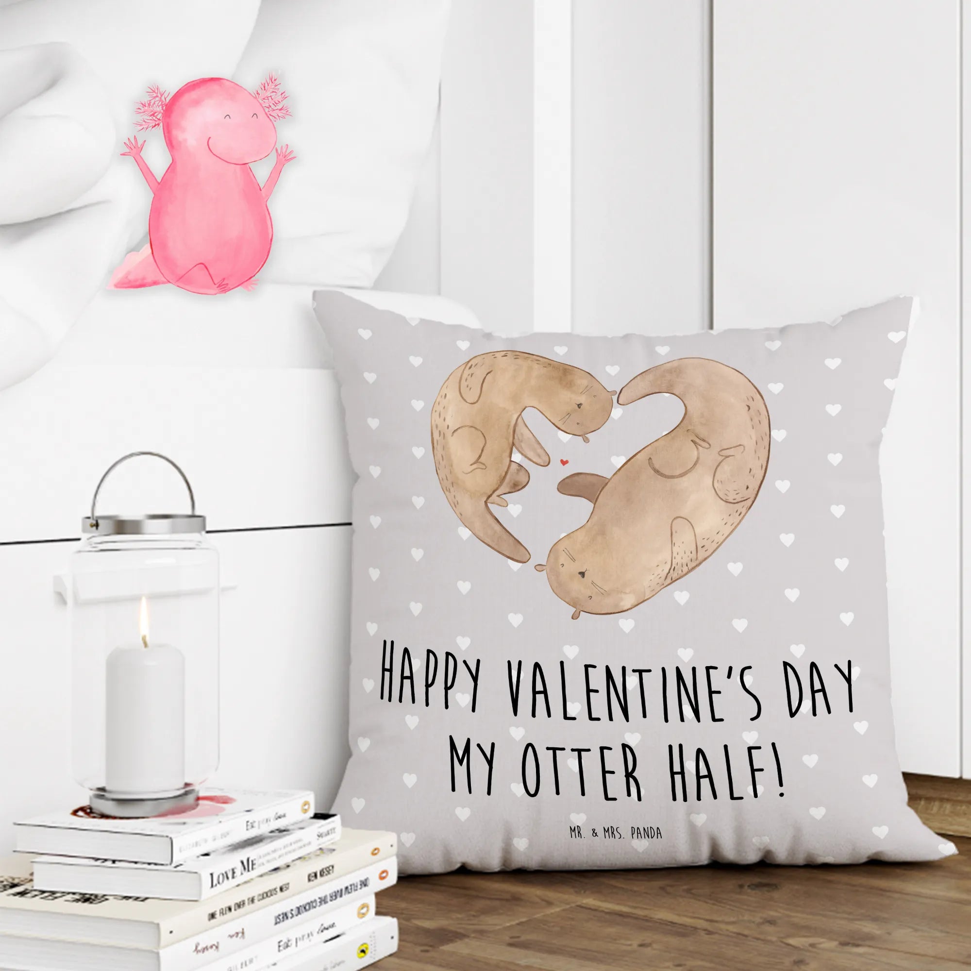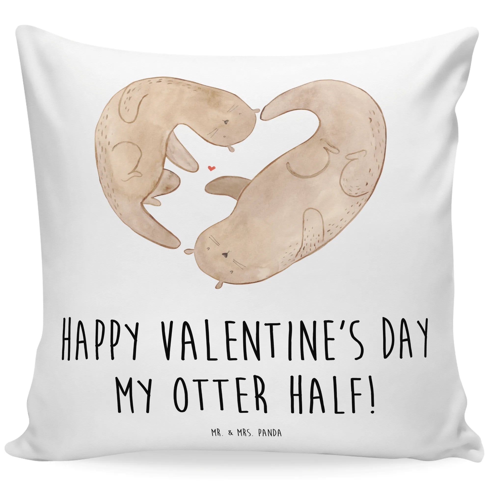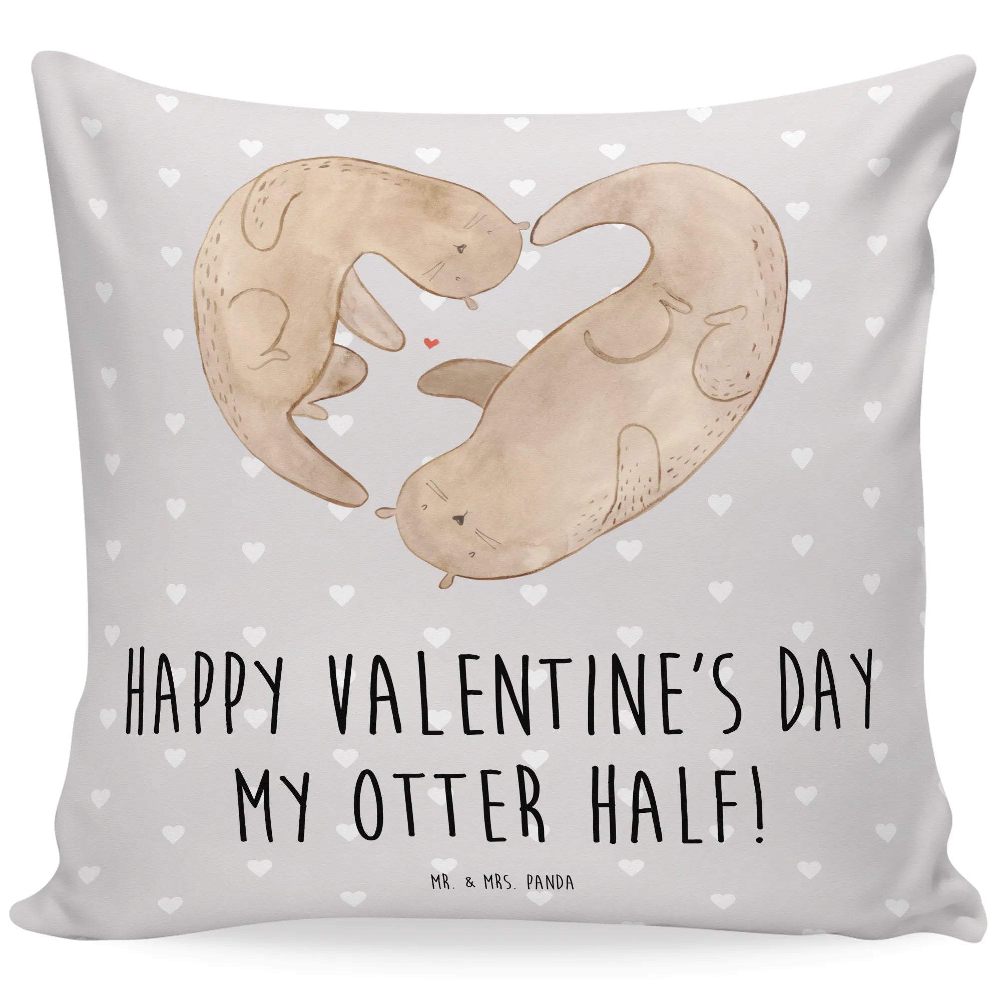 Entdecke das zauberhafte 40x40 Kissen "Otter Valentine" von Mr. & Mrs. Panda - das perfekte Geschenk für Verliebte! Diese Kissenhülle versprüht mit ihrem liebevollen Design, das zwei süße Otter zeigt, die sich an den Pfoten halten und ein Herz bilden, pure Zärtlichkeit und Verbundenheit. Der Slogan "Happy valentine's day my otter half!" bringt die Botschaft der Liebe direkt zu deinem Herzen.