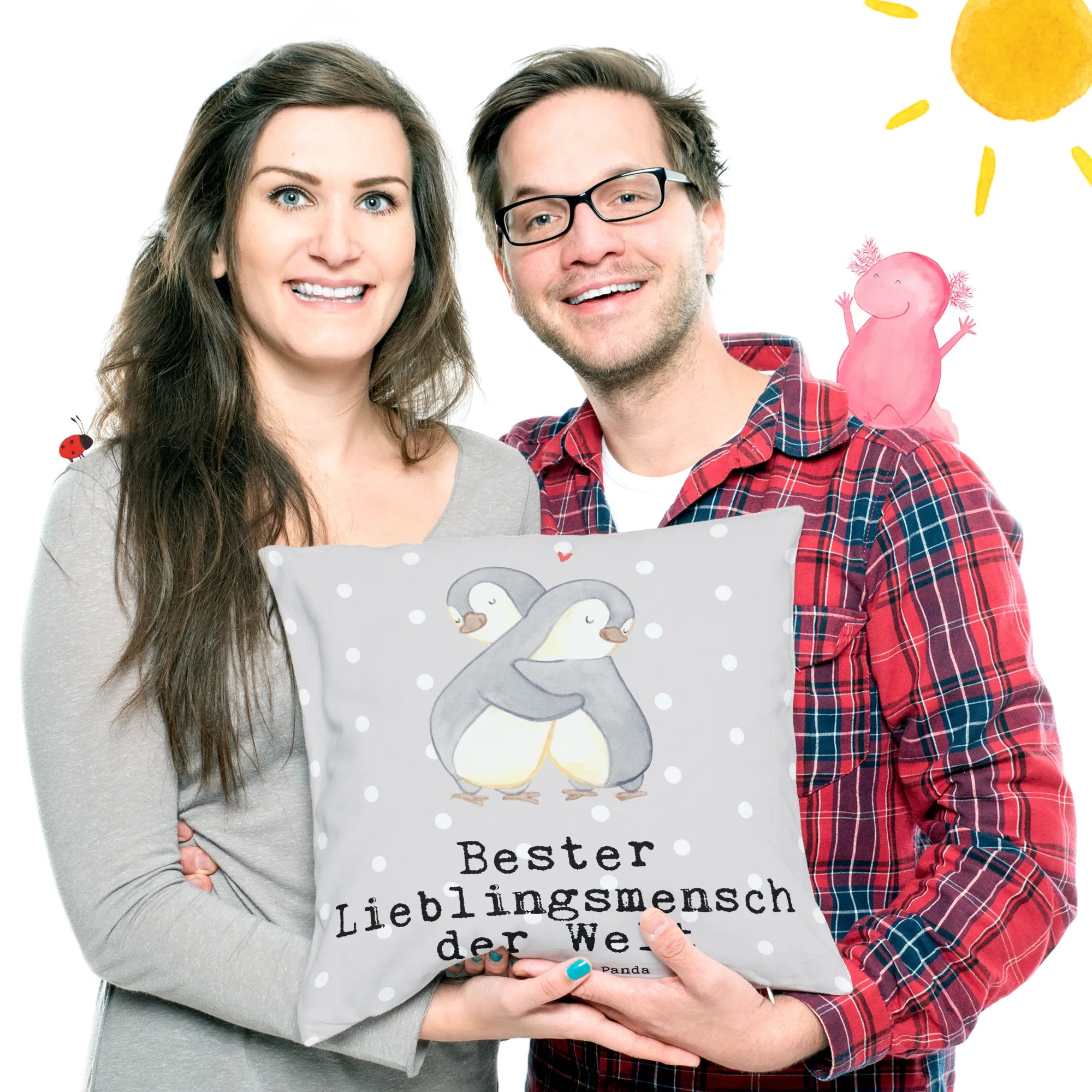 Das 40x40 Kissen "Bester Lieblingsmensch der Welt" von Mr. & Mrs. Panda ist das perfekte Geschenk für die besonderen Menschen in deinem Leben! Umgeben von zwei niedlichen Pinguinen, die sich herzlich umarmen, bringt dieses Kissen eine Extraportion Liebe und Wärme in dein Zuhause. Ob als Sofakissen, Dekokissen oder einfach als kuscheliges Kopfkissen – es passt überall hin und macht jeden Raum zu einem Ort voller Geborgenheit.