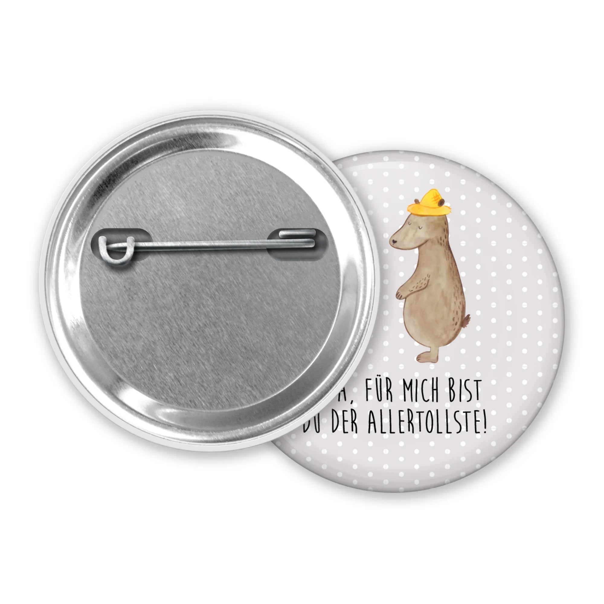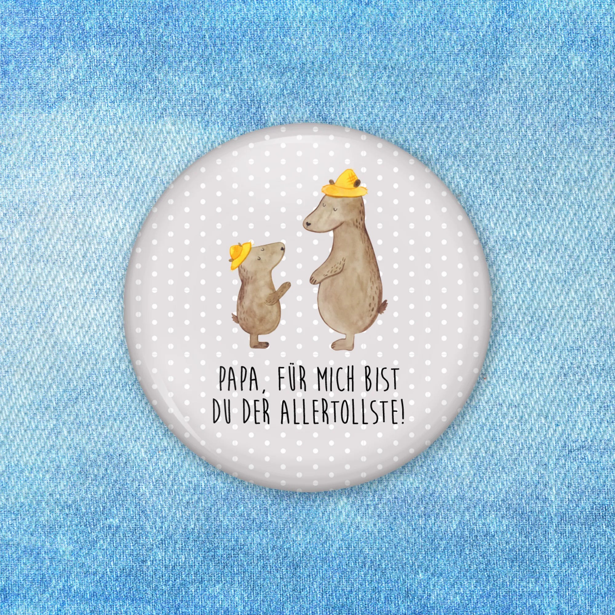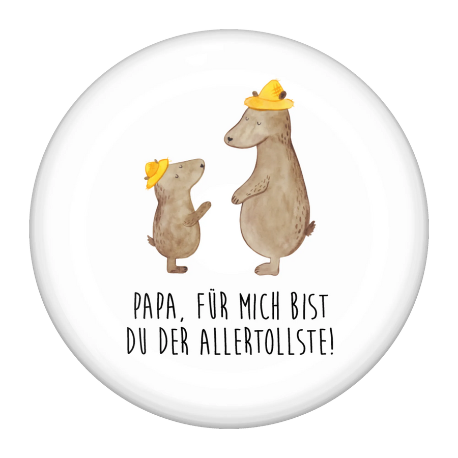 Die beiden Bären, die freundliche Gesichter zeigen, vermitteln eine warme, familiäre Atmosphäre. Ob du ihn selbst trägst oder verschenken möchtest, dieser Button ist eine wunderbare Möglichkeit, deinem Lieblingsmensch zu sagen: 'Papa, für mich bist du der Allertollste!'.
