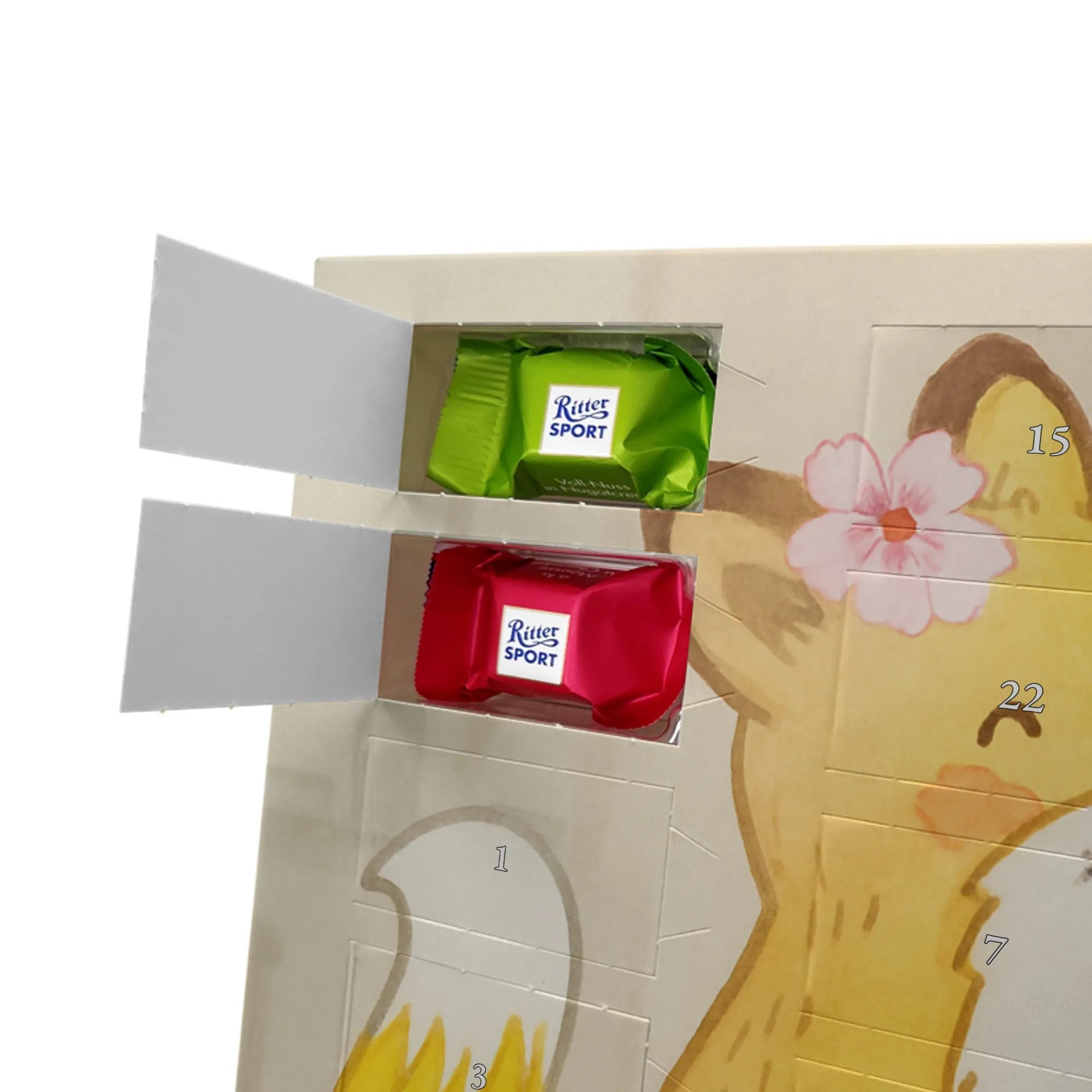 🐼 Schoko-Adventskalender: Liebevolles Design, seidenmatt, brillanter Druck – ein Hingucker.