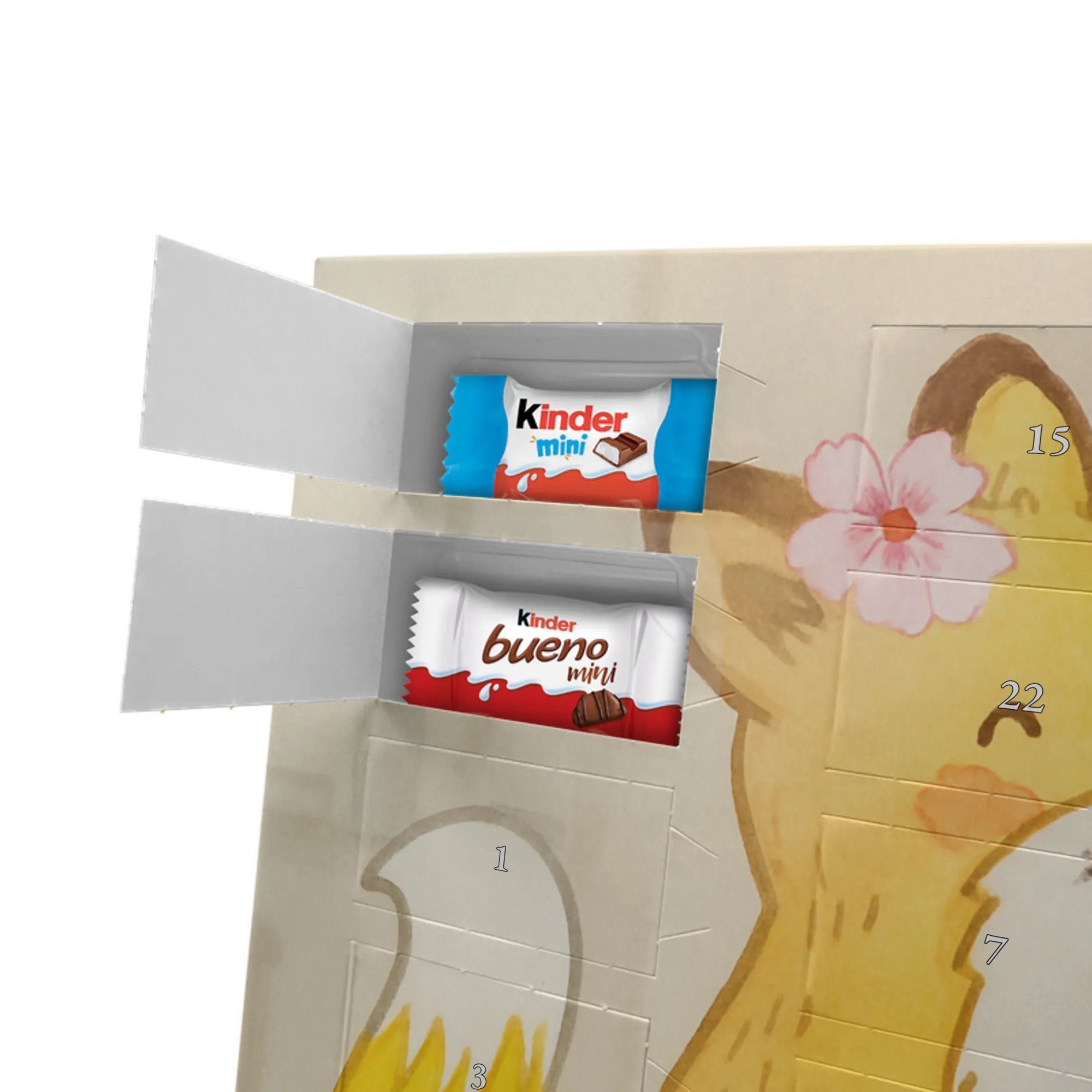 Schoko Adventskalender von Mr. & Mrs. Panda – die charmante Art, sich oder anderen die Adventszeit zu versüßen. Der Kalender ist bedruckt mit wunderschönen Motiven & Sprüchen von Mr. & Mrs. Panda und nicht personalisierbar. Wir legen Wert auf brillante Druckqualität mit seidenmatter Oberflächenveredelung sowie auf bedruckte Seitenflächen für ein stimmiges Gesamtbild. Maße: 355 mm x 245 mm x 11 mm. Besonders praktisch: kann aufgehängt oder aufgestellt werden und passt so in jede Wohnung. Gefüllt mit Markenname Schokolade: Adventskalender gefüllt mit kinder® Schokolade. Inhalt: kinder® Schoko-Bons, kinder® Bueno mini und kinder® Schokolade mini. Die 24 Türchen sind mit kleinen Schoko-Überraschungen bestückt und schaffen jeden Tag Vorfreude. Ob als Geschenk für Kinder, Partner oder als nette Aufmerksamkeit für Kolleginnen und Kollegen – dieser Kalender macht Freude. Robust, schön gestaltet und sofort einsatzbereit für die süßeste Zeit des Jahres!