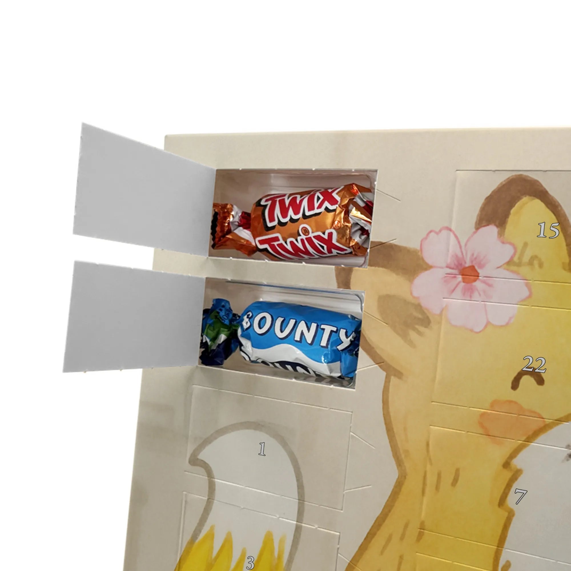 Unser Adventskalender mit Schokolade von Mr. & Mrs. Panda ist ein liebevoll gestaltetes Highlight für die Adventszeit. Die süßen Illustrationen und charmanten Sprüche sorgen für gute Stimmung bei Groß und Klein. Gedruckt in brillanter Qualität mit seidenmatter Oberflächenveredelung, wirken die Farben kräftig und edel; auch die Seitenflächen sind dekorativ bedruckt. Bitte beachten: Der Kalender ist nicht personalisierbar. Gefüllt ist er mit 24 Celebrations-Überraschungen in acht verschiedenen Sorten: Maltesers, Mars, Snickers, Twix, Milky Way, Bounty, Galaxy und Galaxy Caramel — perfekte Abwechslung für jeden Tag. Besonderheit: Du kannst den Kalender sowohl aufstellen als auch aufhängen. Maße: 325 mm x 225 mm x 27 mm. Schenke Vorfreude und kleine Genussmomente – ideal als Geschenk oder für deine eigene Adventszeit.