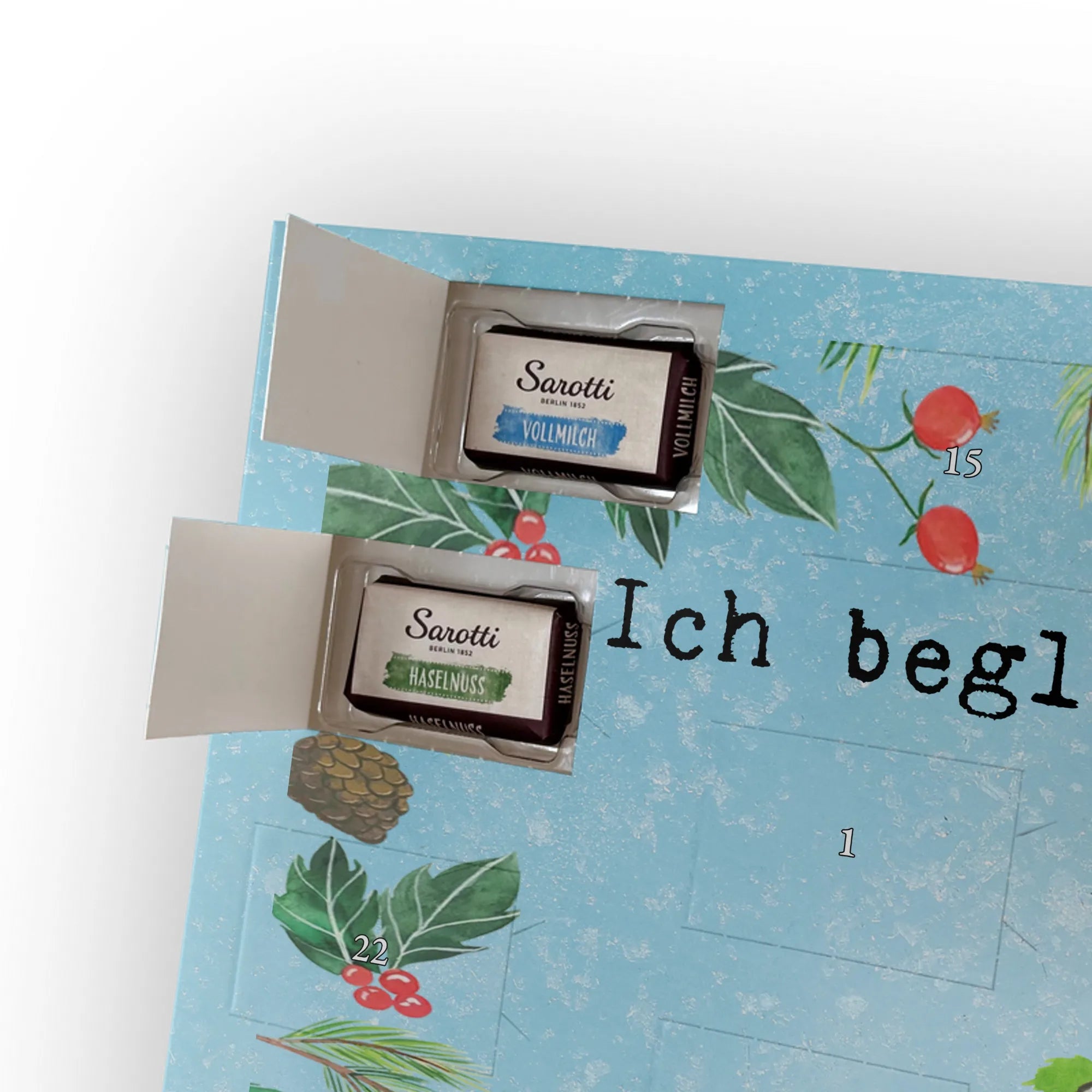 🐼 Schokoladen Adventskalender mit liebevollen Sprüchen und seidenmatter Lackierung.