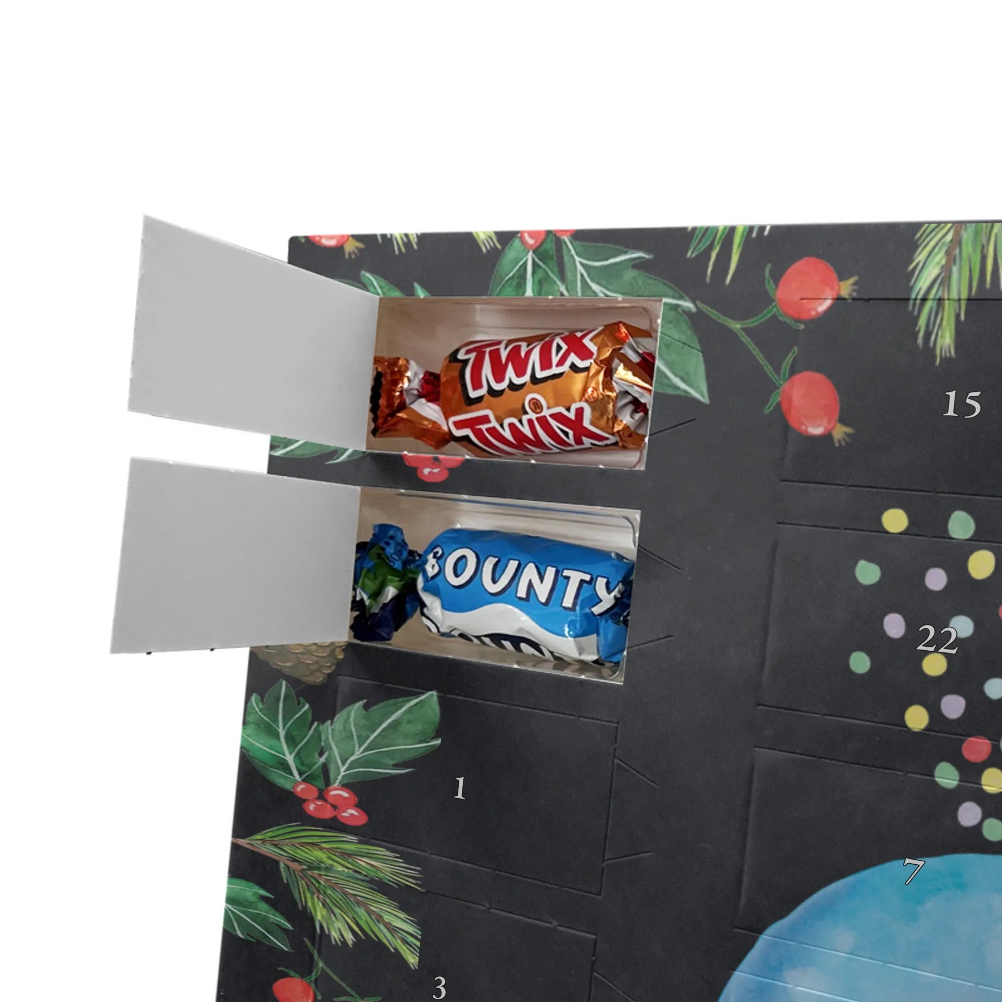Unser Schoko Adventskalender von Mr. & Mrs. Panda bringt dir und deinen Lieben jede Menge Vorfreude und zauberhafte Momente in die Adventszeit. Der Kalender ist liebevoll bedruckt mit wunderschönen Motiven und frechen Sprüchen im typischen Mr. & Mrs. Panda Stil – ein echter Blickfang auf dem Tisch oder an der Wand. Die brillante Druckqualität kombiniert mit einer seidenmatten Oberflächenveredelung sorgt für edle Farben und ein angenehmes Gefühl beim Anfassen. Auch die Seitenflächen sind bedruckt, sodass der Kalender von allen Seiten hübsch aussieht. Er ist nicht personalisierbar, dafür aber in seiner Gestaltung rundum stimmig. Gefüllt ist der Adventskalender mit 24 hochwertigen Celebrations-Füllungen in acht verschiedenen Sorten: Maltesers, Mars, Snickers, Twix, Milky Way, Bounty, Galaxy und Galaxy Caramel — so ist für jede Naschkatze etwas dabei. Die Besonderheit: Du kannst den Kalender entweder aufstellen oder dank rückseitiger Aufhängung an die Wand hängen. Maße: 325 mm x 225 mm x 27 mm. Ein liebevolles Geschenk für Familie, Freunde oder einfach für dich selbst, das kleine tägliche Glücksmomente schenkt und die Adventszeit versüßt.