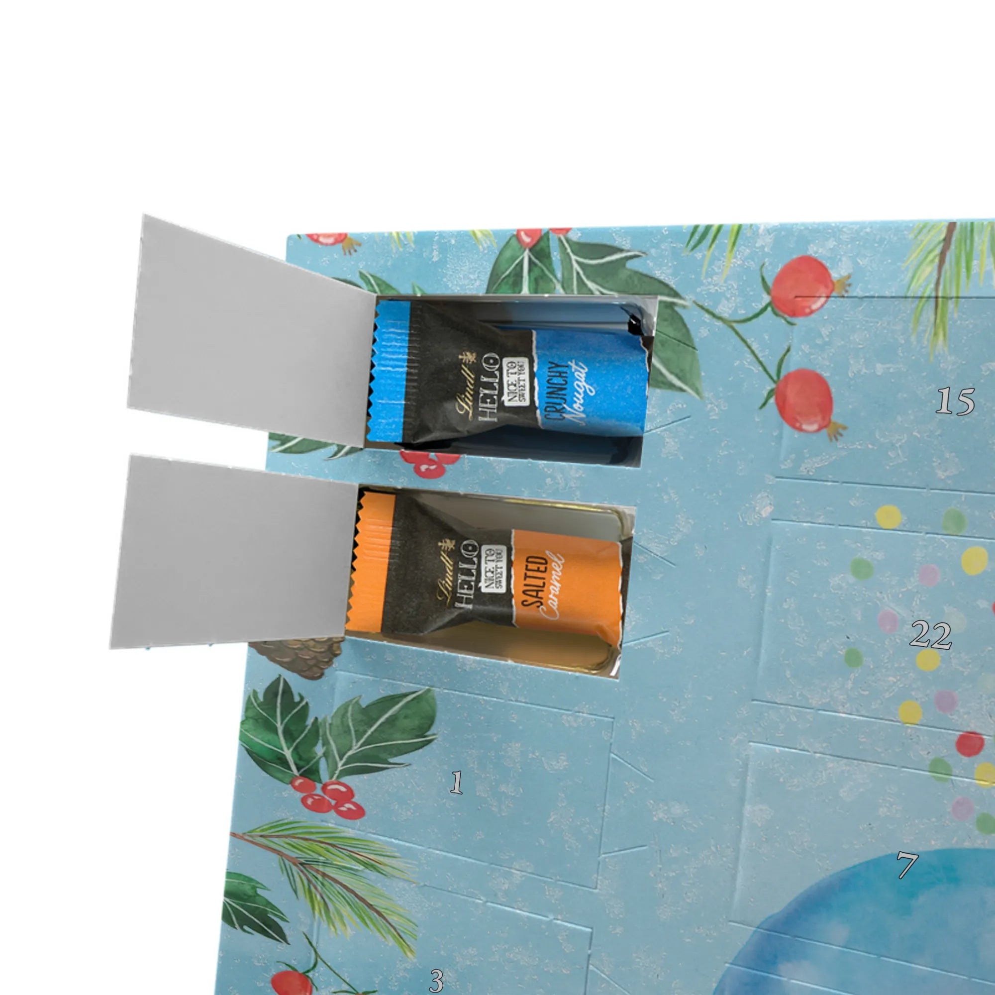 Wunderschöner Schokoladen-Adventskalender von Mr. & Mrs. Panda – süßes Design trifft hochwertige Verarbeitung. Unser Schokoladen-Adventskalender ist bedruckt mit wunderschönen Motiven & Sprüchen von Mr. & Mrs. Panda und nicht personalisierbar, dafür aber mit liebevollen Details gestaltet. Die brillante Druckqualität mit seidenmatter Oberflächenveredelung verleiht dem Kalender ein edles Finish, und auch die Seitenflächen sind bedruckt für einen rundum stimmigen Look. Maße: 233 mm x 178 mm x 24 mm. Die Konstruktion erlaubt sowohl das Aufstellen als auch das Aufhängen – Besonderheit: kann aufgehängt oder aufgestellt werden. Gefüllt mit MARKENNAMEN Schokolade und mit leckeren Schokoladenkugeln bestückt, ist jeder Dezembertag eine kleine Belohnung. Bitte lies die besonderen Hinweise: (Kann Spuren von Haselnüssen, Mandeln, Gluten und Soja enthalten!), kühl und trocken lagern. Ideal als Geschenk, Adventsdekoration oder süße Überraschung für Freunde und Familie. Mr. & Mrs. Panda wünscht dir eine gemütliche und genussvolle Adventszeit!