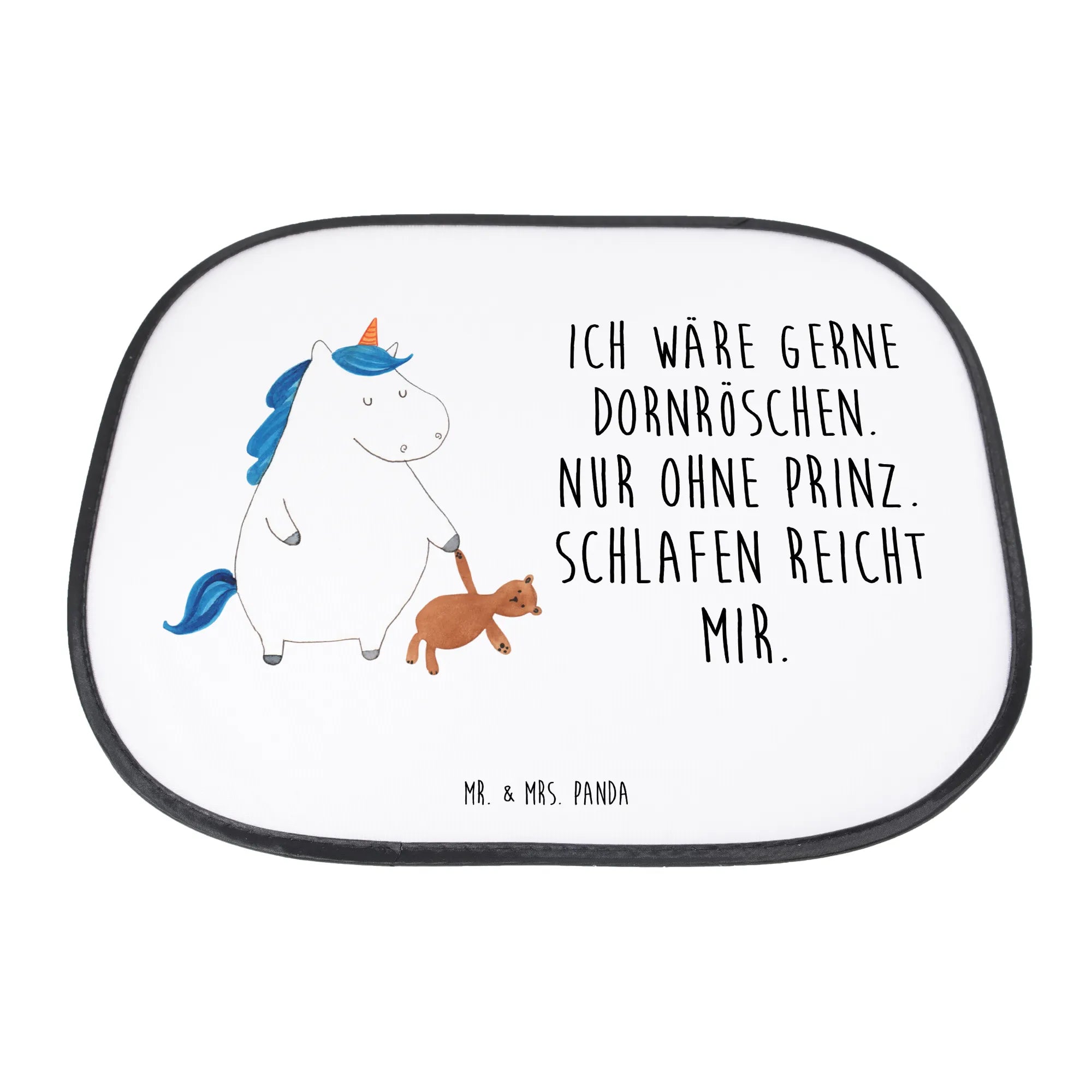Mit dem Spruch 'Ich wäre gerne Dornröschen. Nur ohne Prinz. Schlafen reicht mir.' bringt der Auto Sonnenschutz mit Einhorn Teddy zusätzlich eine kreative Note ins Spiel und macht jede Autofahrt zu einem träumerischen Erlebnis. Er steht für die unbeschwerte Kindheit und die magischen Momente, die wir alle in unseren Erinnerungen bewahren.