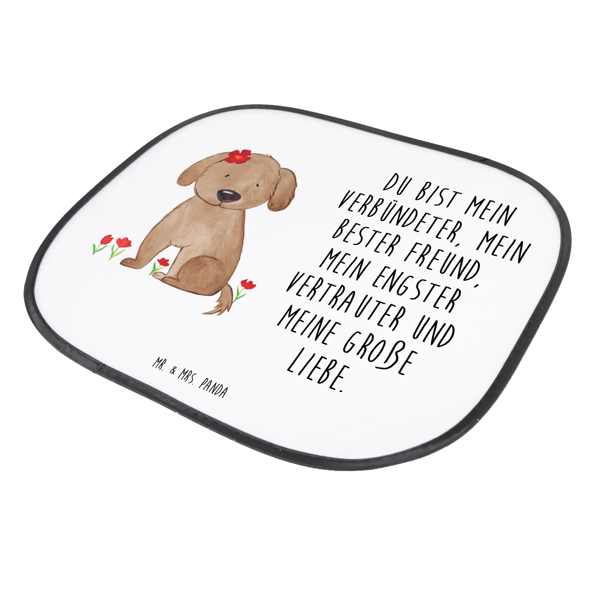 Entdecke den perfekten Auto Sonnenschutz von Mr. & Mrs. Panda mit dem wunderschönen Motiv "Hund Hundedame". Dieser Sonnenschutz bietet nicht nur einen praktischen Nutzen, sondern zaubert auch ein Lächeln auf dein Gesicht!