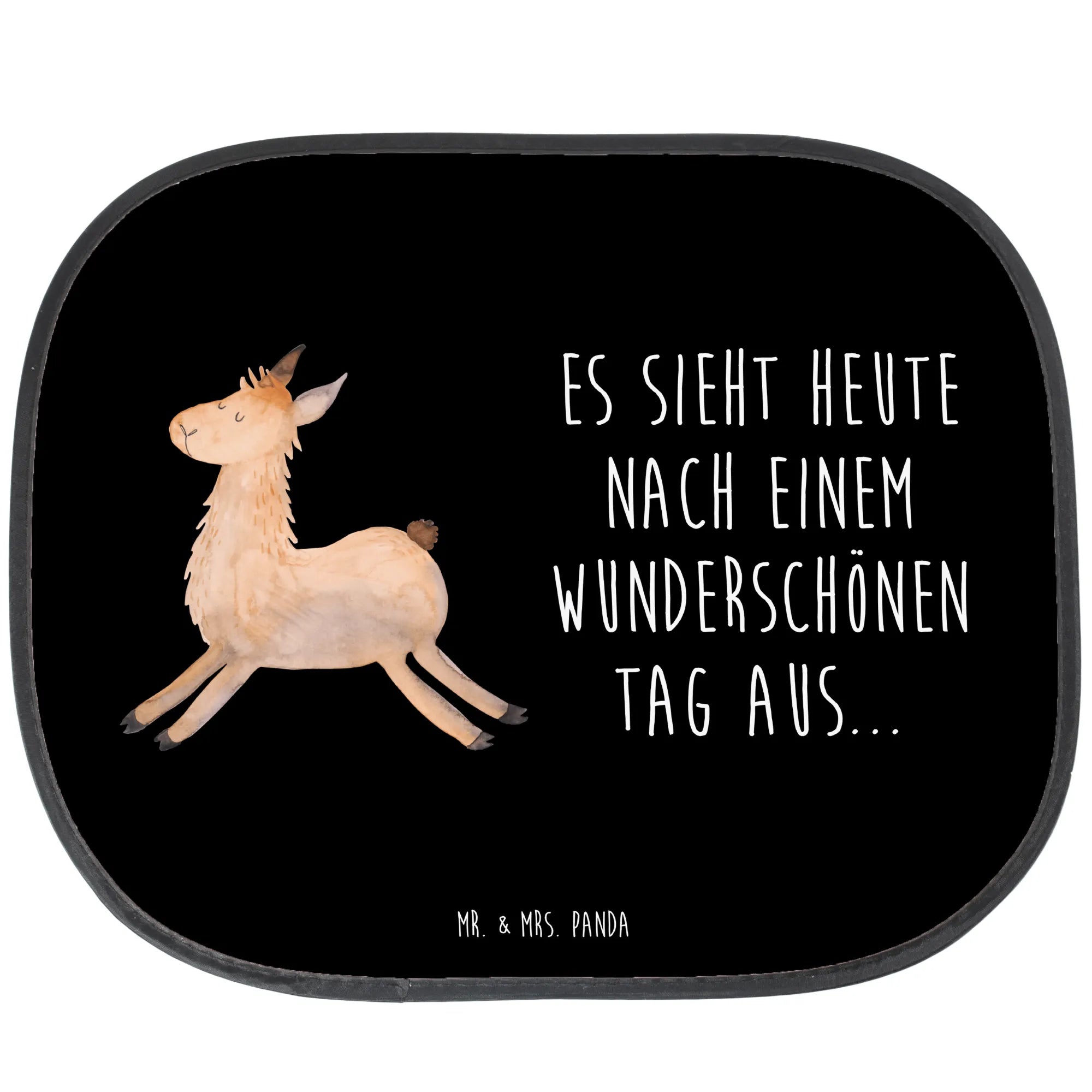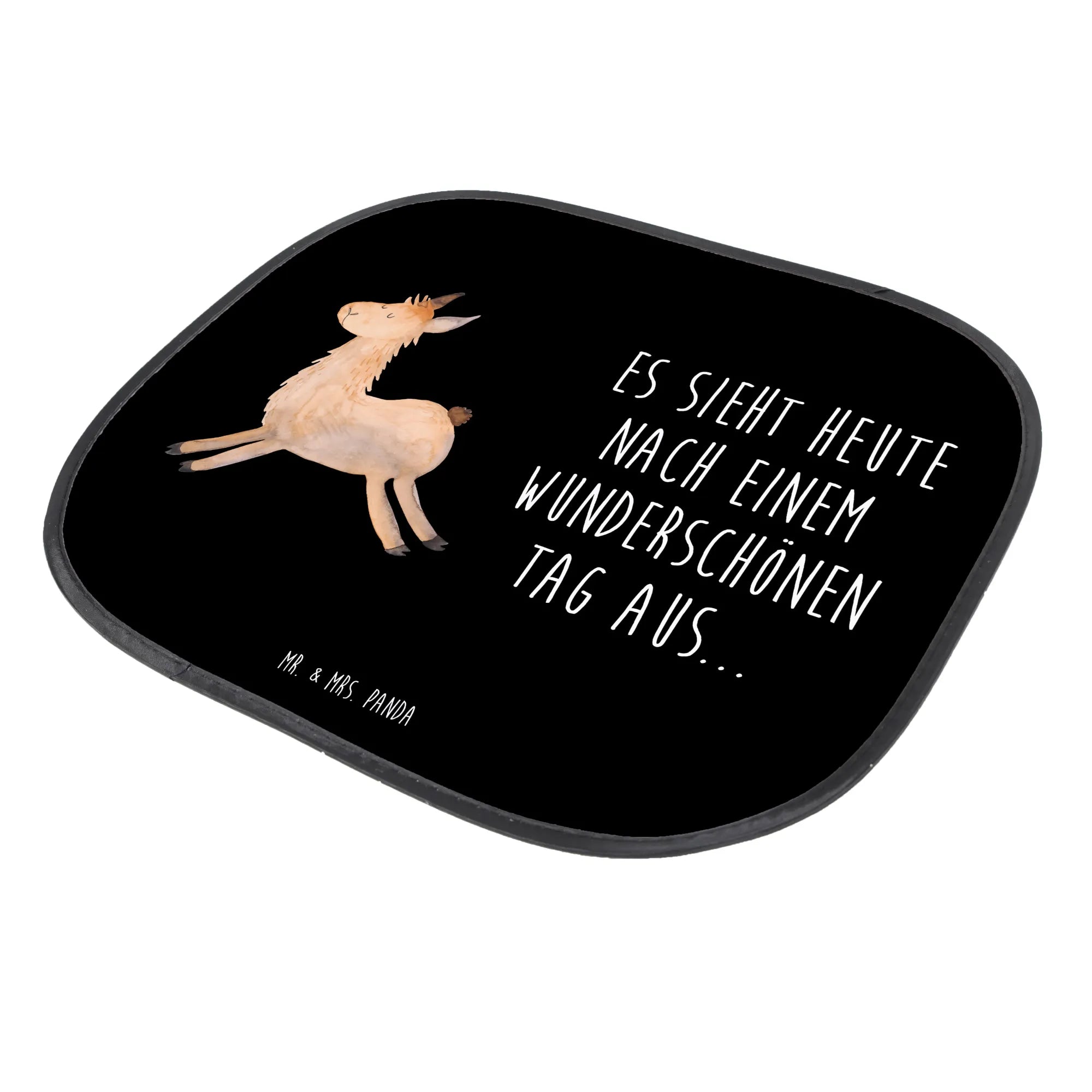 Ein wunderschöner Sonnenschutz fürs Auto von Mr. & Mrs. Panda: Das Motiv „Lama springend“ mit dem fröhlichen Spruch „Es sieht heute nach einem wunderschönen Tag aus...“ macht jeden Autofahrt-Moment zu einem kleinen Highlight. Das liebevoll gestaltete Lama aus unserer Lama - Kollektion bringt gute Laune und schützt gleichzeitig vor Sonne und Hitze.