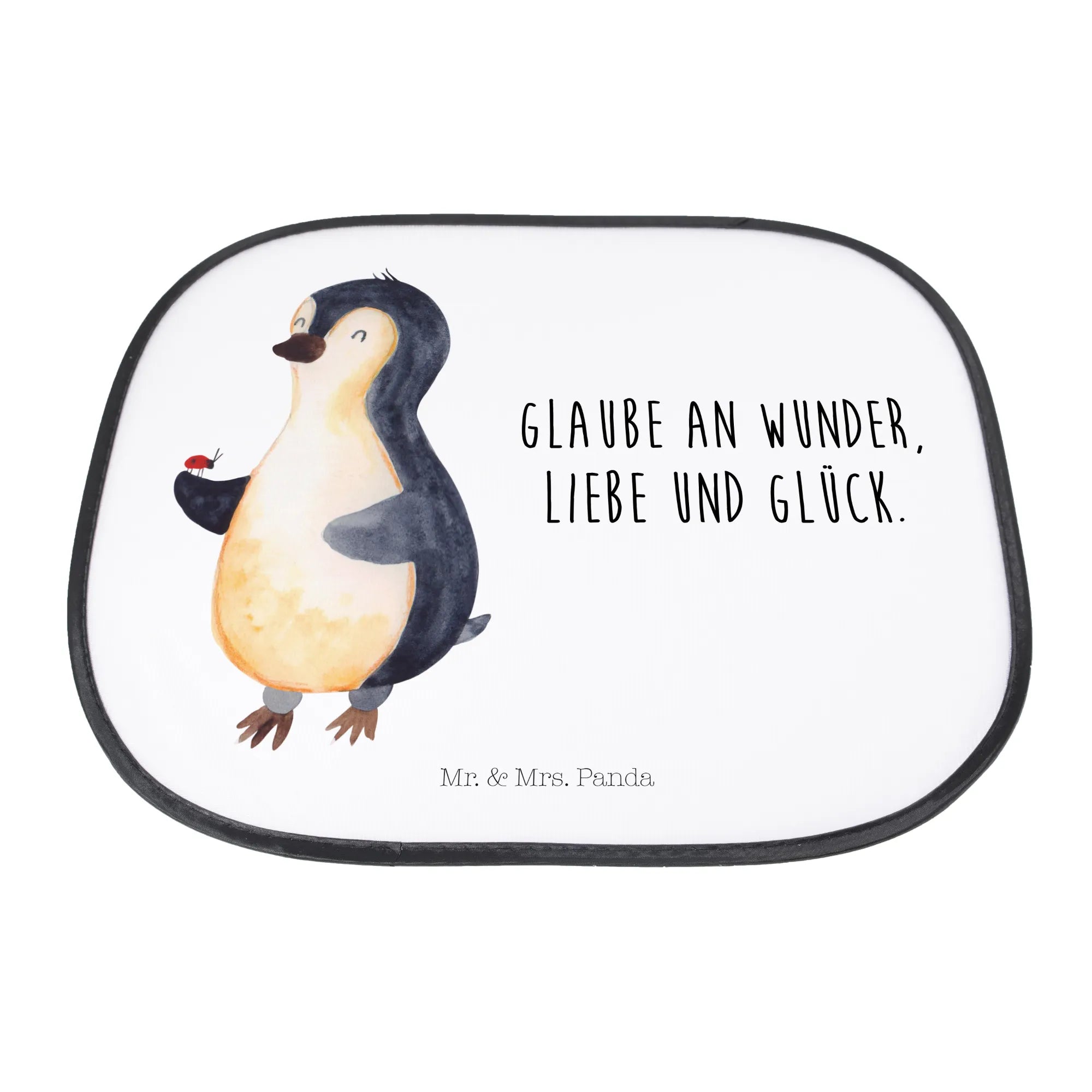 Suchst du nach dem perfekten Auto Sonnenschutz für dein kleines Glück? Die Auto Sonnenschutz Pinguin Marienkäfer von Mr. & Mrs. Panda sind genau das, was du benötigst! Diese liebevollen Sonnenschutzfolien sind nicht nur funktional, sondern auch ein wahres Schmuckstück in deinem Auto. Bedruckt mit einem fröhlichen Pinguin, der einen lachenden Marienkäfer auf seiner Flosse hält, zaubert dieses Design jedem ein Lächeln ins Gesicht. Mit dem fröhlichen Slogan 'Glaube an Wunder, Liebe und Glück.' bist du immer auf der positiven Seite des Lebens.