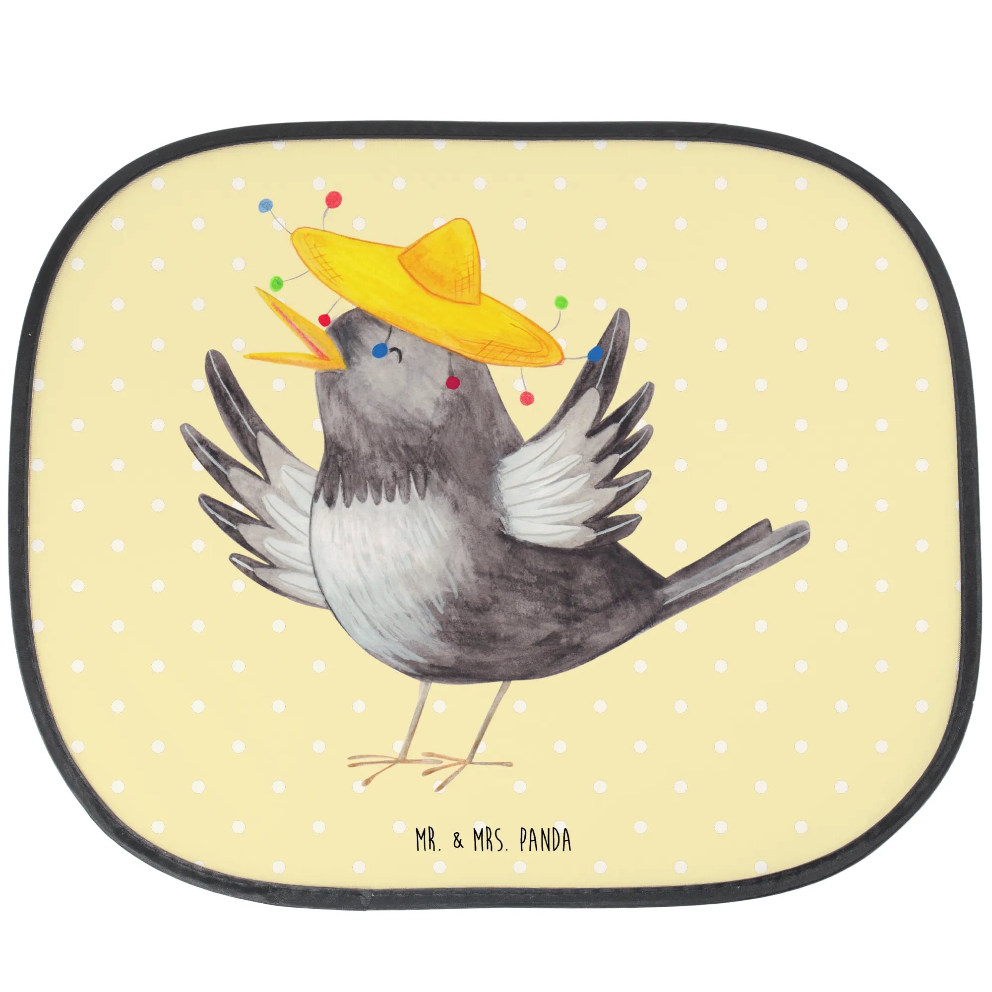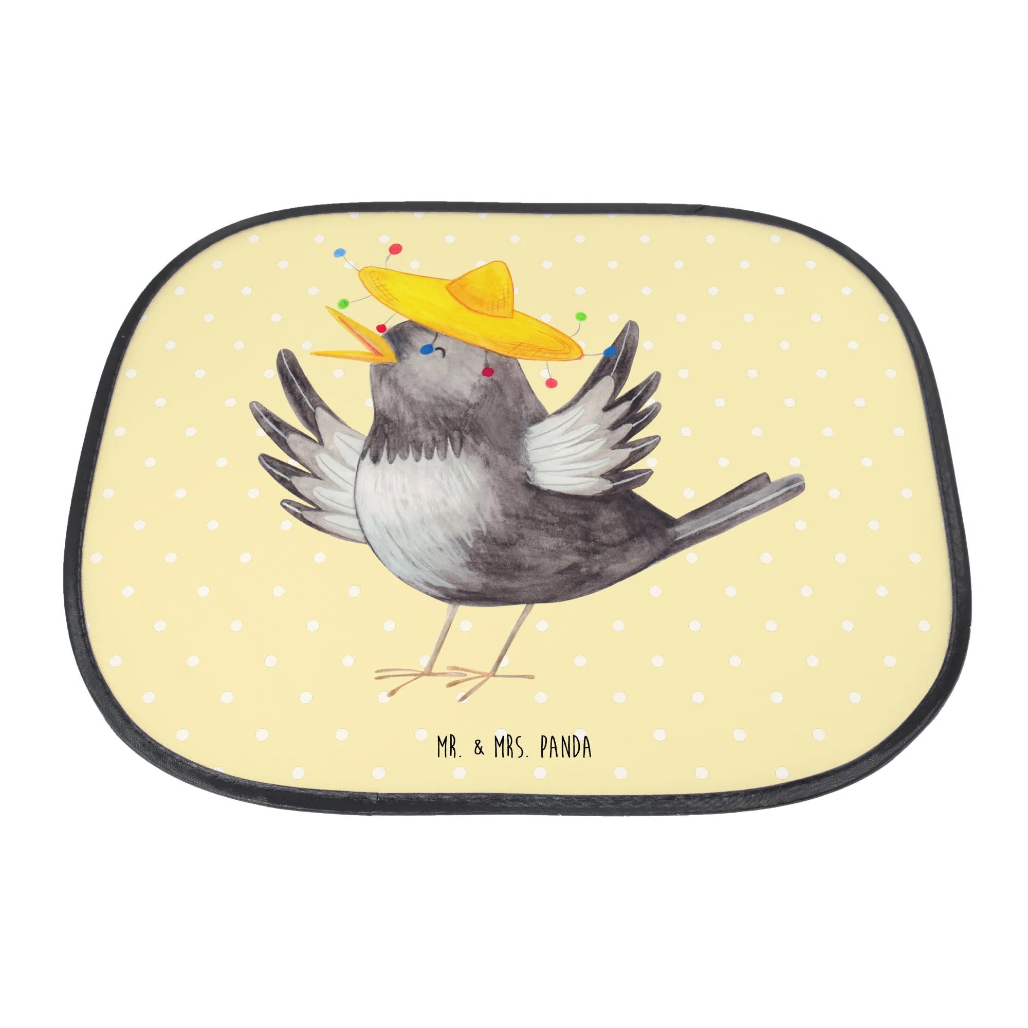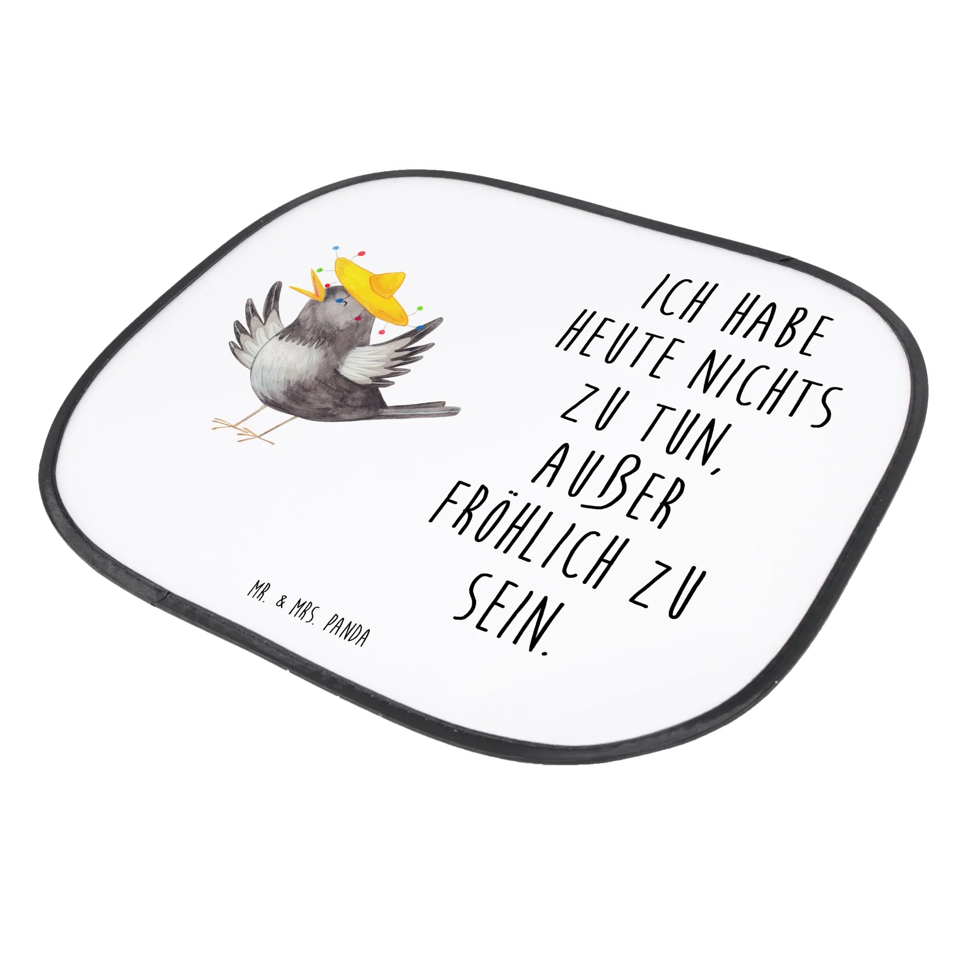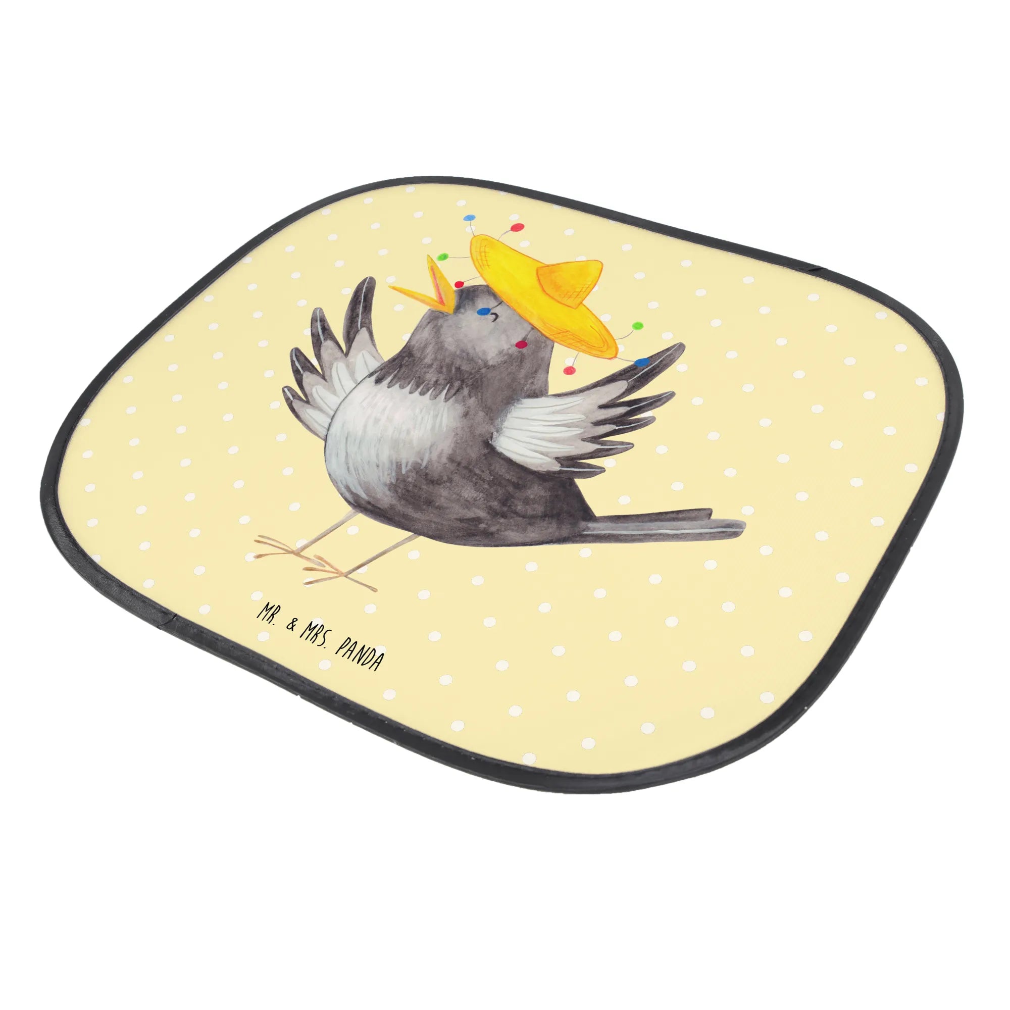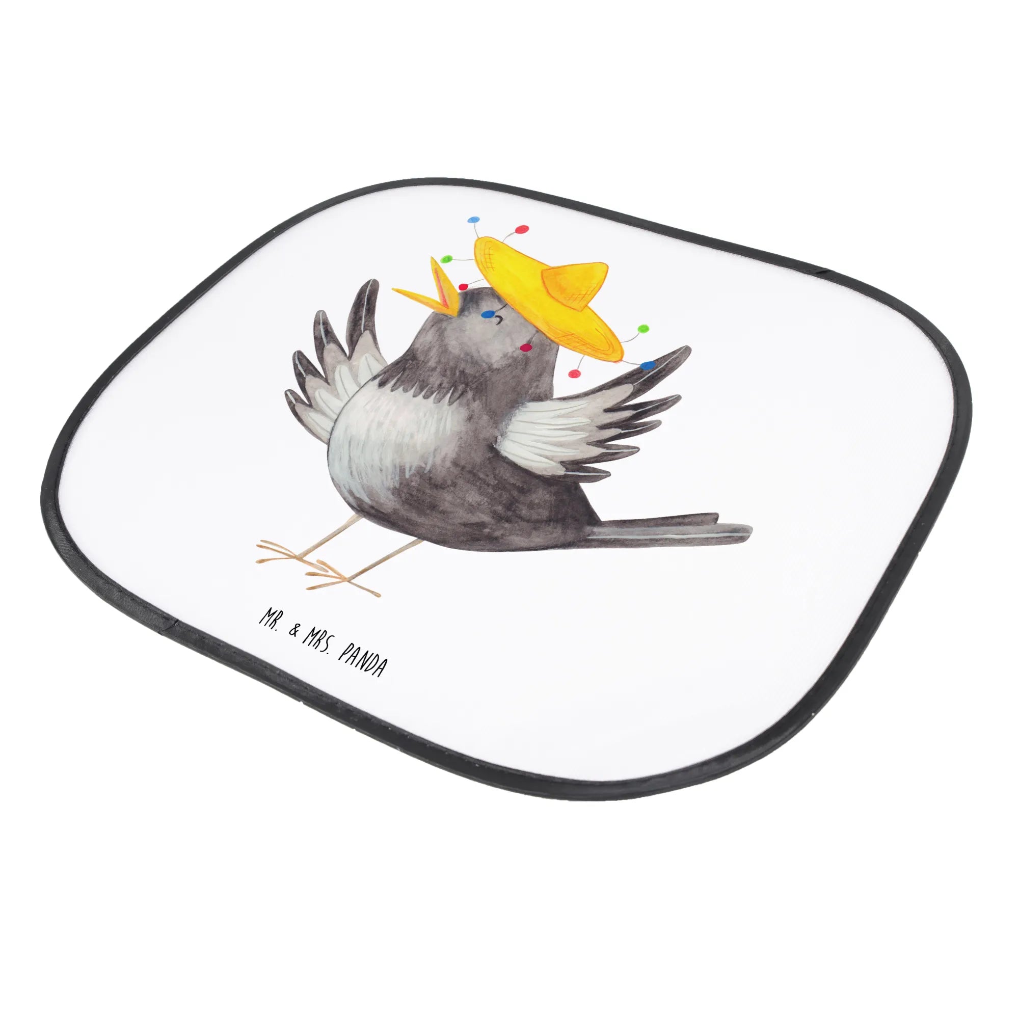Der Auto Sonnenschutz 'Rabe mit Sombrero' von Mr. & Mrs. Panda ist nicht nur ein praktisches Accessoire für dein Auto, sondern auch ein fröhlicher Begleiter, der gute Laune verbreitet! Mit seinen fröhlichen Farben und dem niedlichen Motiv eines kleinen Raben, der mit einem lustigen Sombrero tanzt, zieht dieser Sonnenschutz alle Blicke auf sich.