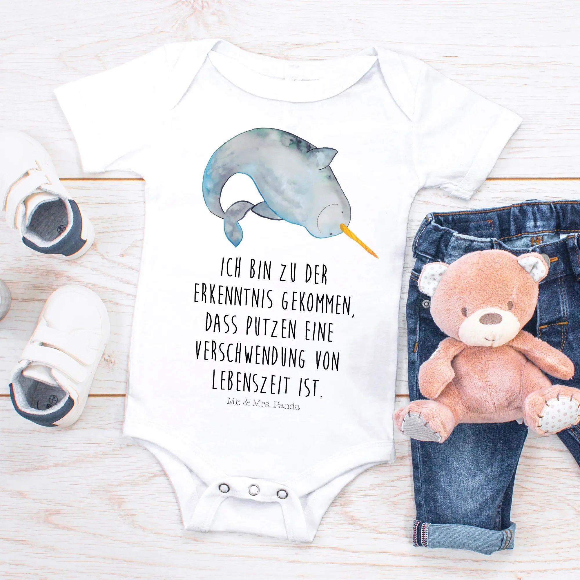 Der Organic Baby Body mit dem niedlichen Narwal-Motiv aus der Meerestiere Kollektion von Mr. & Mrs. Panda ist das perfekte Geschenk für frischgebackene Eltern und ihre kleinen Schatzis.