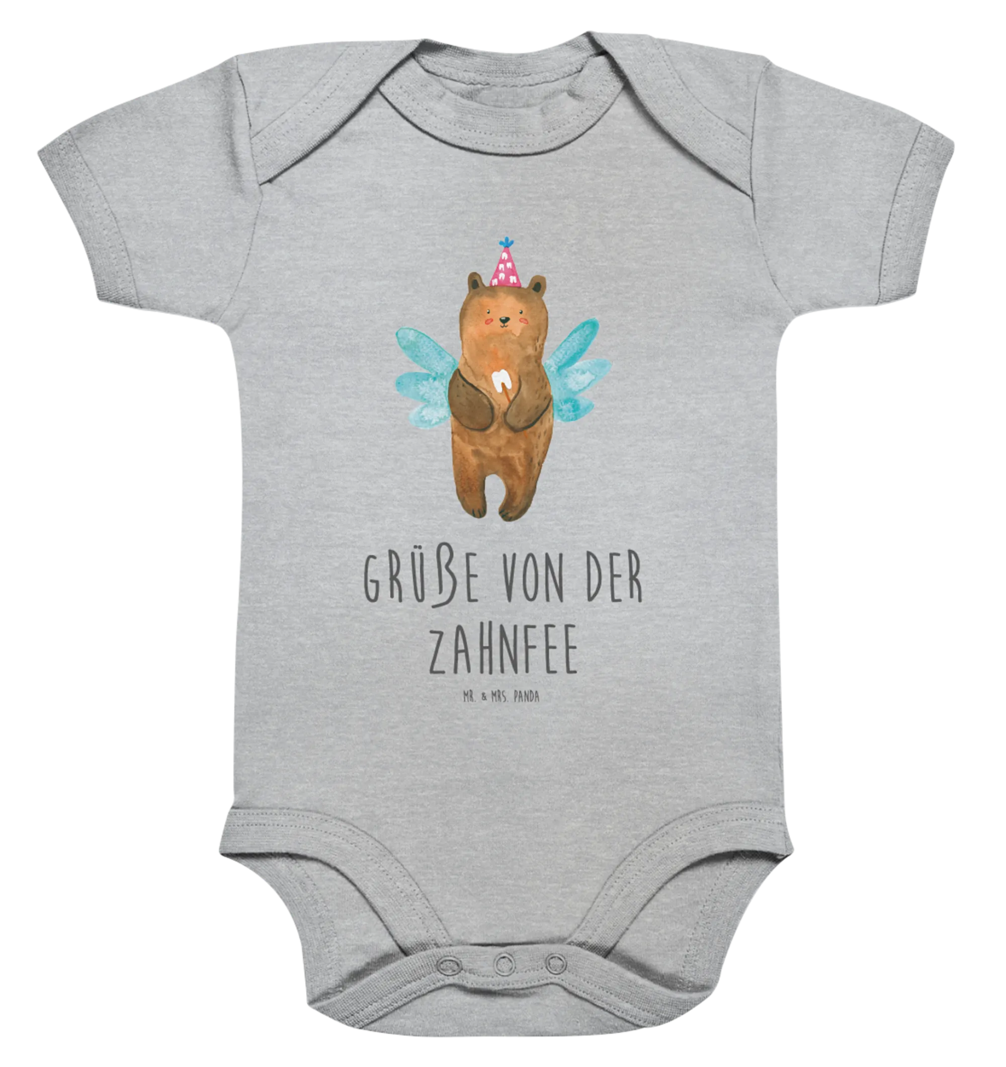 Der Organic Baby Body "Zahnfee Bär" von Mr. & Mrs. Panda ist das perfekte Geschenk für alle frischgebackenen Eltern und ihre kleinen Schätze. Mit seinem bezaubernden Design und dem niedlichen Slogan "Grüße von der Zahnfee" bringt dieser Strampler Freude in jeden Kinderalltag. Jeder kennt die Zahnfee, aber hast du schon die Zahnfee Bär getroffen? Diese kleine Bärin mit funkelnden Flügeln und zauberhaftem Lächeln wird deinem Baby mit ihrem charmanten Aussehen ein Lächeln ins Gesicht zaubern. Der Babybody in Heather Grey ist nicht nur optisch ein Hit, sondern auch besonders weich und bequem.
