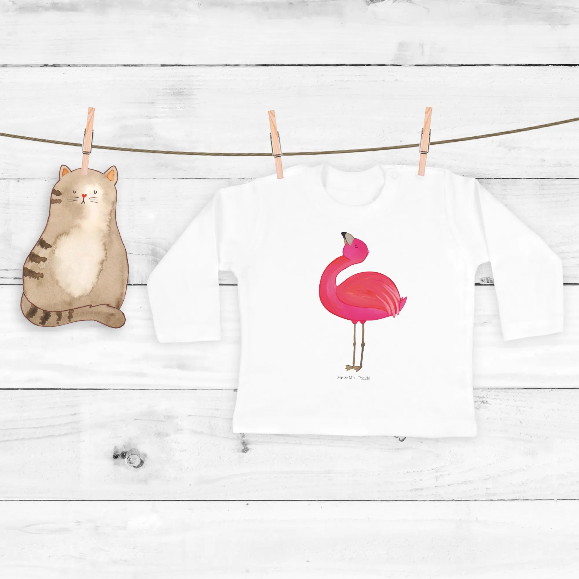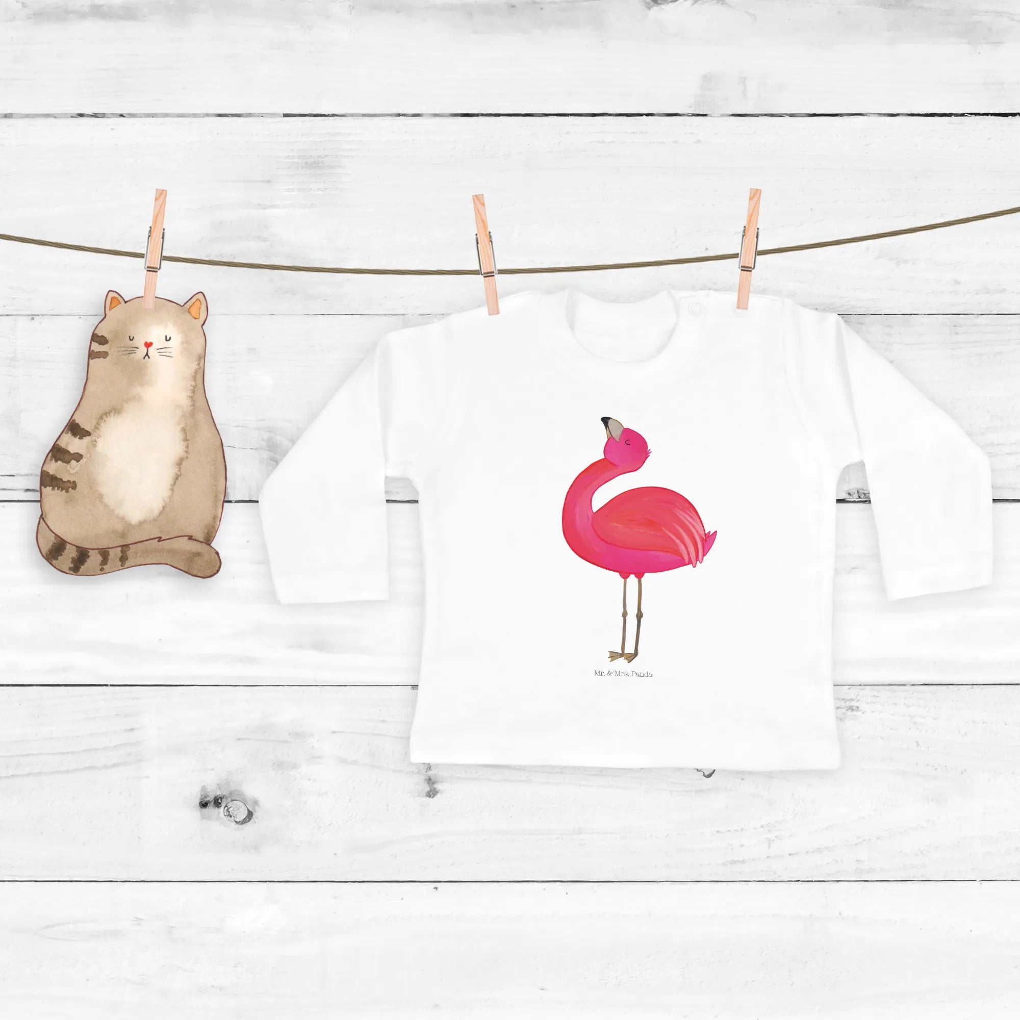 Entdecke das bezaubernde 12-18 Monate Baby Langarmshirt mit dem stolzen Flamingo aus der beliebten Flamingo-Kollektion von Mr. & Mrs. Panda!