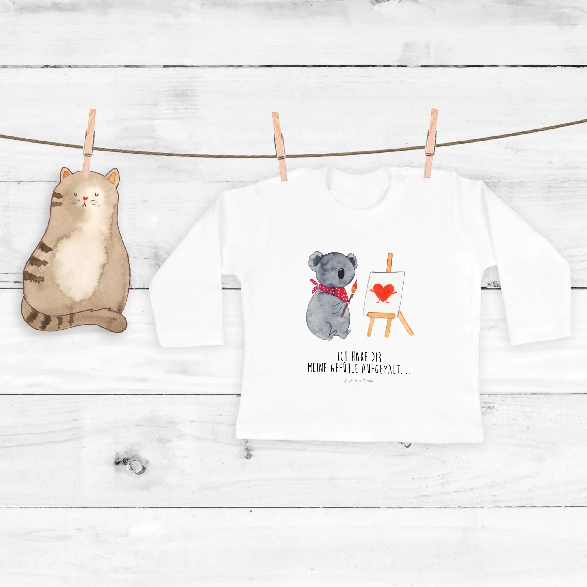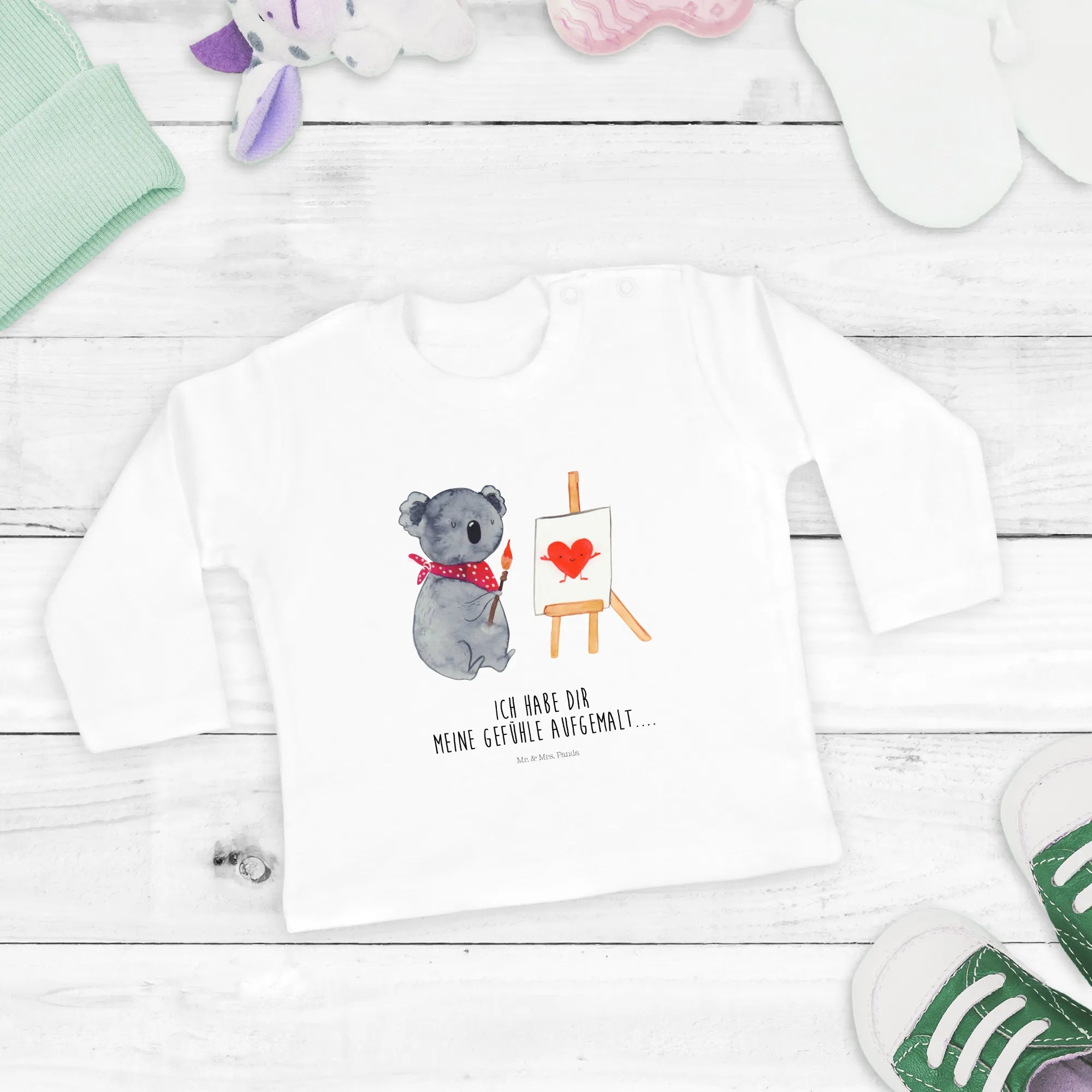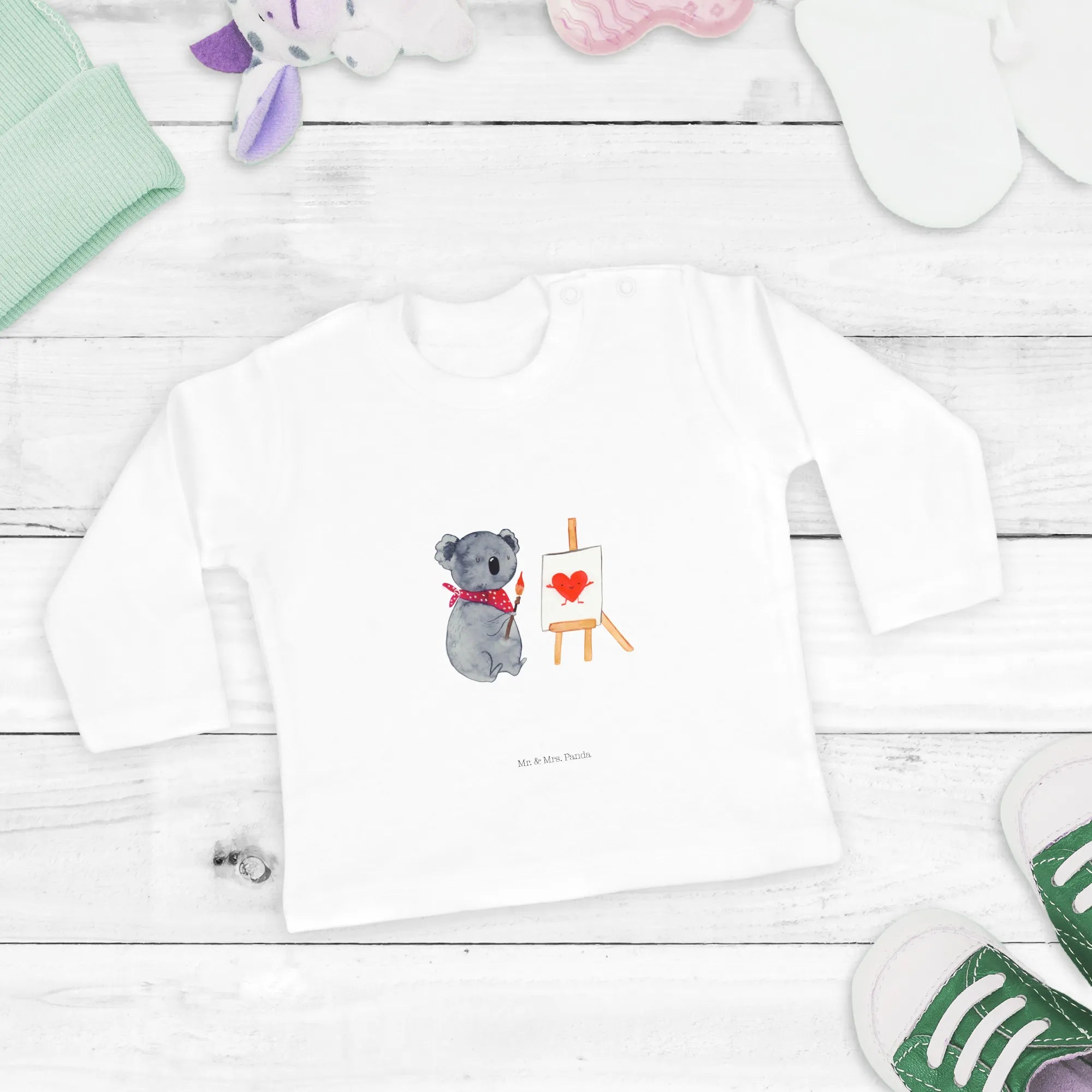 Das 18-24 Monate Baby Longsleeve mit dem liebevollen Koala Künstler Motiv von Mr. & Mrs. Panda ist das perfekte Geschenk für kleine Entdecker und kreative Seelen! Hergestellt aus 100% Bio-Baumwolle, bietet das Shirt nicht nur höchsten Tragekomfort, sondern auch eine besondere Botschaft: "Ich habe dir meine Gefühle aufgemalt....".