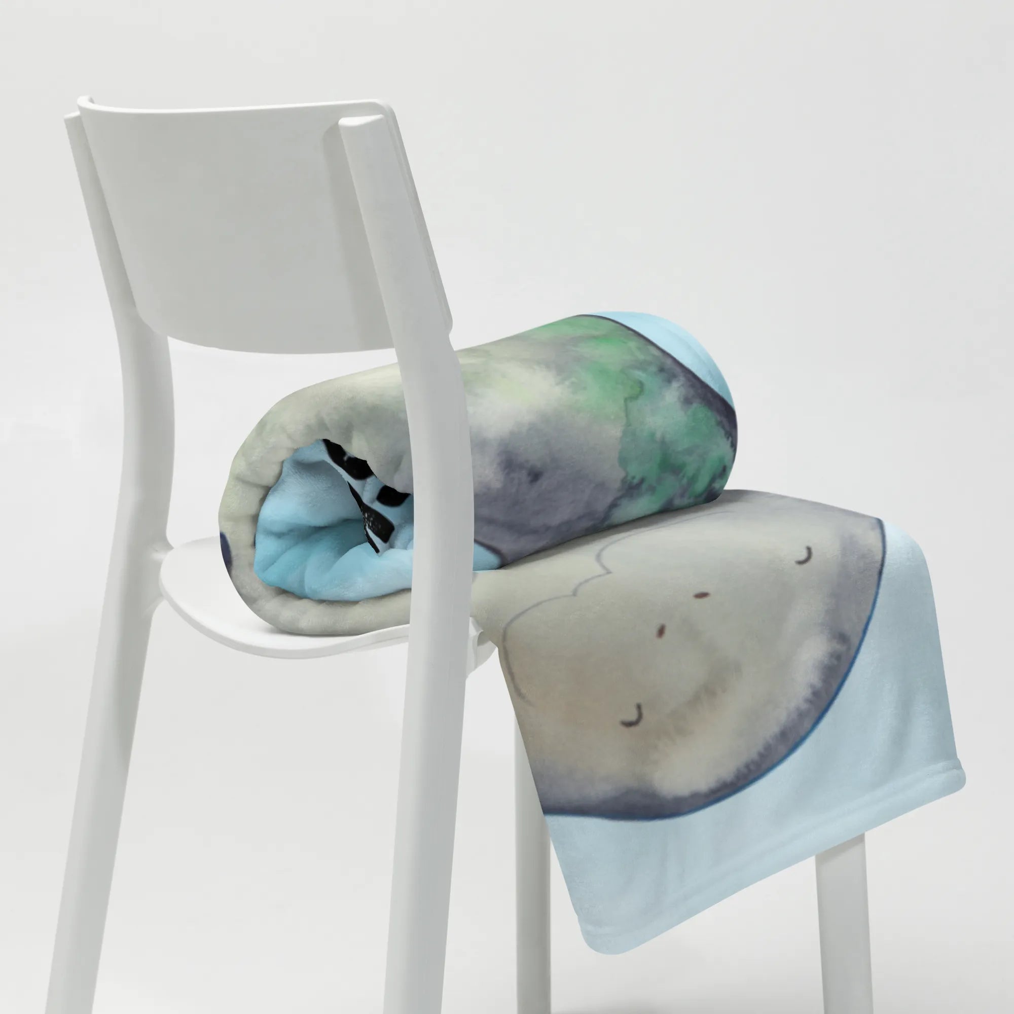 Die Babydecke ist in zarten Blau- und Grautönen gehalten und zeigt eine liebevoll illustrierte Seekuh, die ein breites Lächeln trägt, was direkt gute Laune verbreitet. Sie eignet sich hervorragend als Babygeschenk zur Geburt, für Baby Partys oder auch einfach als besondere Geste für gute Freunde.