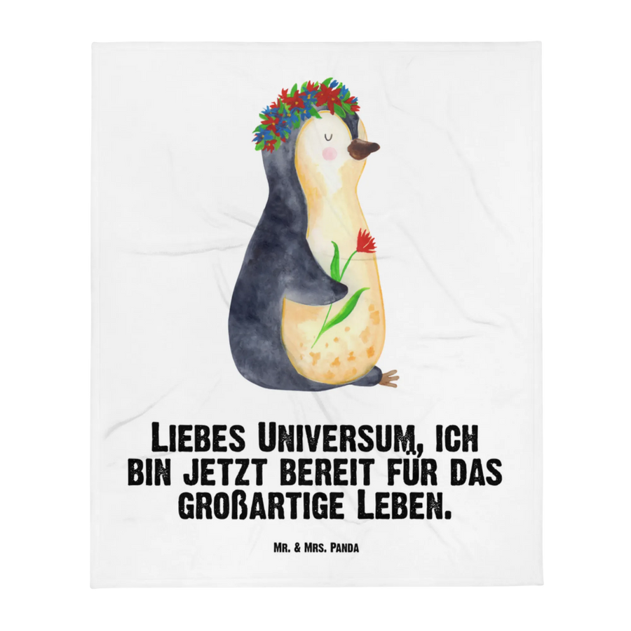 Babydecke Pinguin Blumenkranz - mit Spruch - Weiß
