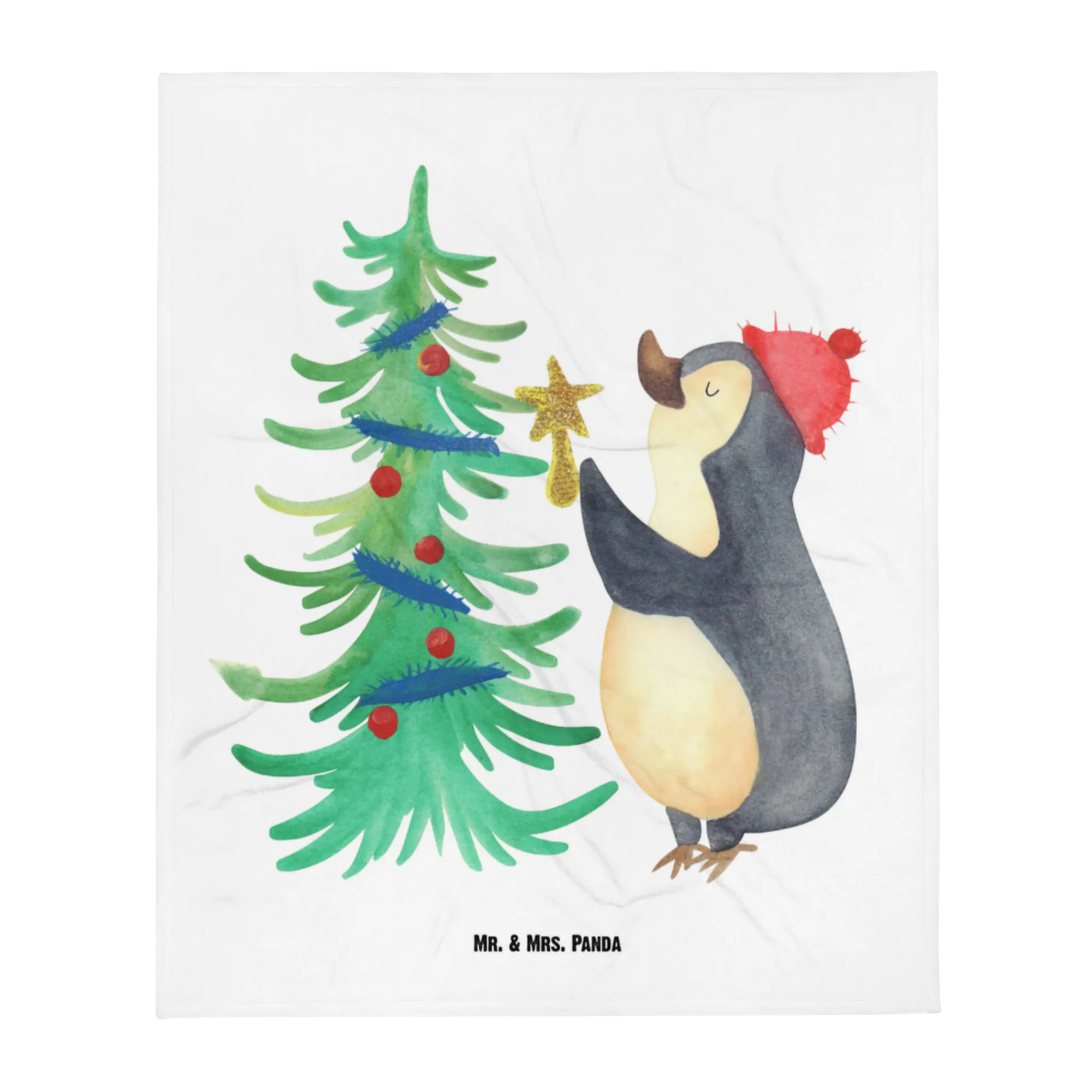 Babydecke Pinguin Weihnachtsbaum - mit Spruch - Eisblau