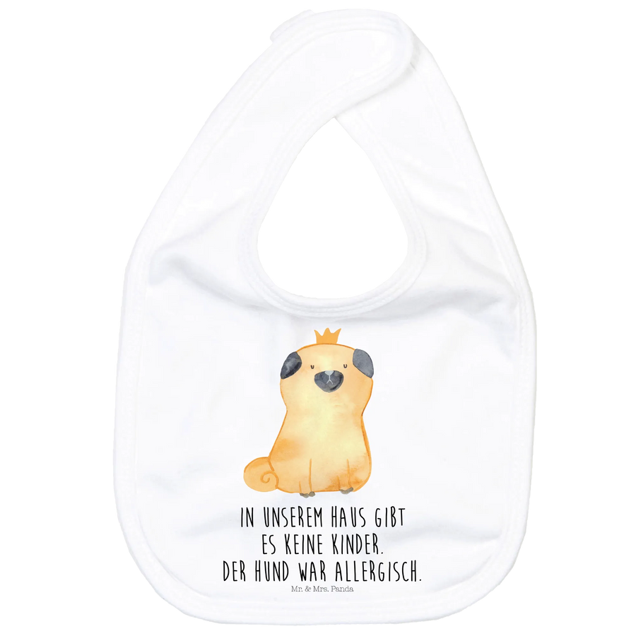 Mit dem charmanten Spruch „In unserem Haus gibt es keine Kinder. Der Hund war allergisch.“ sorgt es nicht nur für ein Lächeln, sondern macht auch jedem Besucher klar, wie viel der schlaue Mops für die Familie bedeutet. Als neues Babygeschenk zur Geburt oder als süßes Geschenk zur Babyparty eignet sich dieses Lätzchen perfekt.