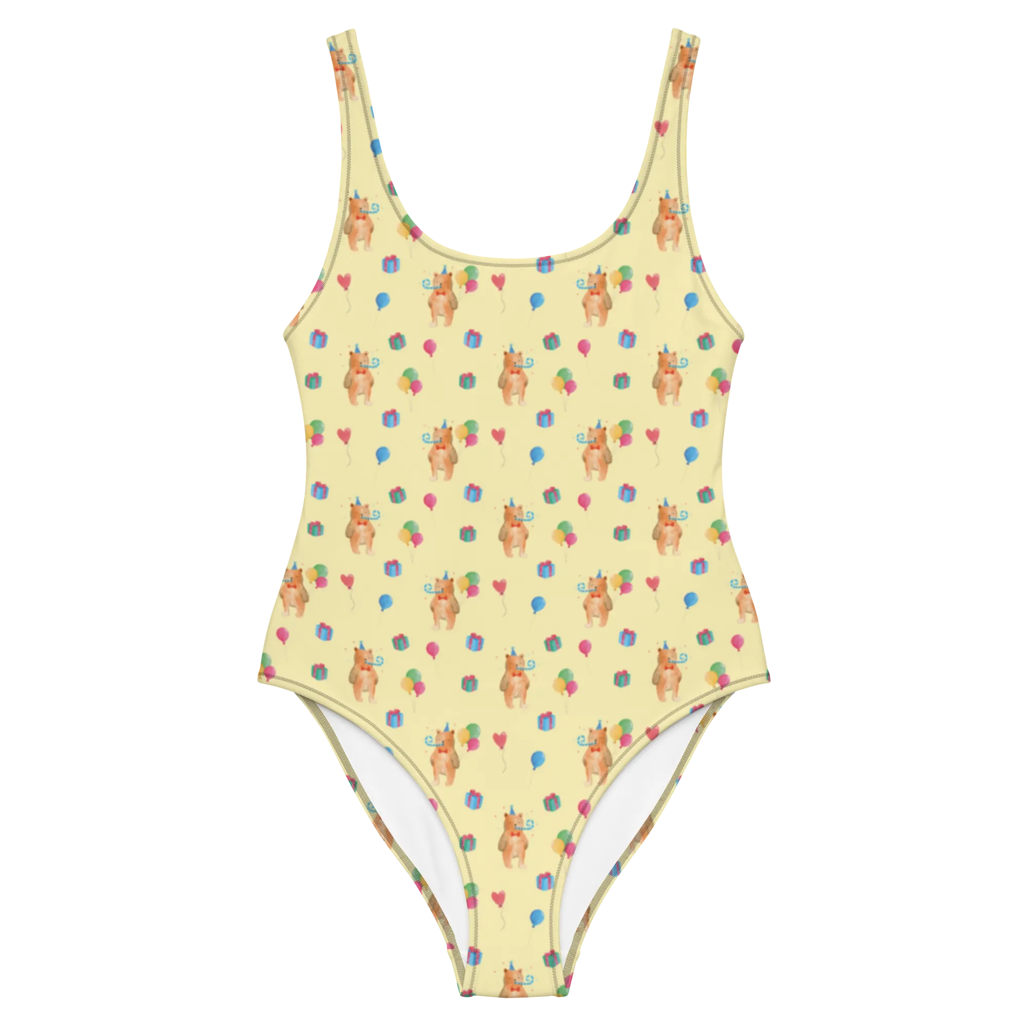 Wähle den "Birthday Bär" Badeanzug und bringe jede Menge Freude in deinen Sommer! Die fröhlichen Motive und der hohe Tragekomfort werden dich begeistern. Das ist nicht nur ein Badeanzug, das ist ein Stück Lebensfreude, das jeder tragen sollte!