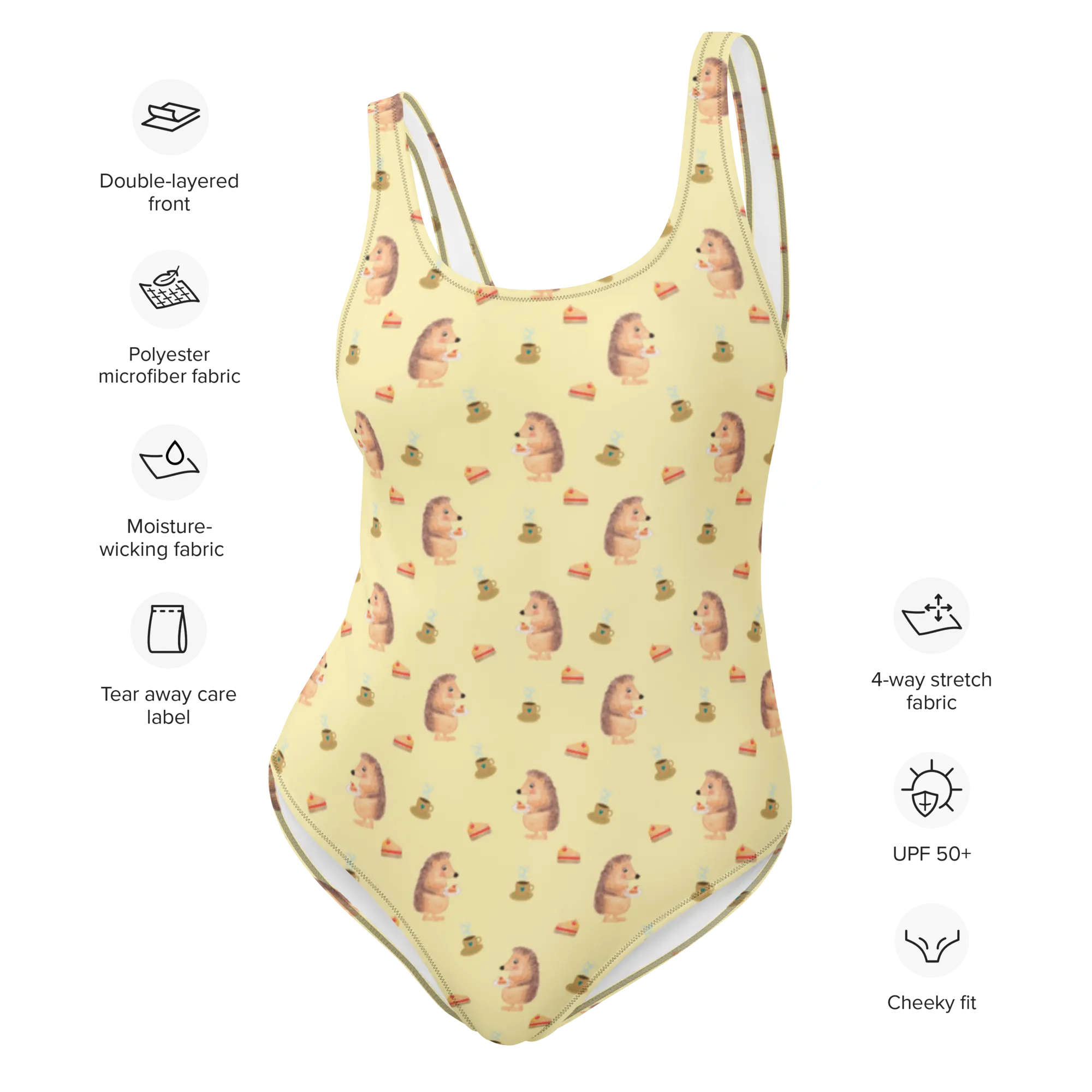 Wenn du ein großer Fan von Kuchen und süßen Igeln bist, dann wird unser Badeanzug mit dem niedlichen Motiv "Igel mit Kuchenstück" aus der Kollektion Small World dein Herz höher schlagen lassen!
