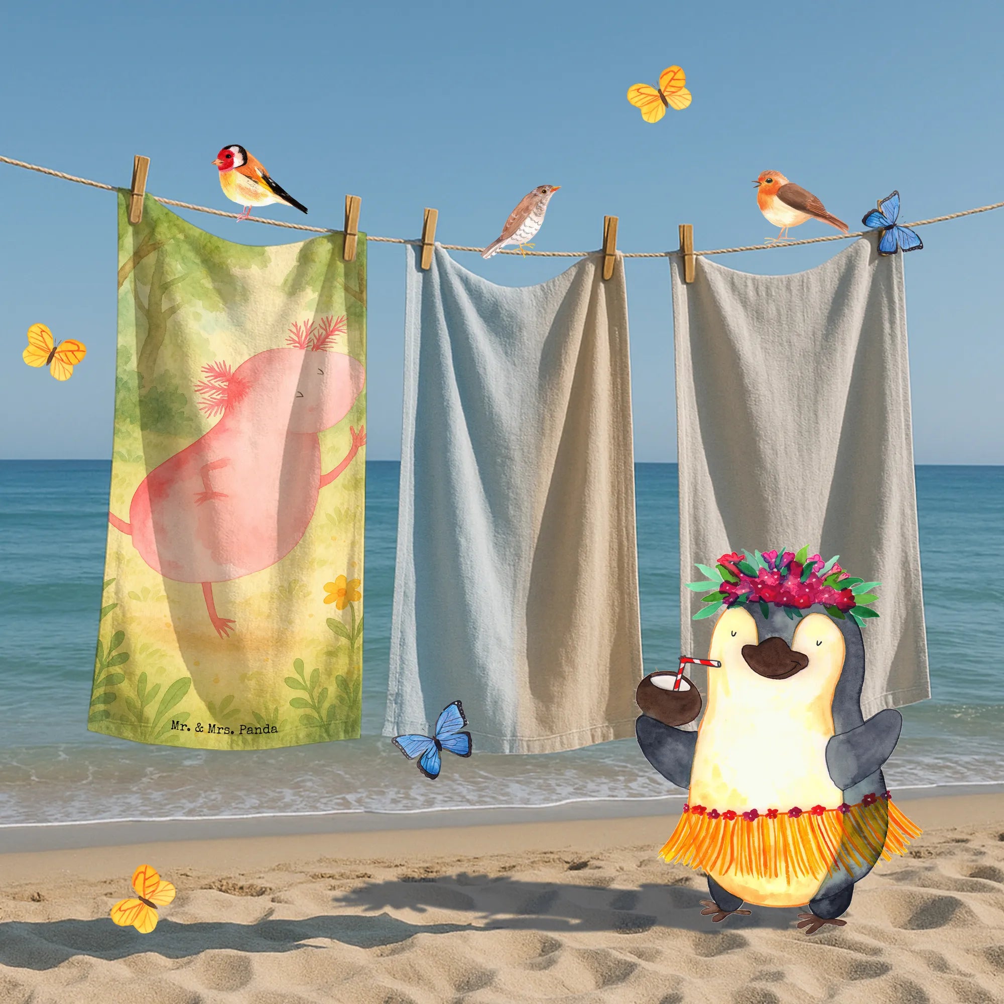 Badehandtuch Axolotl Tanzen Design – Mr. & Mrs. Panda