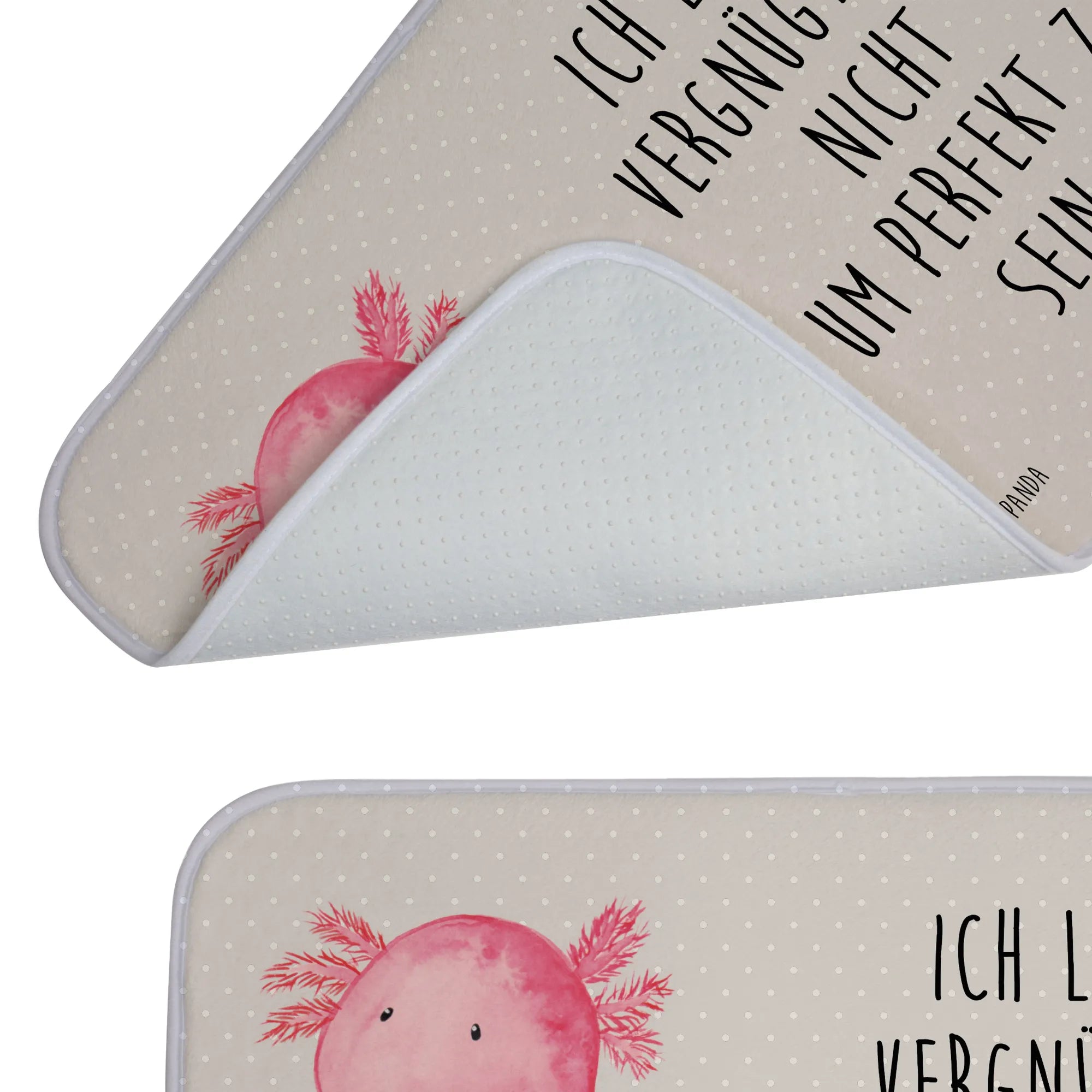 Entdecke die zauberhafte Welt der Axolotl mit unserem einzigartigen Badvorleger von Mr. & Mrs. Panda! Diese Badematte ist nicht nur ein echter Hingucker in Deinem Badezimmer, sondern bringt auch eine ordentliche Portion Freude und Liebe in Deinen Alltag. Der fröhliche Axolotl auf der Matte lächelt Dich an und dessen Slogan "Ich lebe um vergnügt, und nicht um perfekt zu sein" erinnert Dich jeden Tag daran, das Leben zu genießen und seine kleinen Unvollkommenheiten zu feiern.