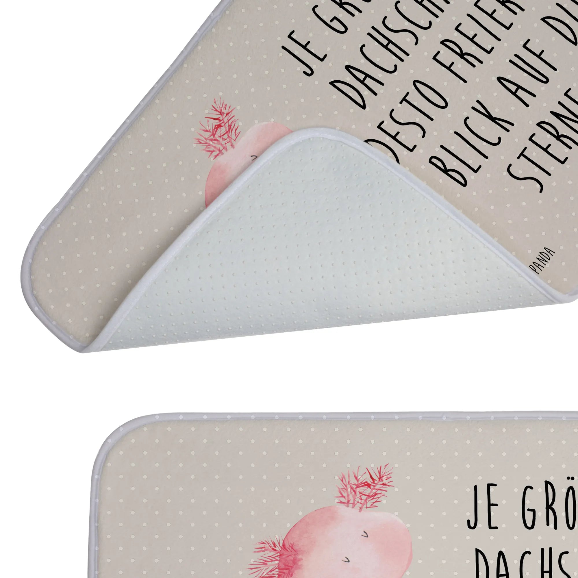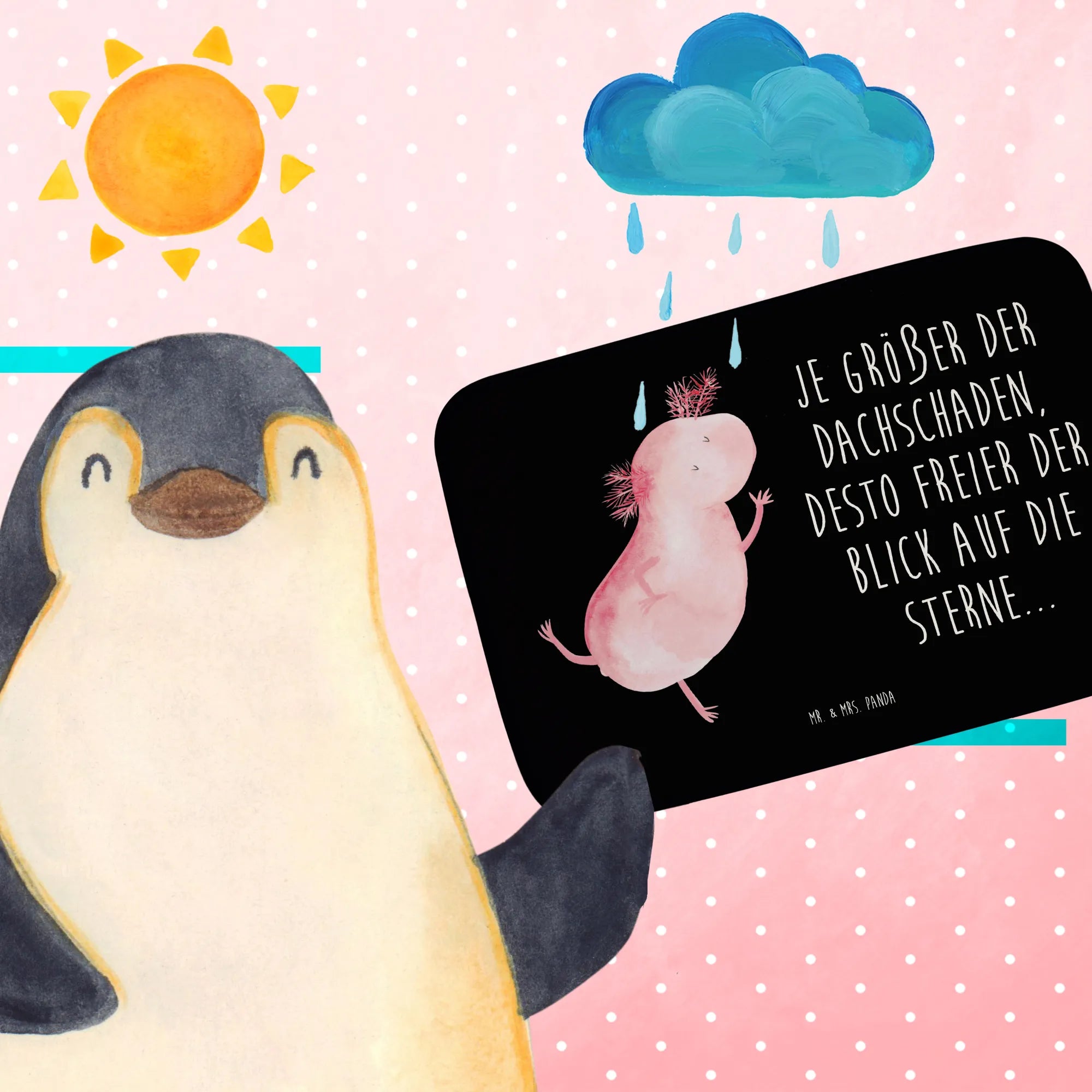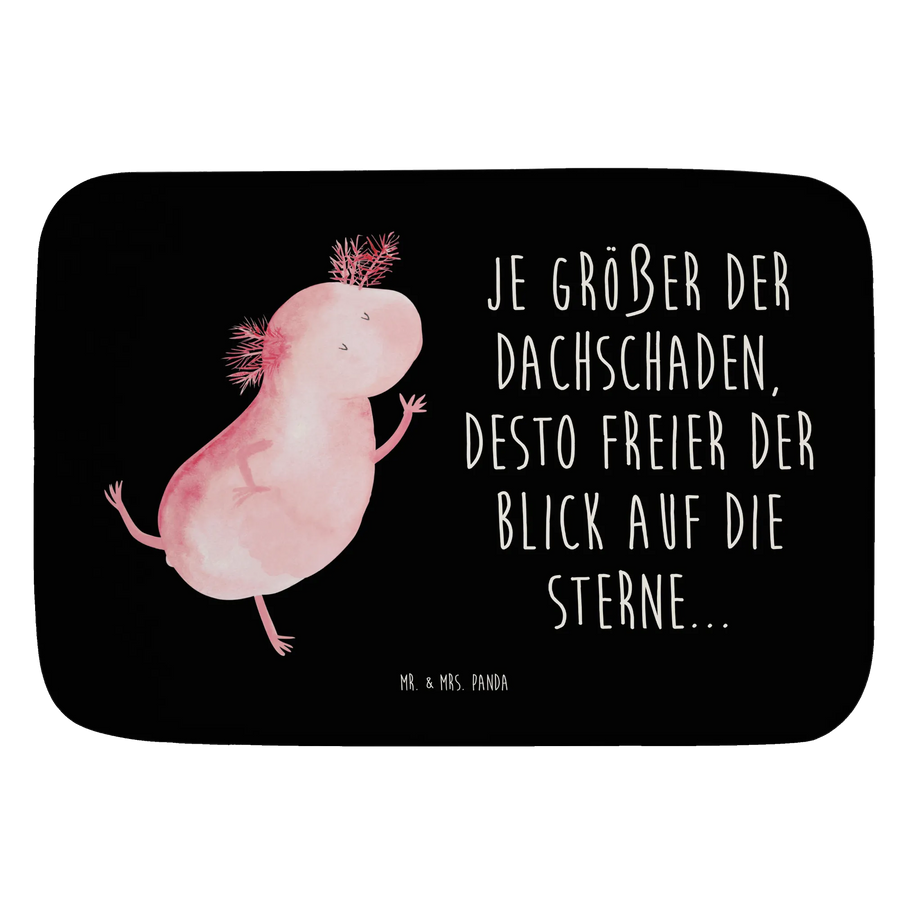 Die Kombination aus dem spritzigen Axolotl und dem Spruch "Je größer der Dachschaden, desto freier der Blick auf die Sterne..." macht diesen Badvorleger nicht nur zu einem charmanten Accessoire, sondern auch zu einem liebevollen Statement.