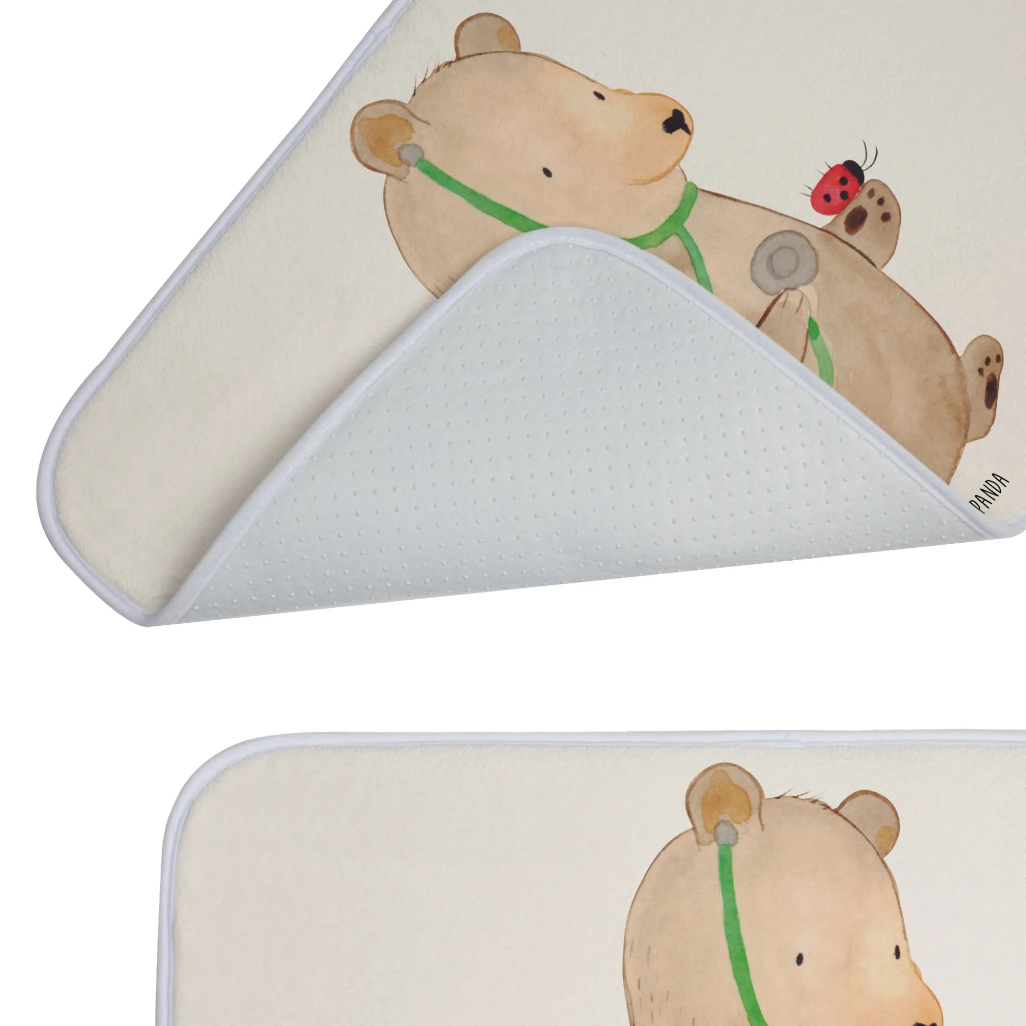 Mit Liebe gestaltet, wird dieser Badvorleger bald der Liebling in jedem Bad sein und die Atmosphäre auflockern. Träume mit dem „Bär Arzt“ und entdecke das Besondere aus der Bär Kollektion von Mr. & Mrs. Panda!