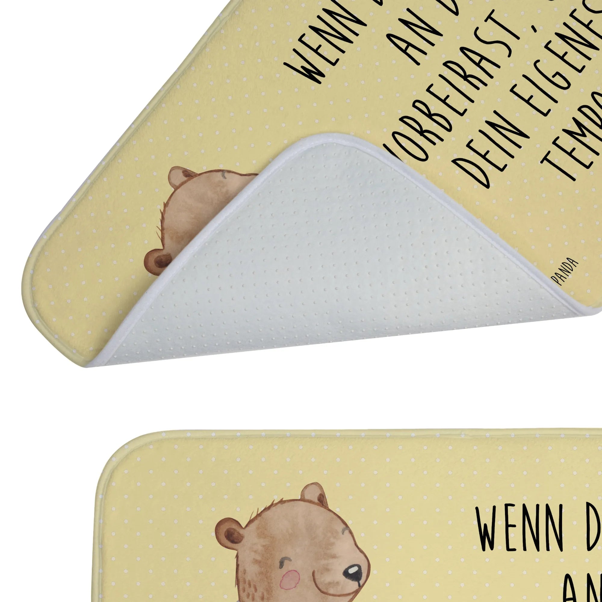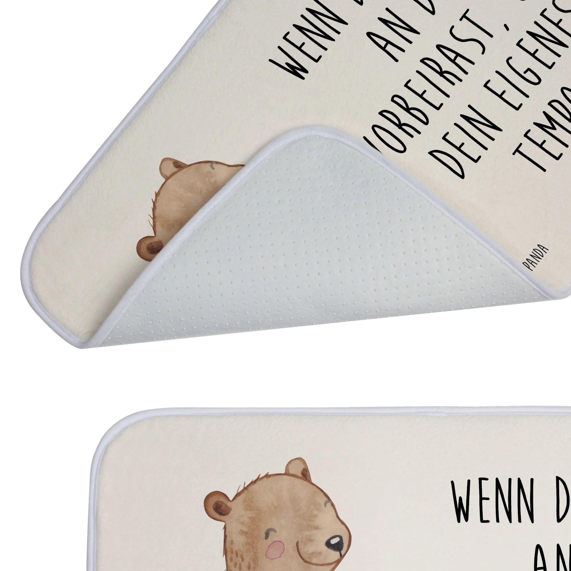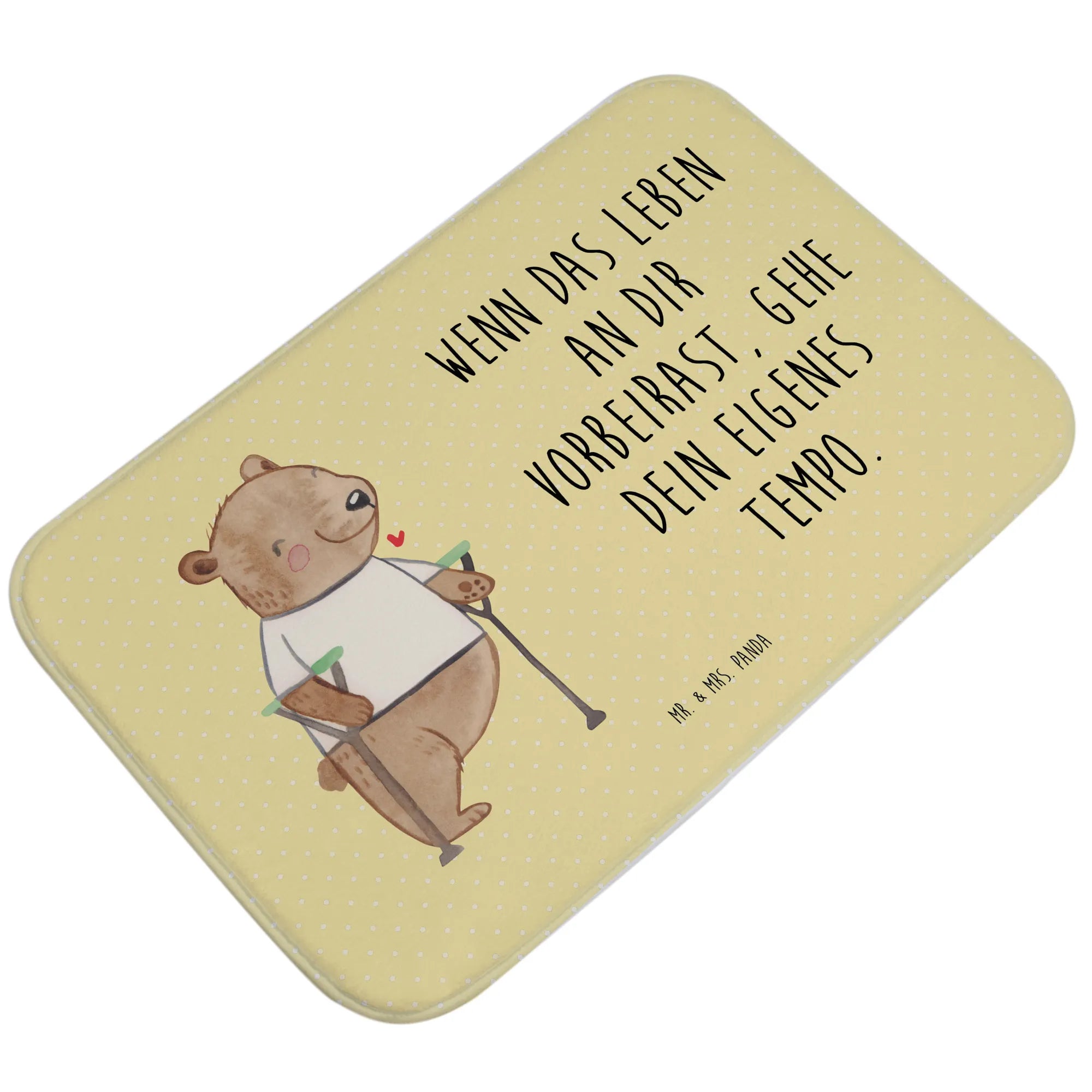 Der Badvorleger mit dem süßen Bärenmotiv "Beinamputation" aus der Kollektion "Tiere mit Superkräften" von Mr. & Mrs. Panda ist das ideale Geschenk für Menschen, die ihren Alltag mit einer Behinderung meistern. Dieser Badteppich verkörpert das Motto: "Wenn das Leben an dir vorbeirast, gehe dein eigenes Tempo." Er steht nicht nur für ein fröhliches Badezimmer, sondern auch für eine wichtige Botschaft: Menschen sind so viel mehr als ihre Defizite.
