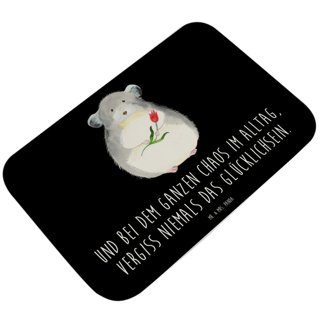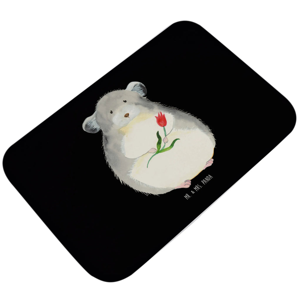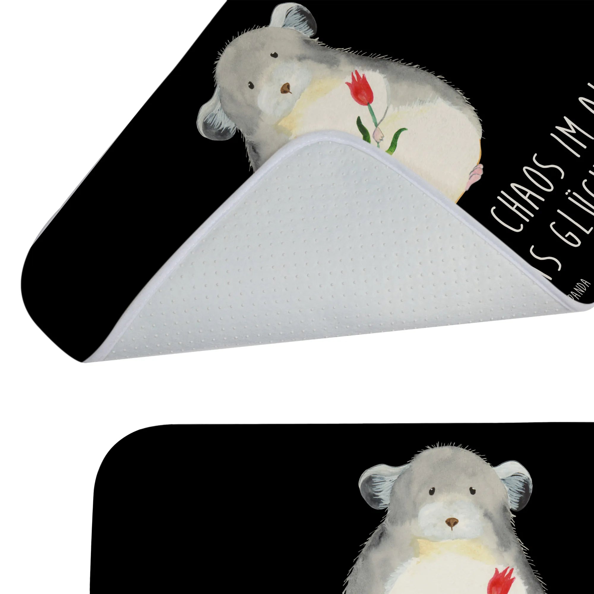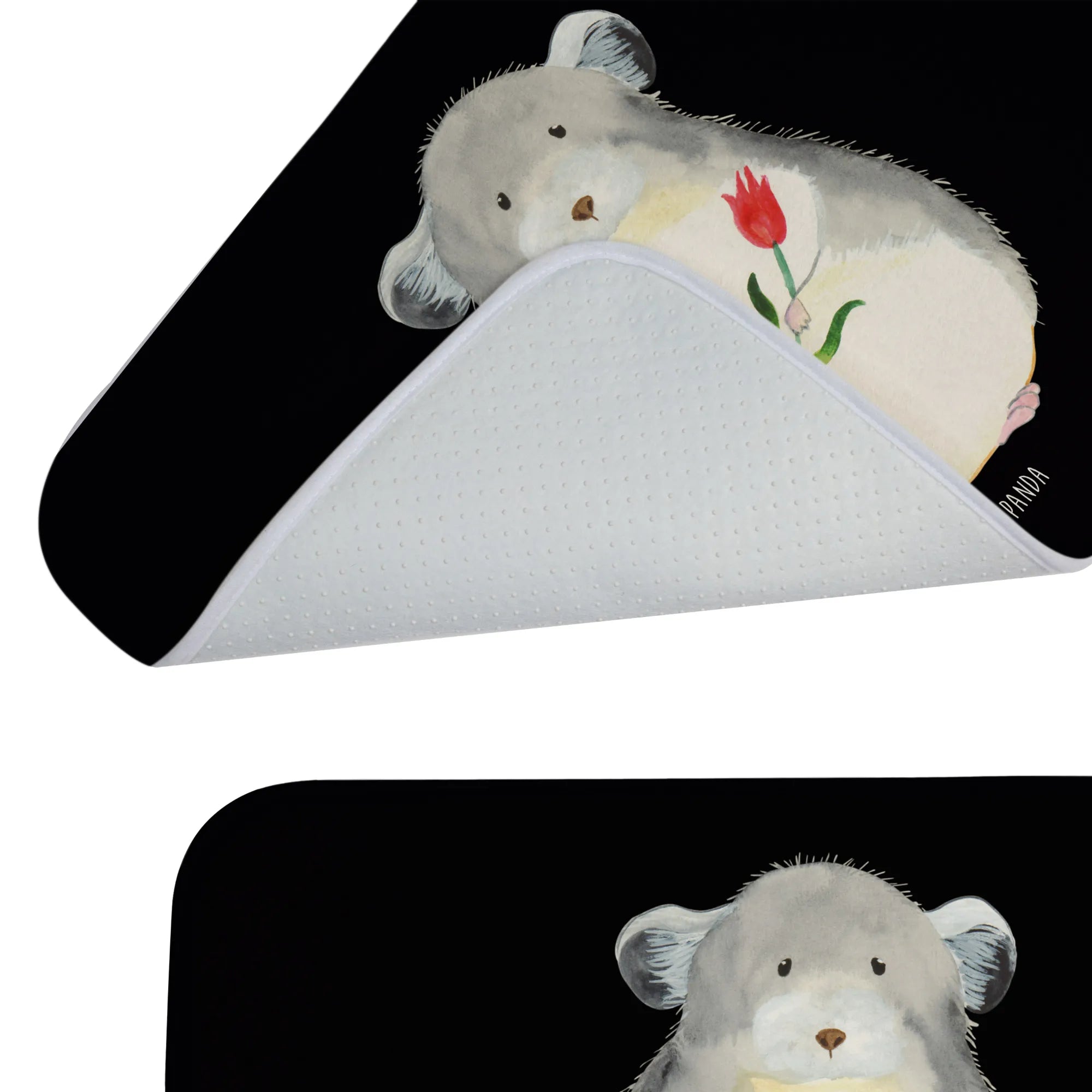 Badematte Chinchilla Blume - mit Spruch - Schwarz