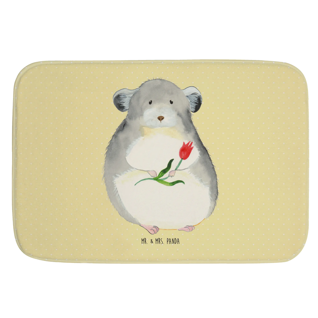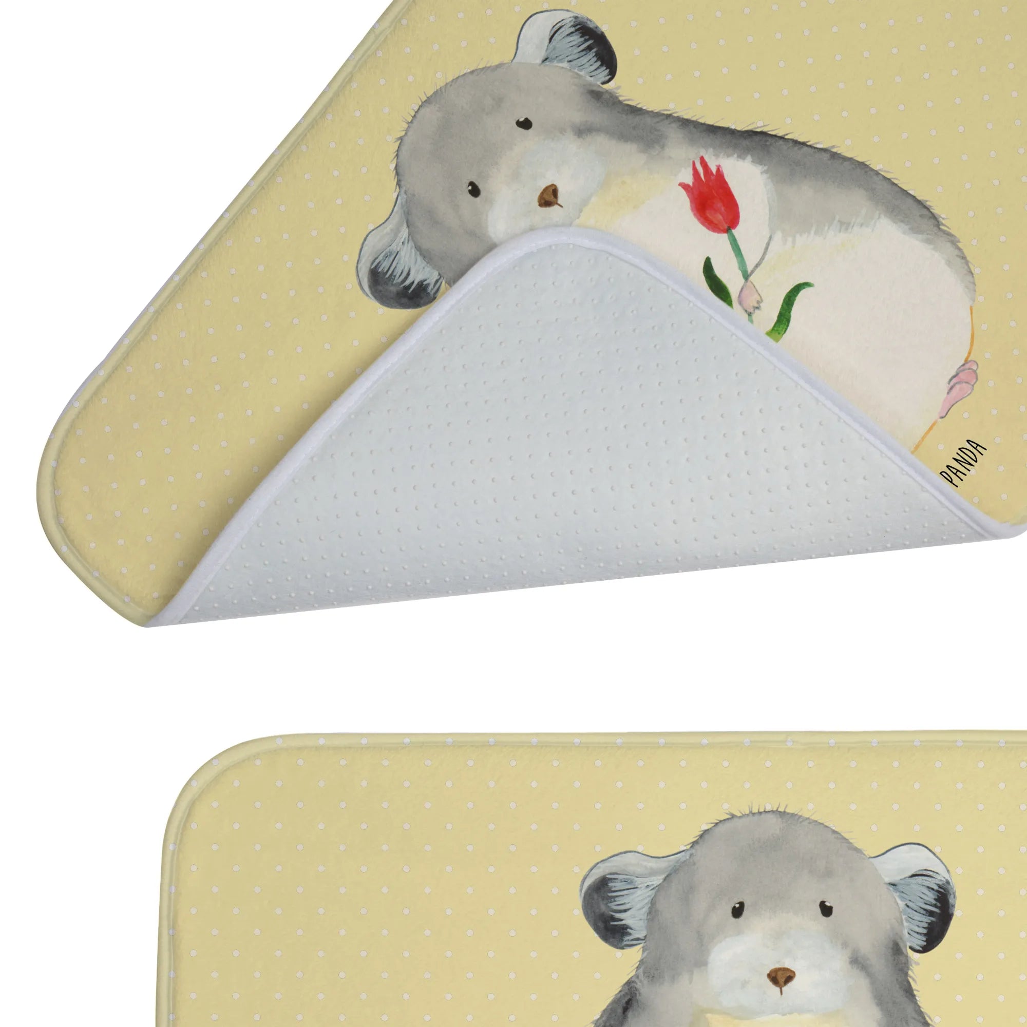 Entdecke die flauschige Welt des Chinchillas mit unserer bezaubernden Badvorleger Chinchilla mit Blume aus der Small World Kollektion von Mr. & Mrs. Panda! Dieses liebevoll gestaltete Accessoire bringt nicht nur gute Laune in dein Badezimmer, sondern sorgt auch für Sicherheit durch die rutschfeste Gummibeschichtung.