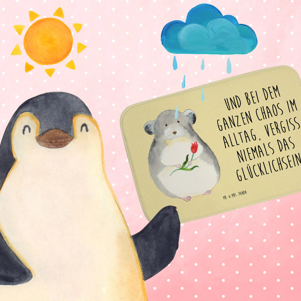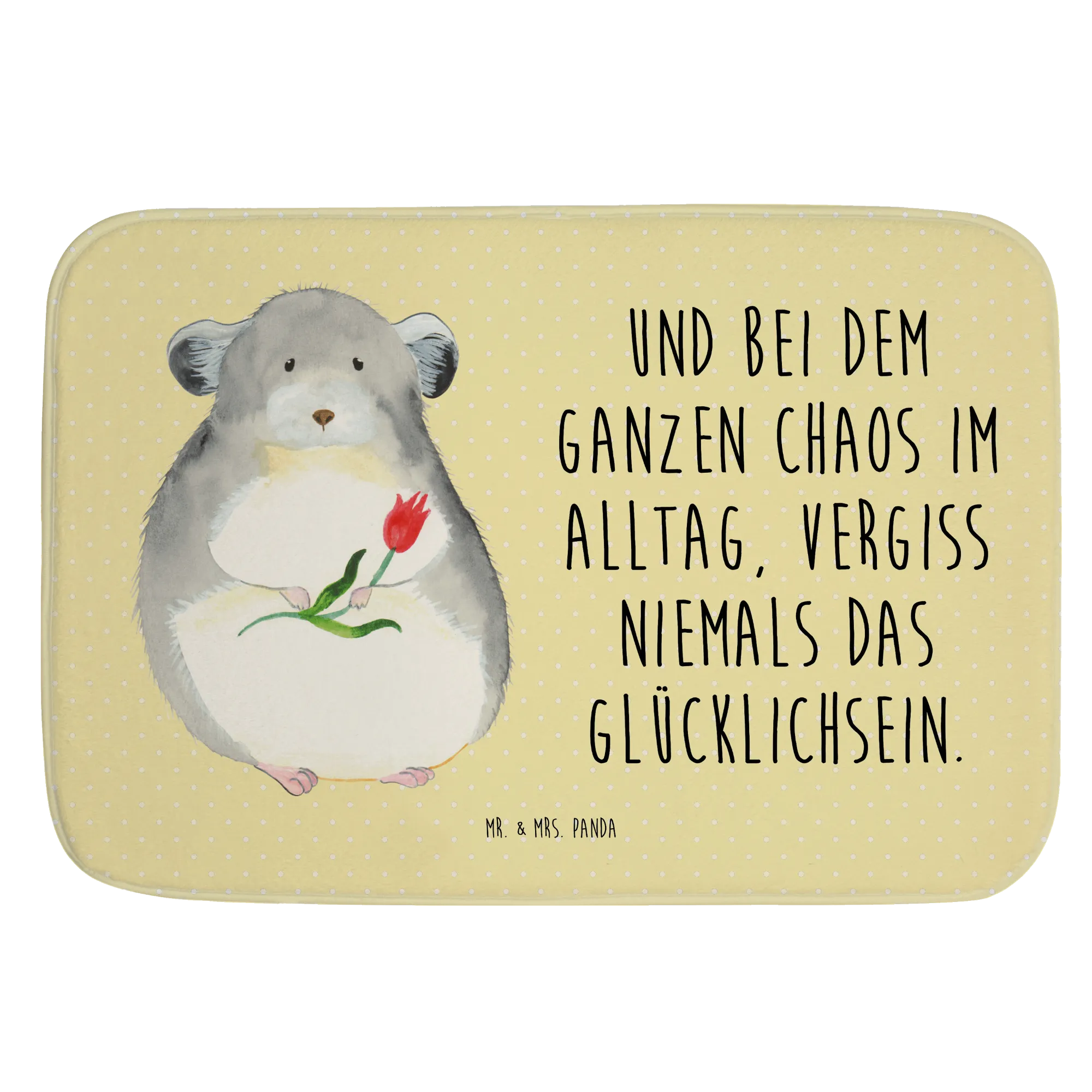 Der Badvorleger "Chinchilla mit Blume" aus der Small World Kollektion von Mr. & Mrs. Panda ist nicht nur ein Must-Have für jedes Badezimmer, sondern auch ein perfektes Geschenk für Tierfreunde und alle, die Freude und Glück in ihren Alltag bringen möchten.