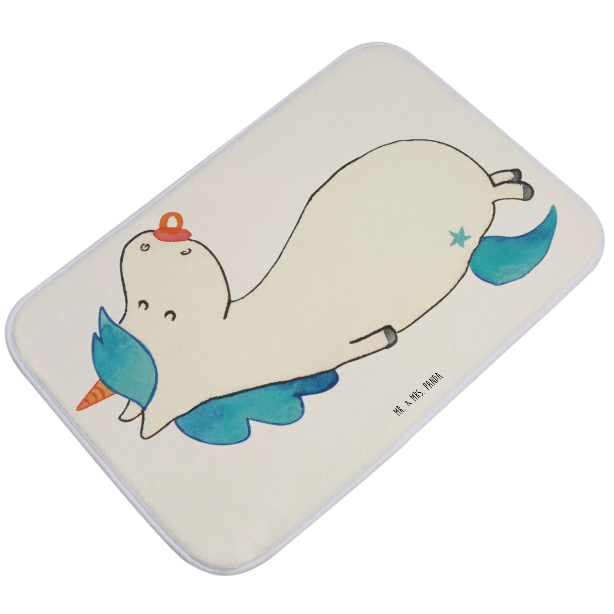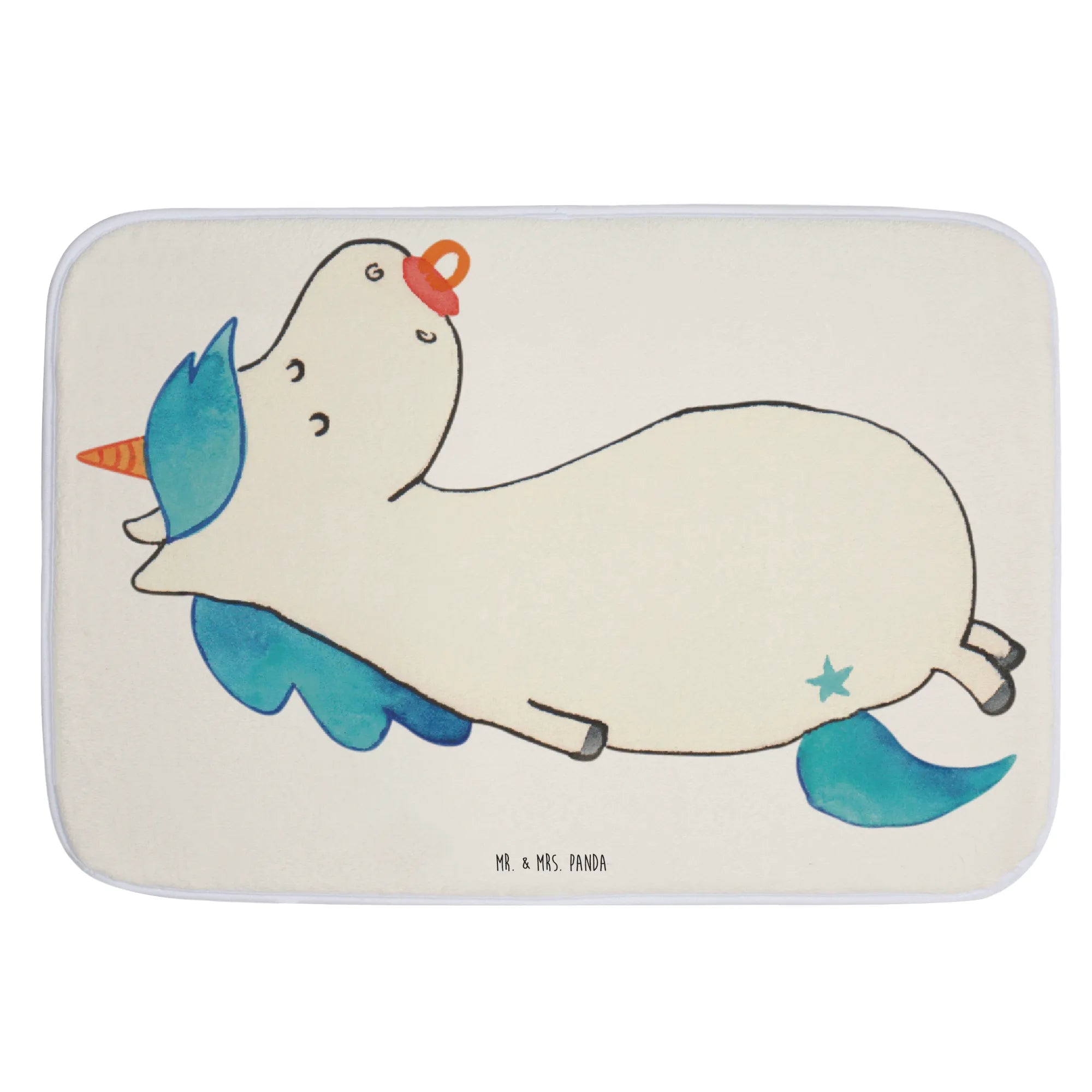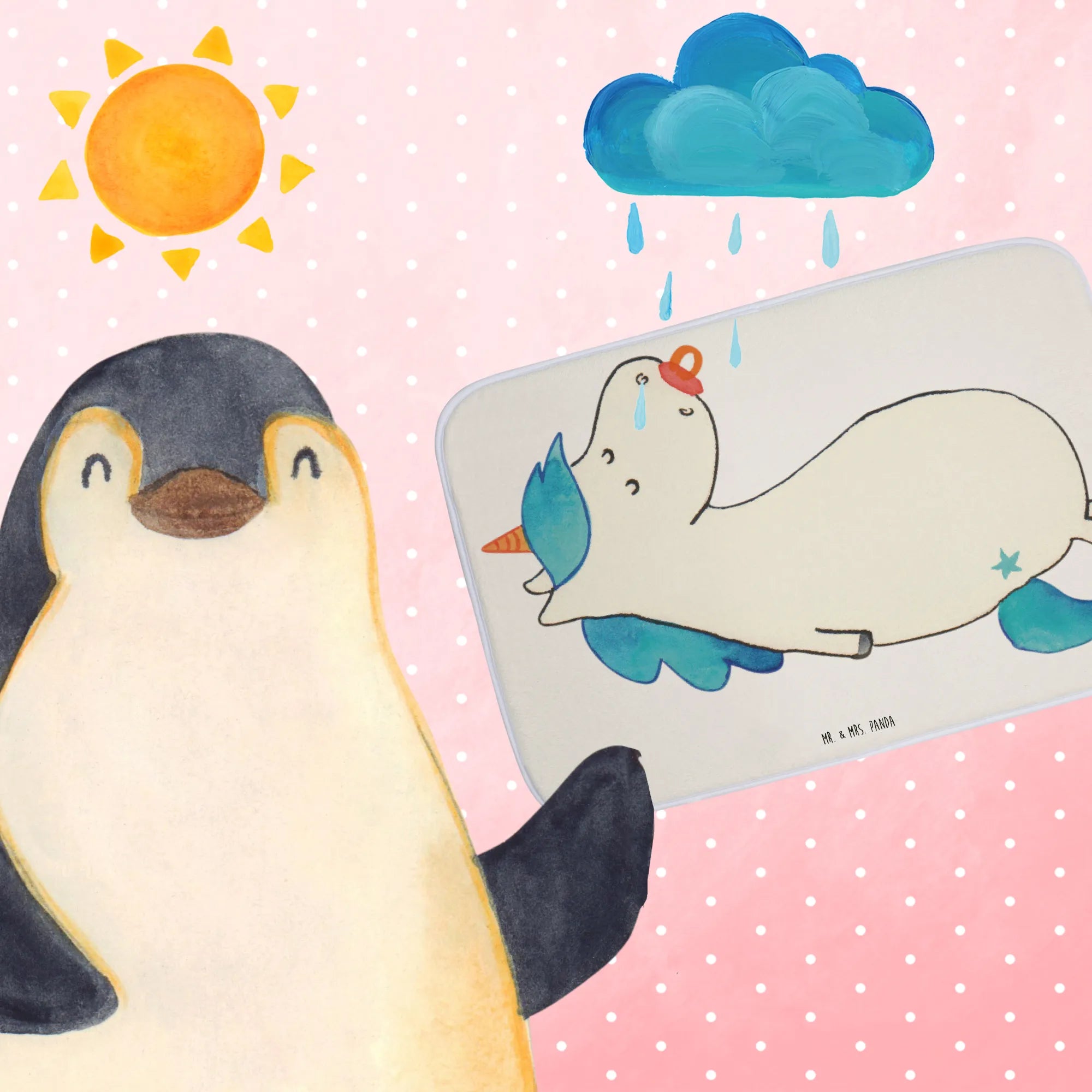 Entdecke den perfekten Badvorleger "Einhorn Schnullie" von Mr. & Mrs. Panda! Mit einem liebevoll handgezeichneten Motiv eines süßen Einhorns, das zufrieden mit einem Schnuller schläft, bringt dieser Badteppich zauberhafte Stimmung in jedes Badezimmer.