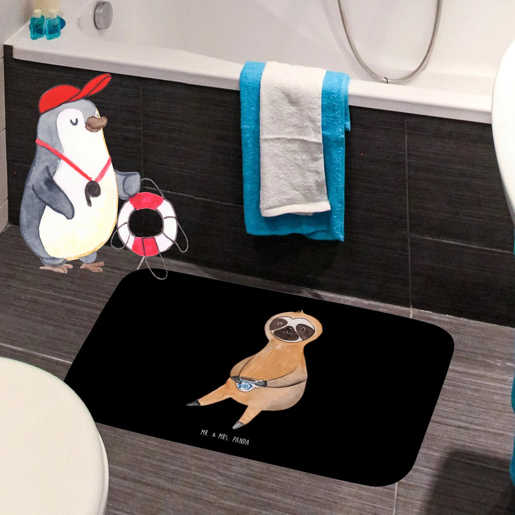 Badematte Faultier Kaffee - mit Spruch - Schwarz