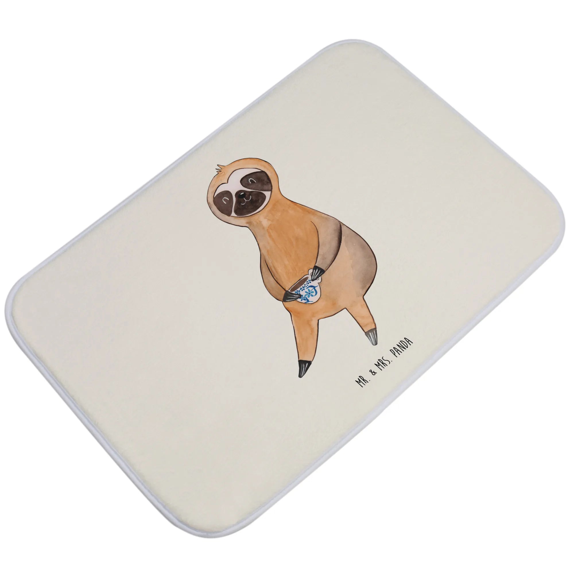 Der Badvorleger "Faultier Kaffee" von Mr. & Mrs. Panda ist das perfekte Geschenk für alle Faultier-Liebhaber und Kaffee-Genießer! Mit seinem charmanten Design, das ein niedliches Faultier zeigt, das genüsslich seinen Kaffee schlürft, bringt dieser Badteppich nicht nur Freude ins Badezimmer, sondern auch einen Hauch von Ruhe und Gelassenheit.