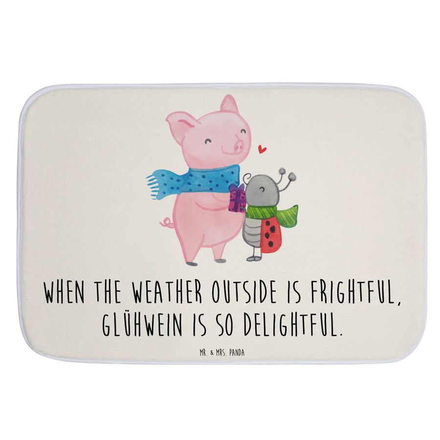 Der Badvorleger Glühschwein Smörle aus der Winter Kollektion von Mr. & Mrs. Panda ist nicht nur ein praktisches, sondern auch ein ganz besonderes Geschenk. Mit seinem fröhlichen Design bringt dieser Badteppich Farbe und Wärme in dein Badezimmer. Das liebevoll handgezeichnete Motiv zeigt unser süßes Glühschwein, das in einem blauen gepunkteten Schal eine Tasse Glühwein hält, während der fröhliche Marienkäfer Smörle mit einem gestreiften, grünen Schal ihm zur Seite steht. Diese beiden Charaktere verkörpern Freundschaft und Gemütlichkeit und verleihen deiner Badezimmer-dekoration einen herzerwärmenden Winterzauber.