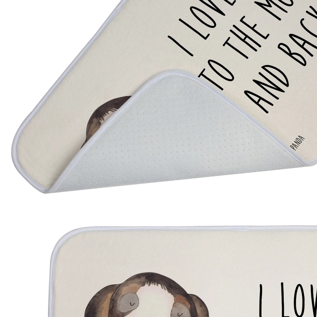 Der Badvorleger, bedruckt mit einem niedlichen schwarz-weißen Hund, bringt nicht nur eine tolle Optik in dein Badezimmer, sondern sorgt auch für ein gemütliches und sicheres Gefühl beim Betreten der Dusche oder Badewanne. Mit dem Slogan "I love you to the moon and back" zeigt dieser Badvorleger deine Liebe zu deinem vierbeinigen Freund und macht ihn zu einem perfekten Geschenk für Hundebesitzer und Tierliebhaber.