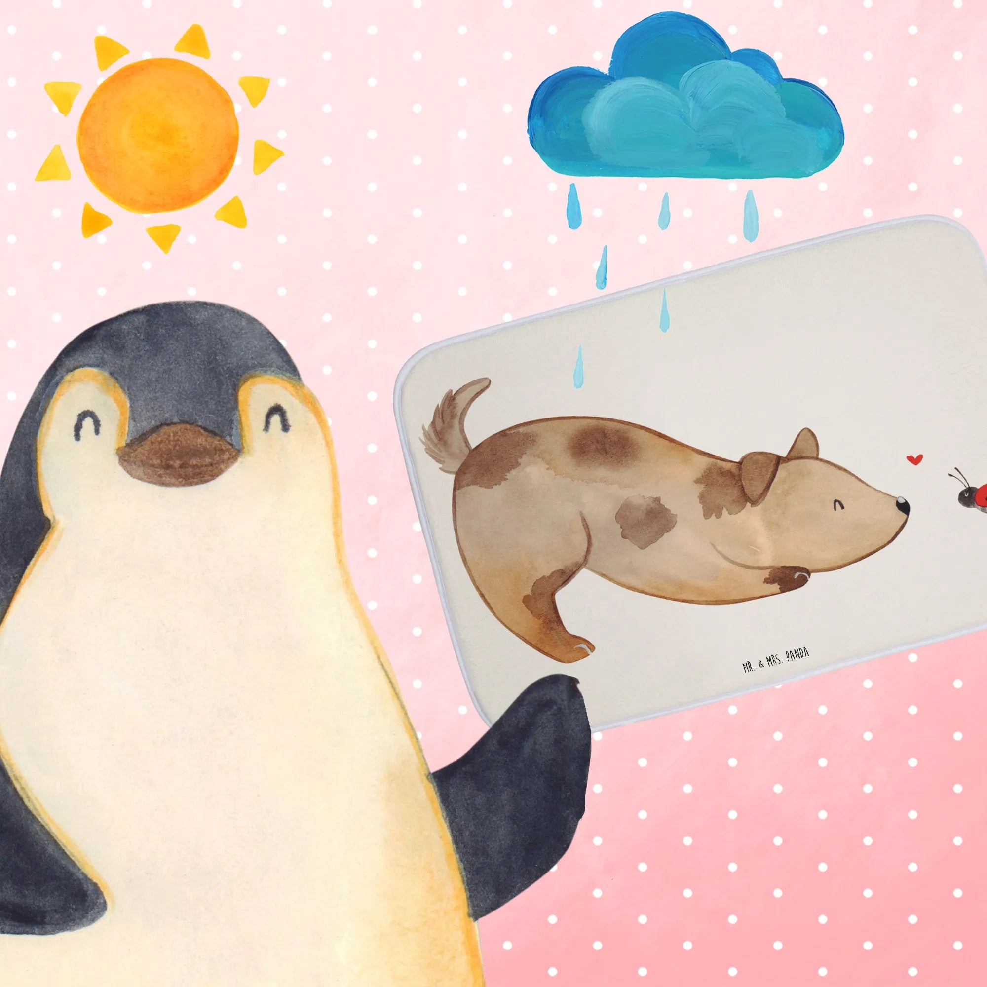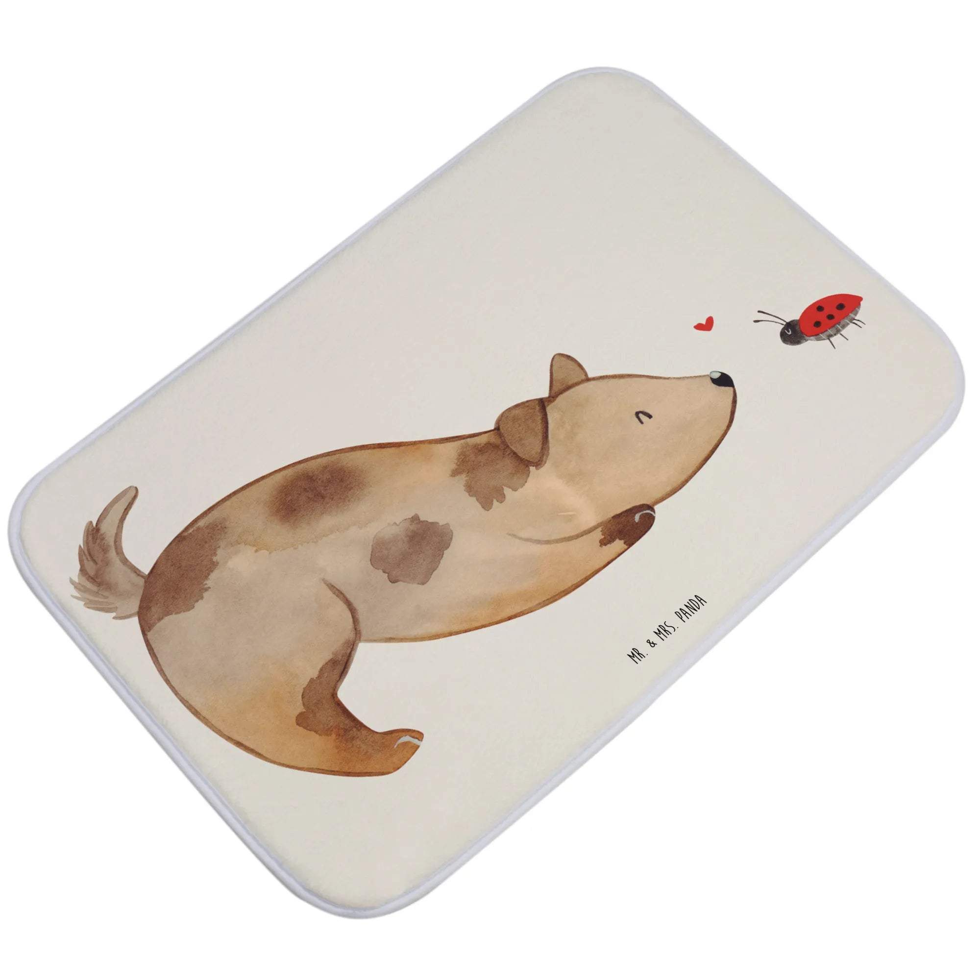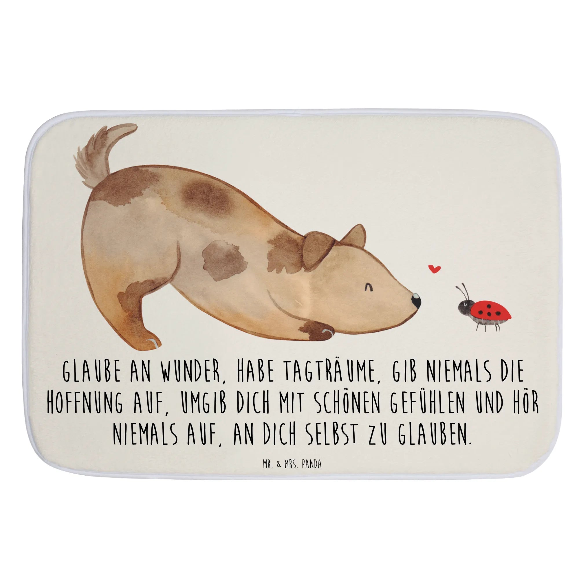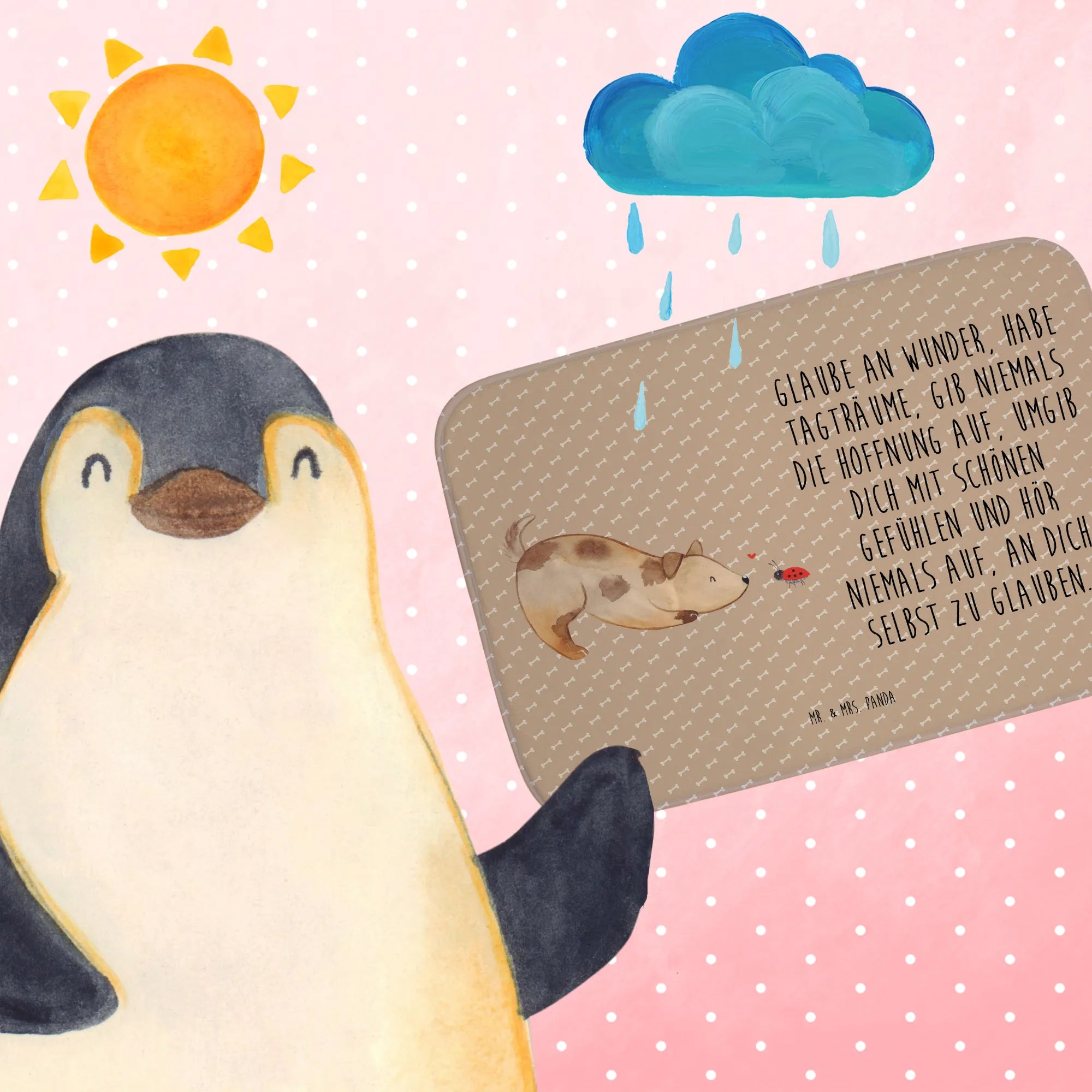 Die Badvorleger mit dem niedlichen Hund Marienkäfer Motiv aus der Hunde Kollektion von Mr. & Mrs. Panda ist das perfekte Geschenk für Tierliebhaber und Hundebesitzer! Dieser wunderschöne Badvorleger ist nicht nur ein Hingucker in jedem Badezimmer, sondern sorgt auch für Sicherheit dank seiner rutschfesten Gummibeschichtung.