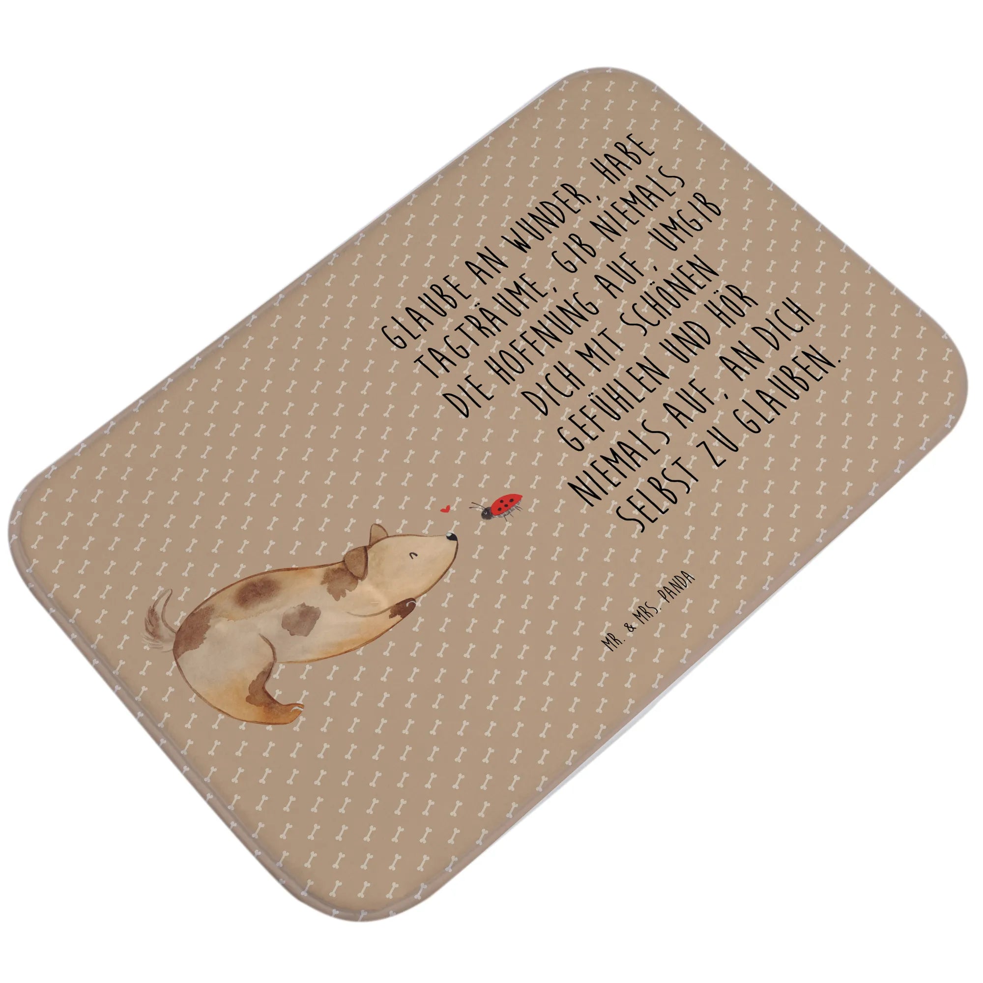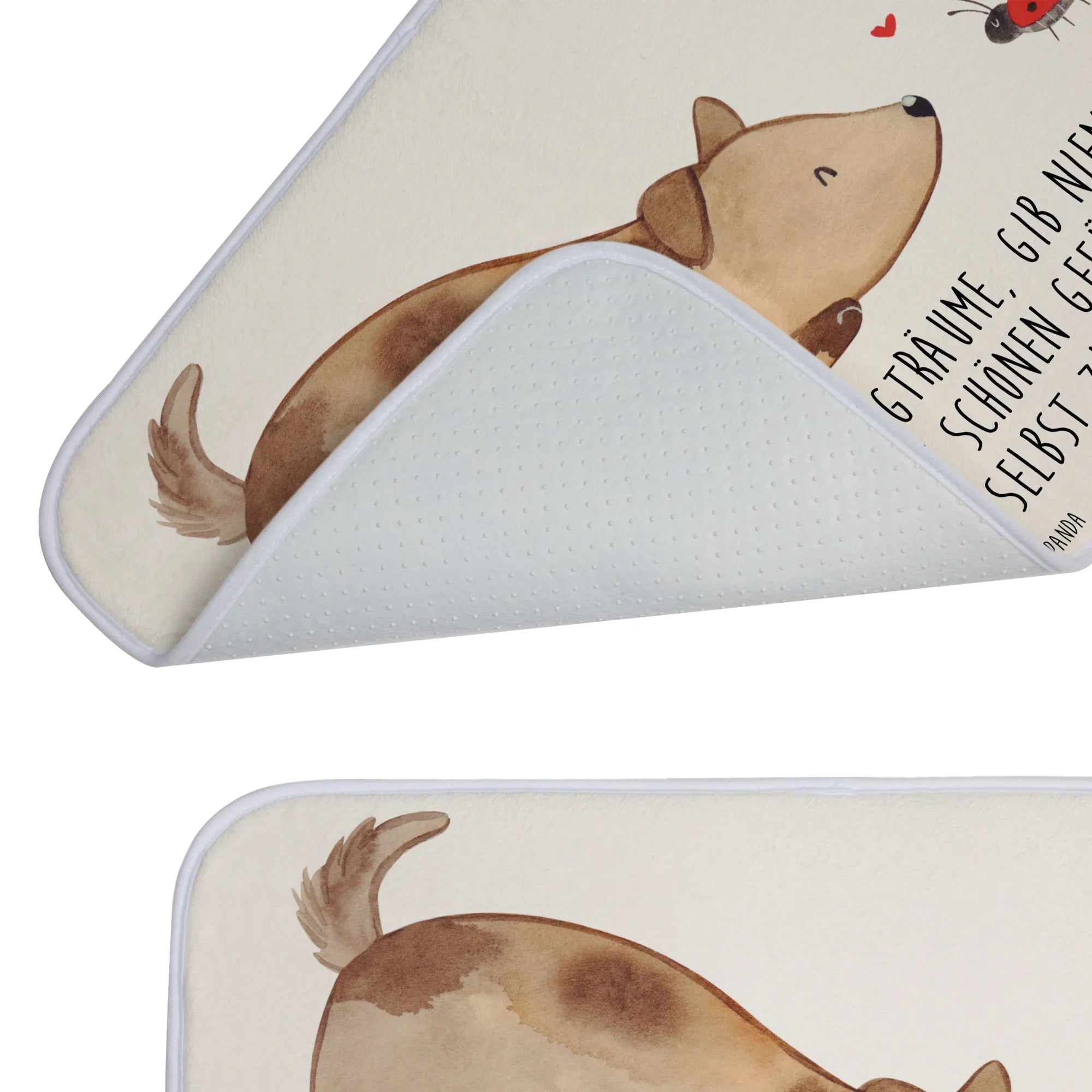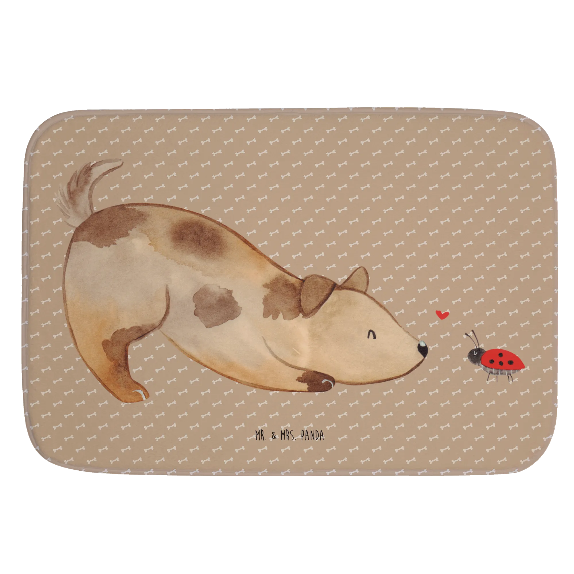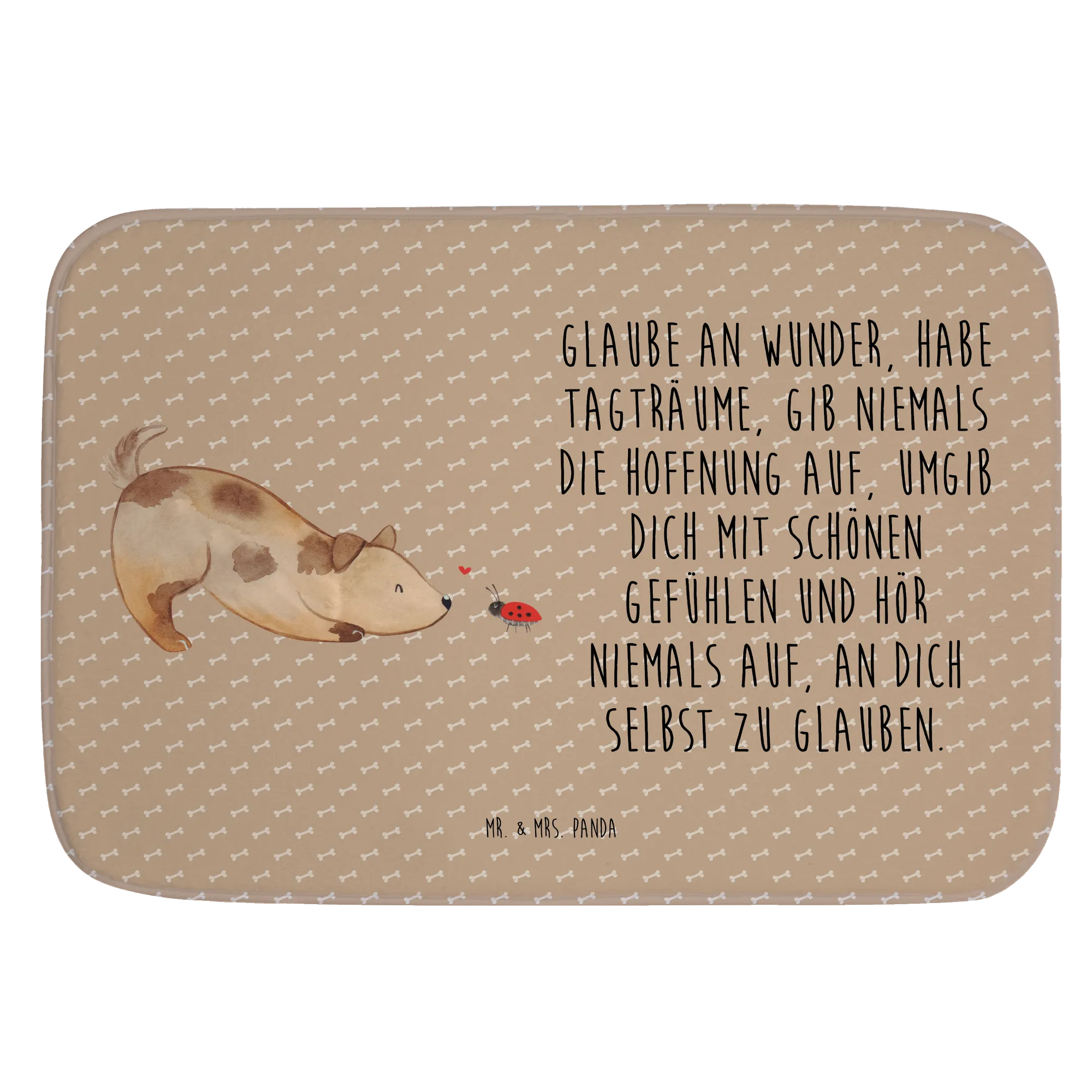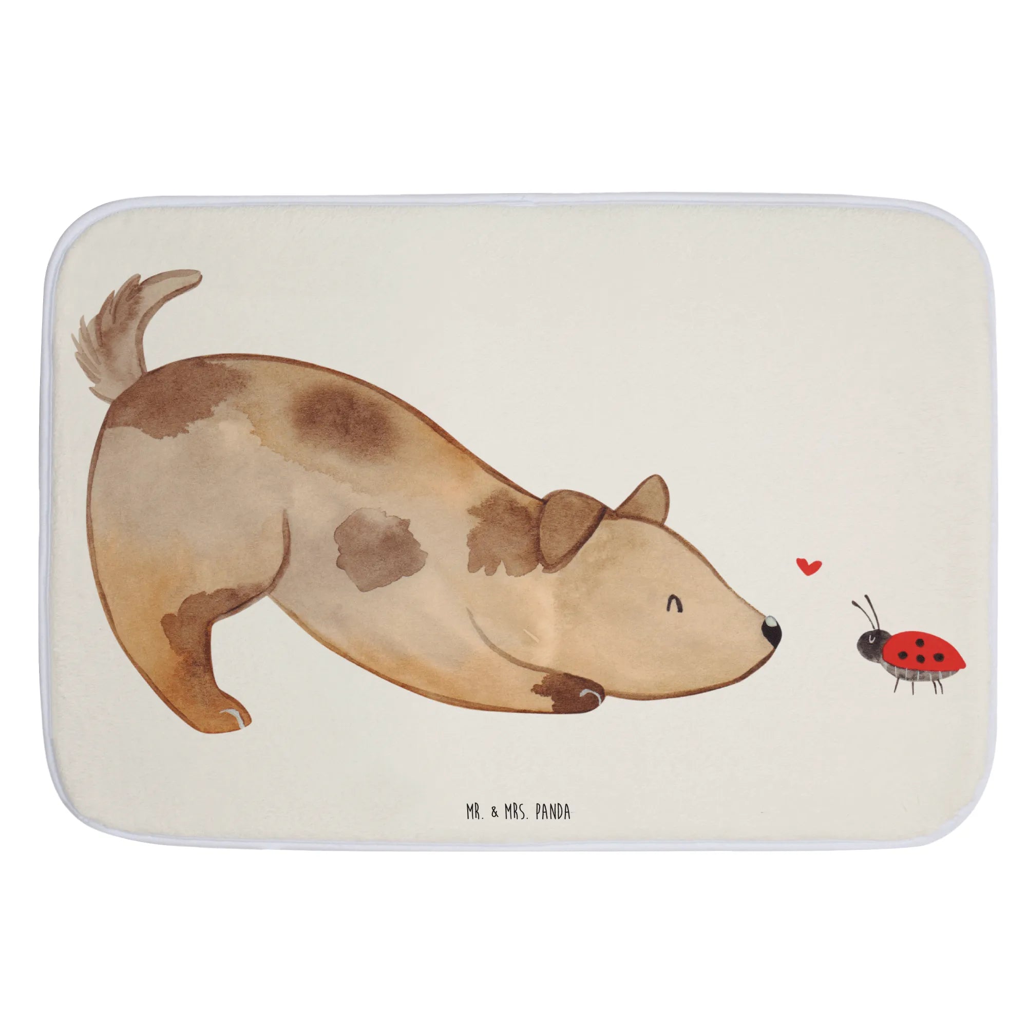 Die Badvorleger mit dem niedlichen Hund Marienkäfer Motiv aus der Hunde Kollektion von Mr. & Mrs. Panda ist das perfekte Geschenk für Tierliebhaber und Hundebesitzer! Dieser wunderschöne Badvorleger ist nicht nur ein Hingucker in jedem Badezimmer, sondern sorgt auch für Sicherheit dank seiner rutschfesten Gummibeschichtung.