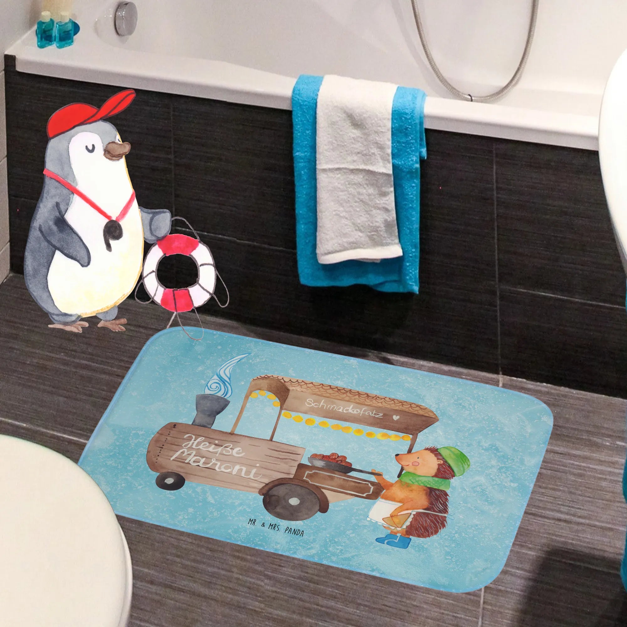 Der Badvorleger "Igel Maronen" aus der Winter Kollektion von Mr. & Mrs. Panda ist nicht nur ein wunderschöner Blickfang für dein Badezimmer, sondern auch ein perfektes Geschenk für die kalte Jahreszeit. Mit seinem zauberhaften Motiv eines kleinen Igels, der feierlich heiße Maronen verkauft, entfaltet dieser Badteppich eine warme und einladende Atmosphäre.