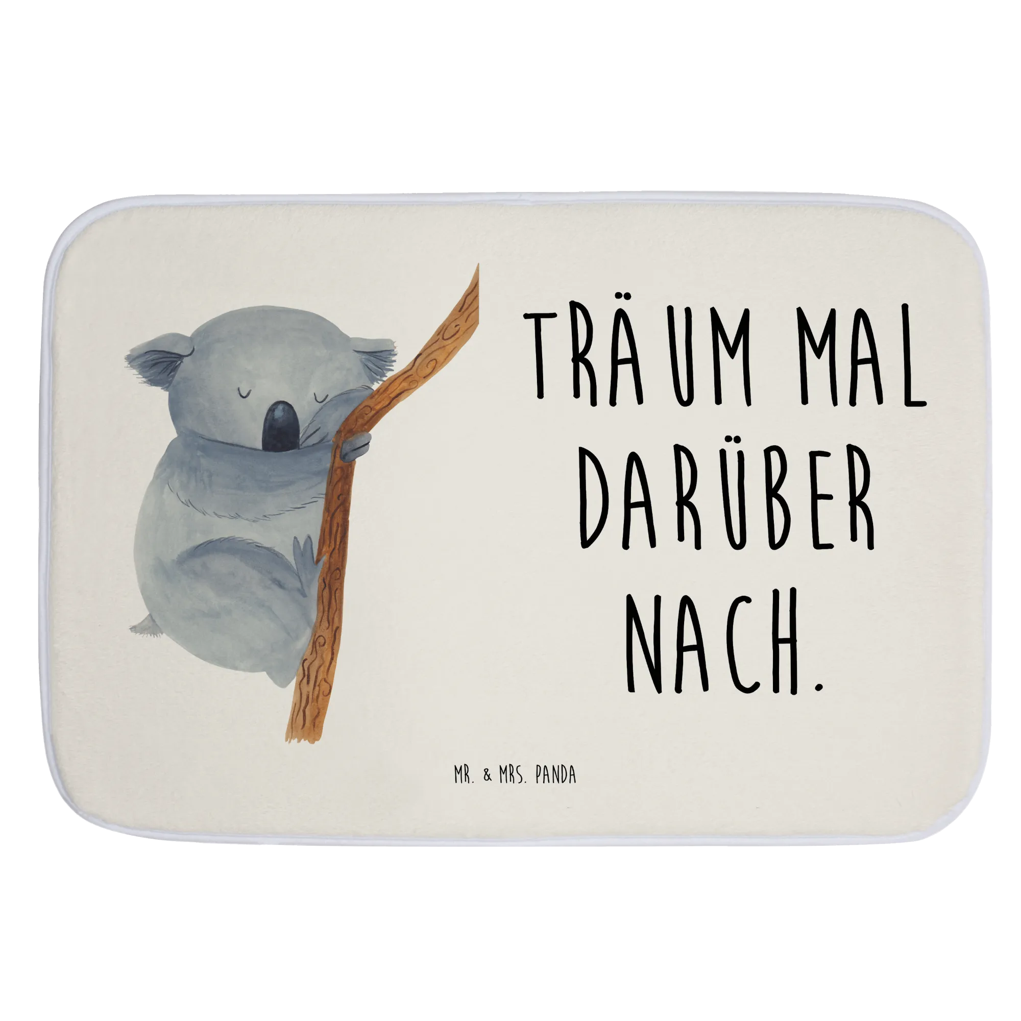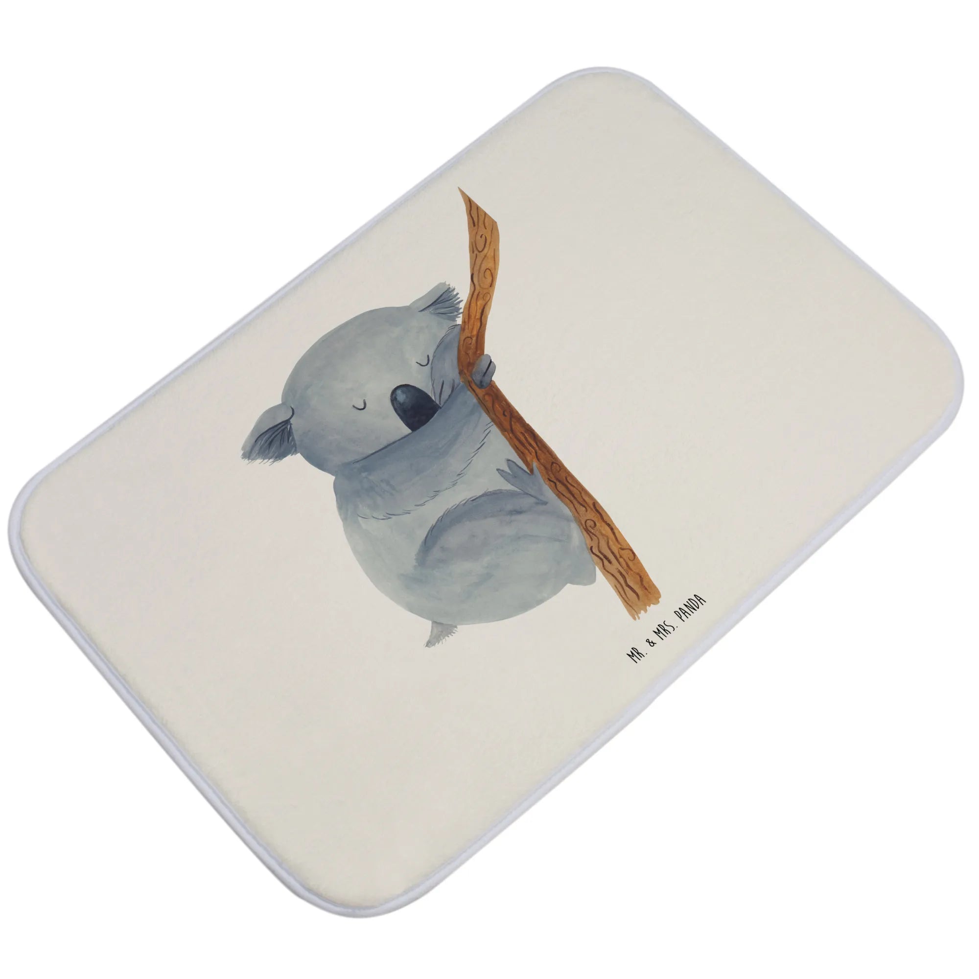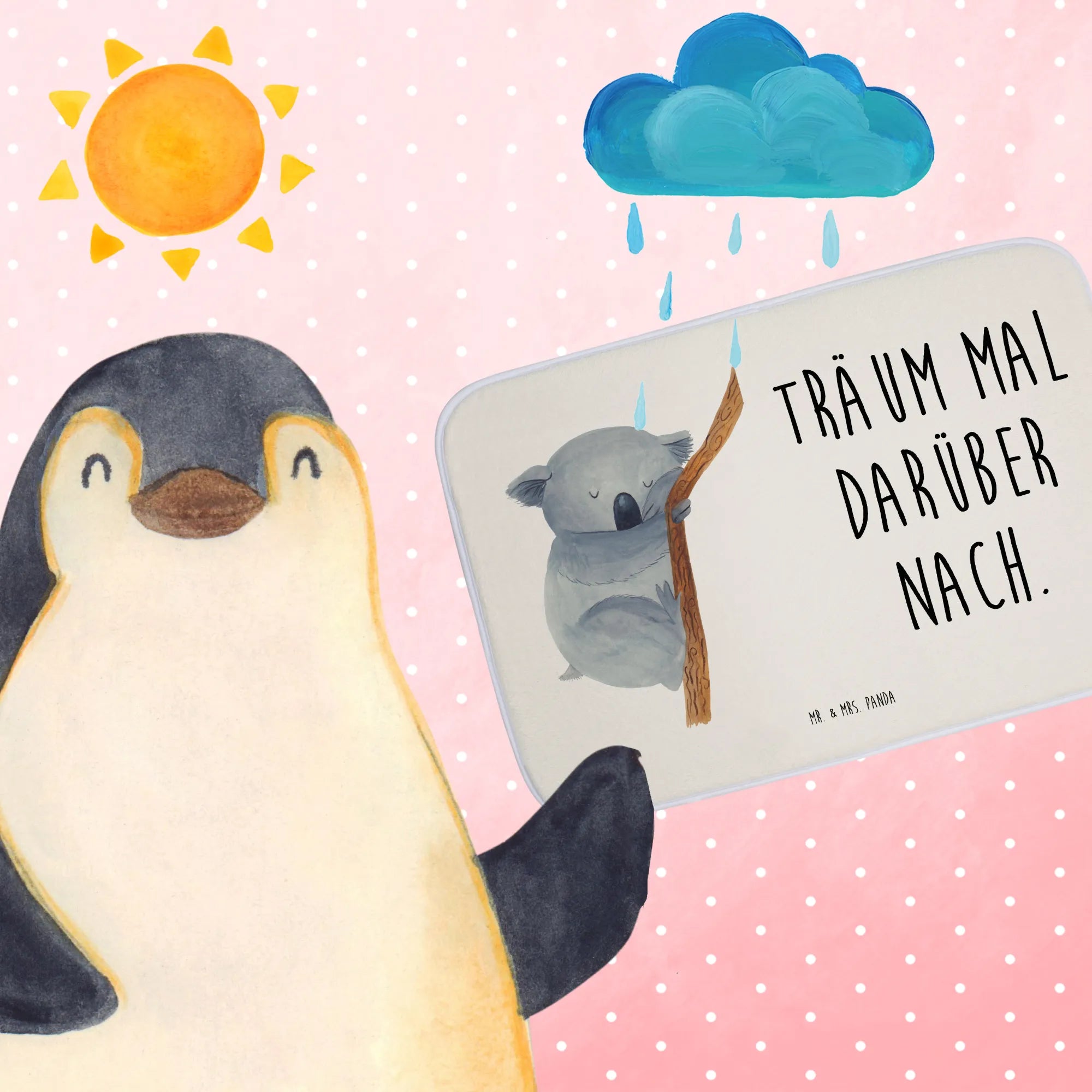 Du möchtest dein Badezimmer in eine Oase der Entspannung verwandeln? Dann ist der Badvorleger mit dem niedlichen Koalabär-Motiv von Mr. & Mrs. Panda genau das Richtige für dich! Aus der beliebten Small World Kollektion, zeigt dieser Badvorleger einen schlafenden Koala, der sich an einem Ast festklammert. Die sanften Farben und das liebevoll handgezeichnete Design bringen > gute Laune in dein Badezimmer. Der Koalabär träumt von Eukalyptusblättern und lädt dich ein, ebenfalls ein wenig auszuruhen.