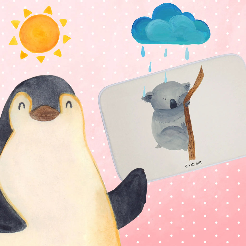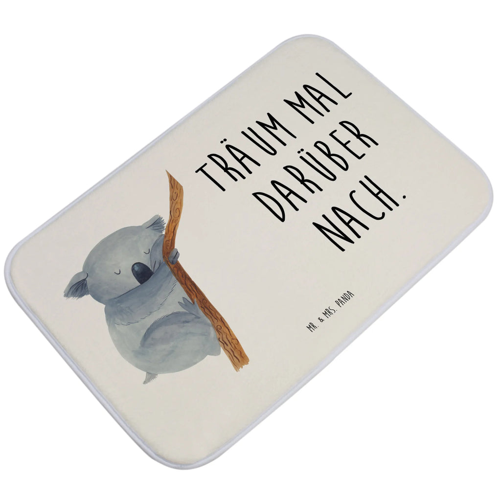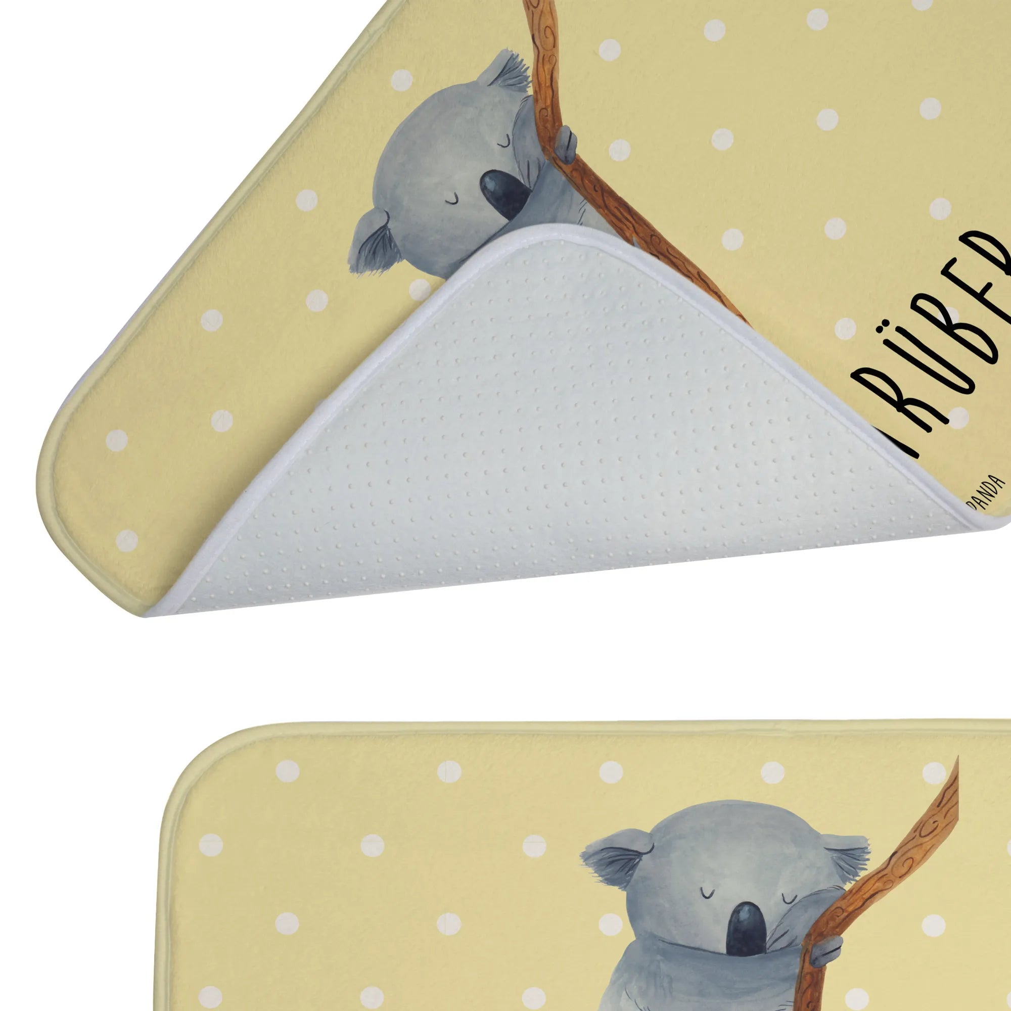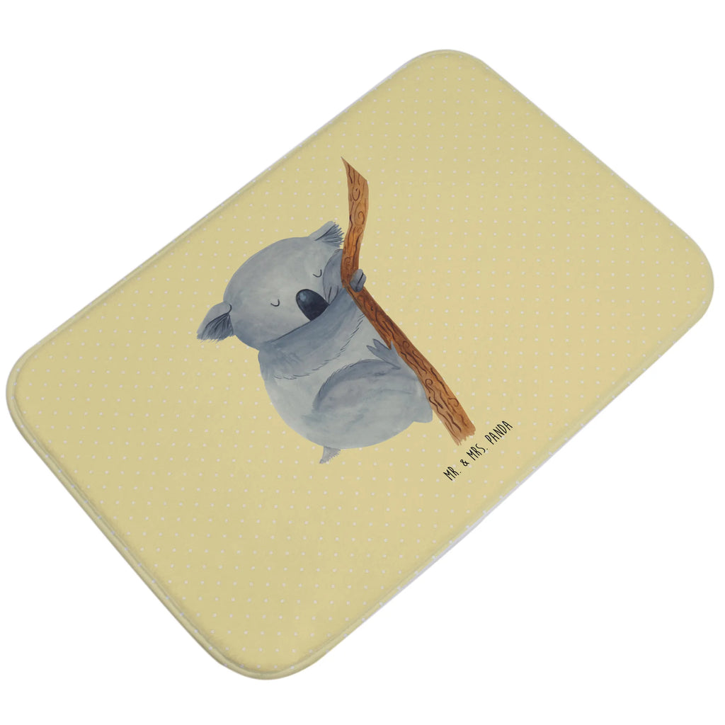 Du möchtest dein Badezimmer in eine Oase der Entspannung verwandeln? Dann ist der Badvorleger mit dem niedlichen Koalabär-Motiv von Mr. & Mrs. Panda genau das Richtige für dich! Aus der beliebten Small World Kollektion, zeigt dieser Badvorleger einen schlafenden Koala, der sich an einem Ast festklammert. Die sanften Farben und das liebevoll handgezeichnete Design bringen > gute Laune in dein Badezimmer. Der Koalabär träumt von Eukalyptusblättern und lädt dich ein, ebenfalls ein wenig auszuruhen.