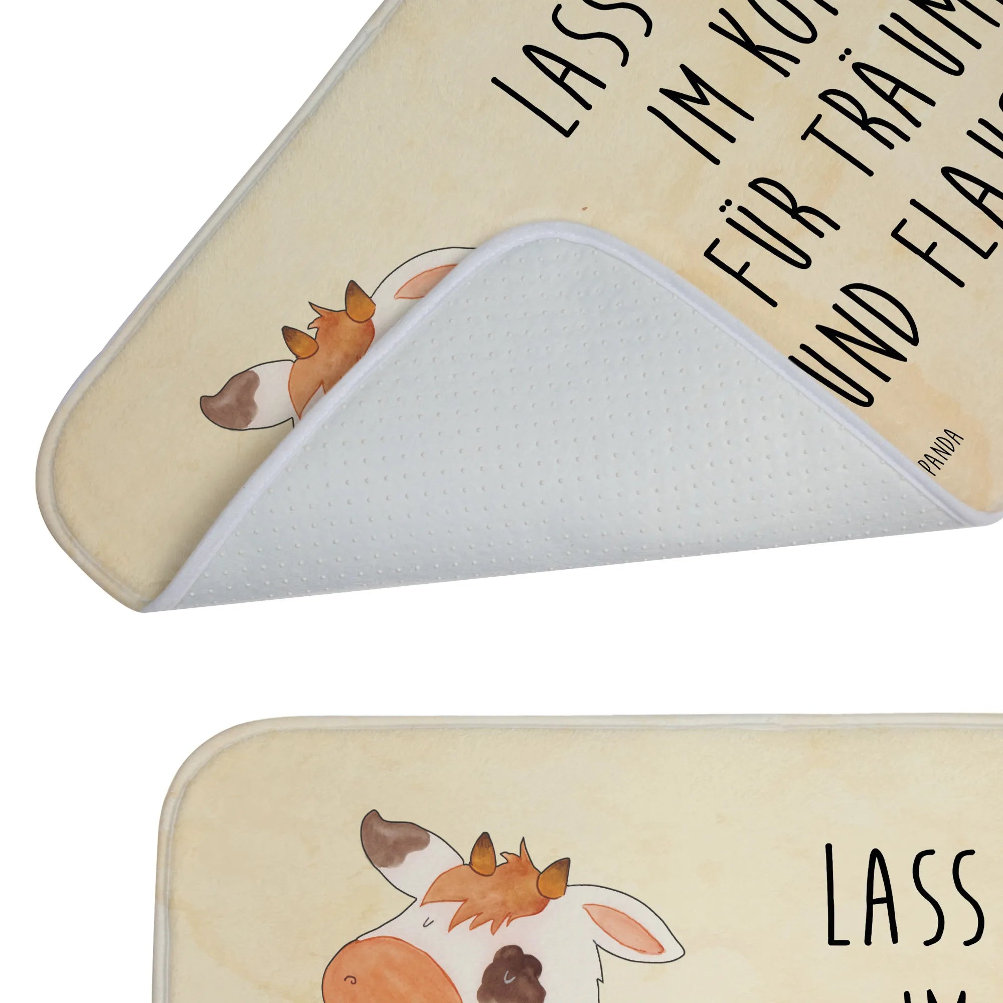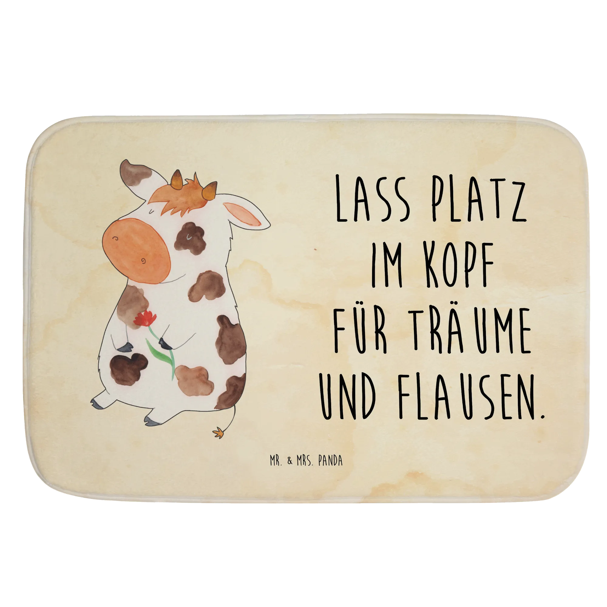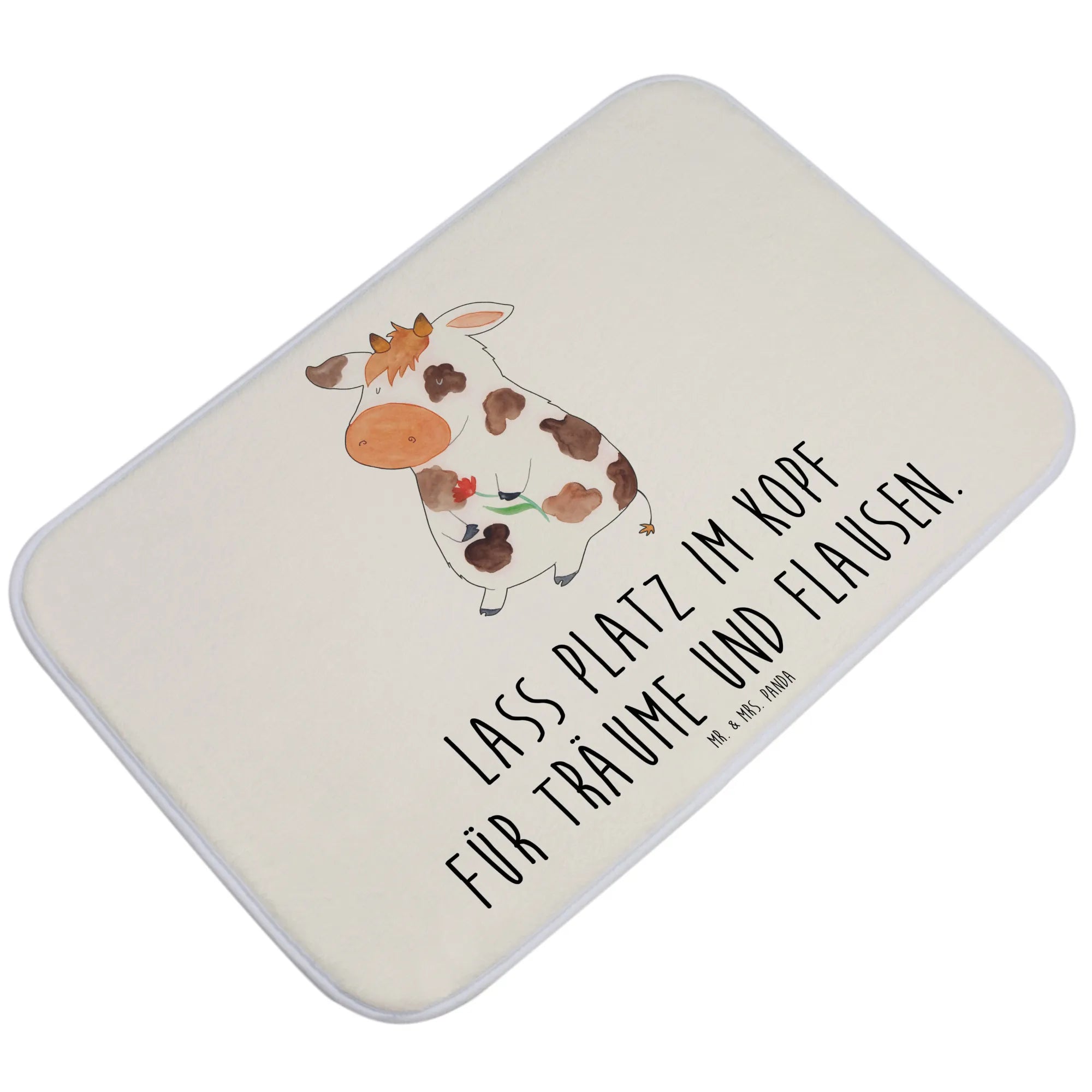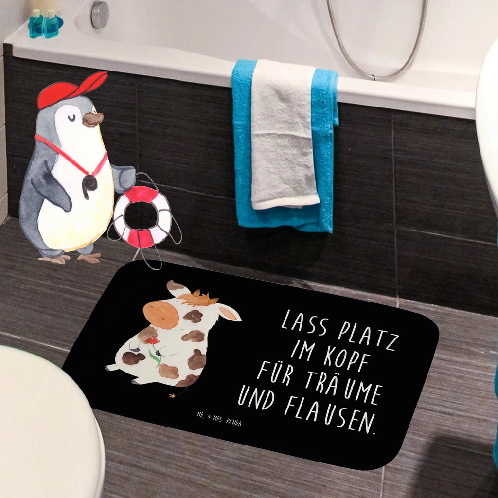 Entdecke unseren bezaubernden Badvorleger mit einer süßen Kuh aus der Bauernhof-Kollektion von Mr. & Mrs. Panda! Diese flauschige Badematte verwandelt dein Badezimmer in einen Ort voller Magie und Träume. Mit dem Spruch 'Lass Platz im Kopf für Träume und Flausen.' lädt die dekorative Duschmatte dazu ein, einen Moment innezuhalten und die kleinen Freuden des Lebens zu genießen. Die niedliche Kuh, die stolz mit einer Blume in der Hand posiert, ist nicht nur ein echter Hingucker, sondern sorgt auch für gute Laune beim täglichen Duschen oder Baden.