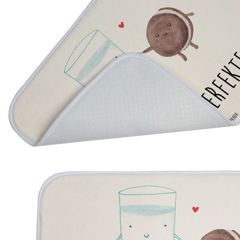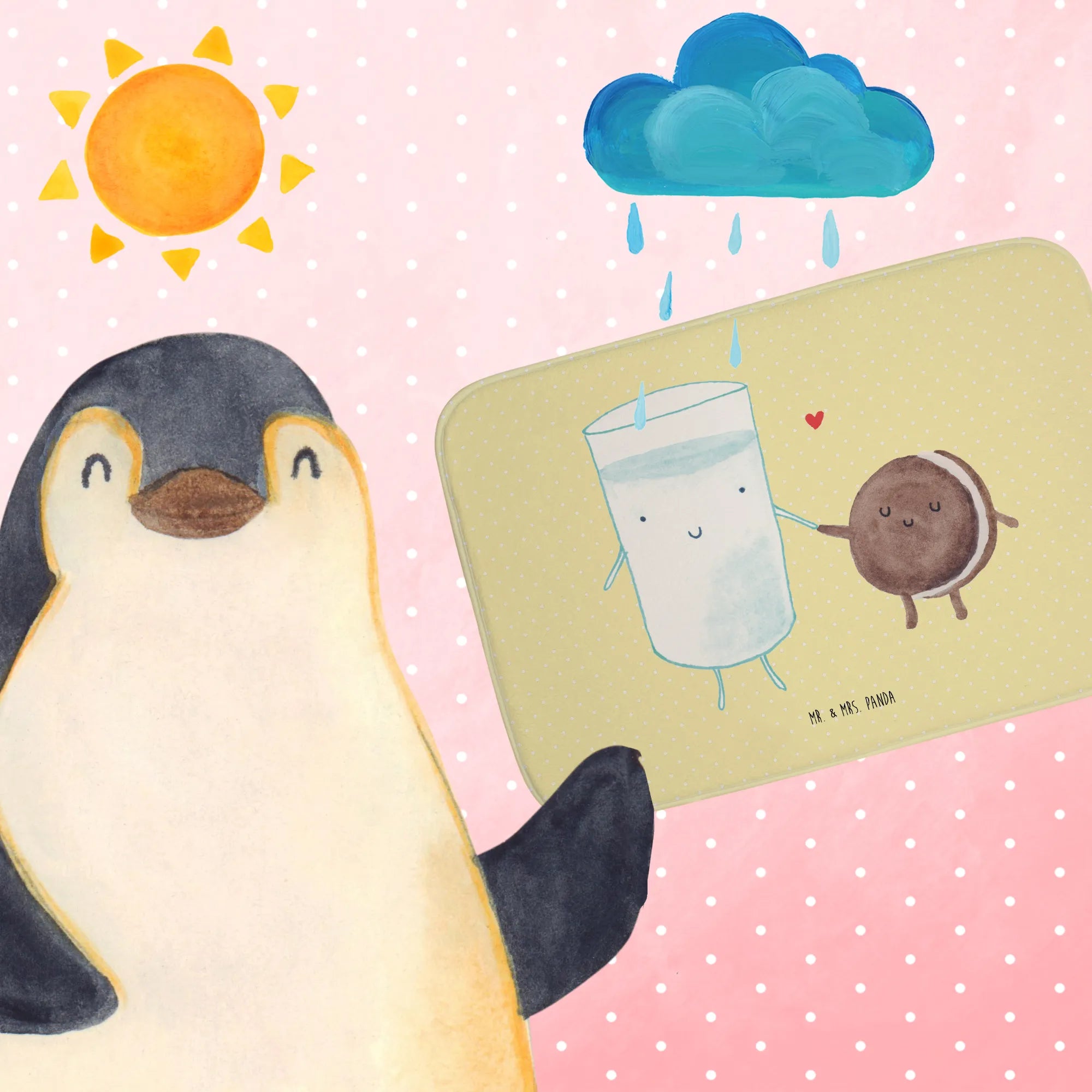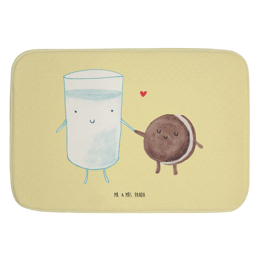 Die Badematte "Milch & Keks" von Mr. & Mrs. Panda ist der perfekte Begleiter für dein Badezimmer. Egal, ob du frisch aus der Dusche kommst oder einfach nur deinen Fußboden verschönern möchtest, diese fabelhafte Badmatte bringt ordentlich Spaß und gute Laune in jeden Raum.