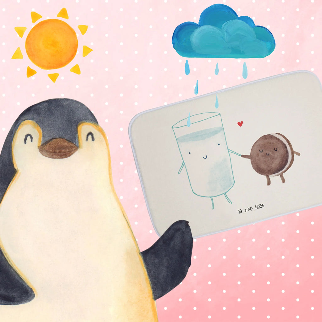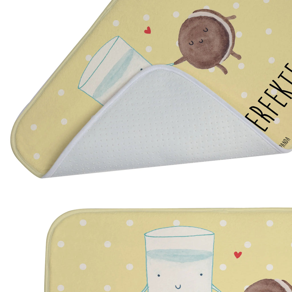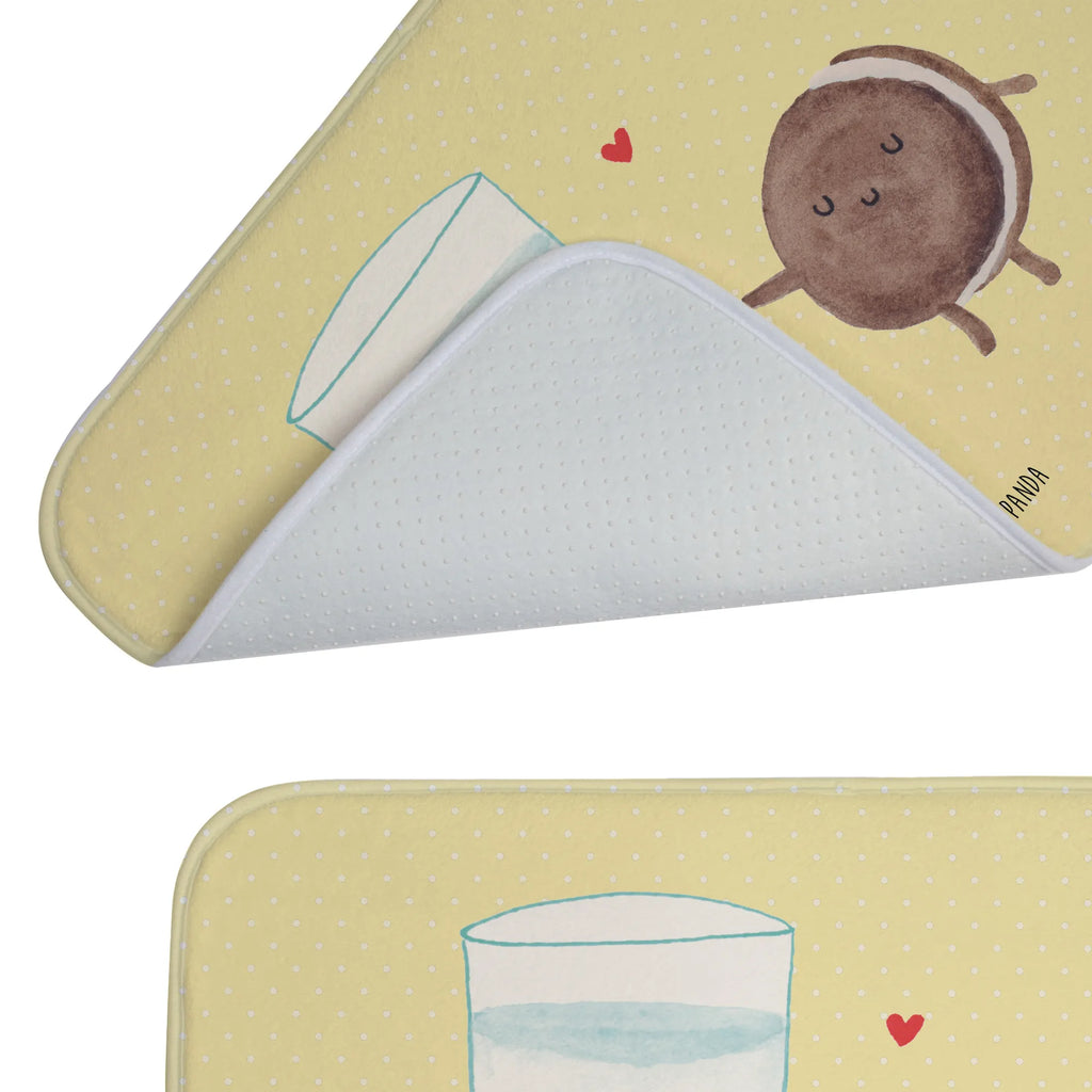 Die Badematte "Milch & Keks" von Mr. & Mrs. Panda ist der perfekte Begleiter für dein Badezimmer. Egal, ob du frisch aus der Dusche kommst oder einfach nur deinen Fußboden verschönern möchtest, diese fabelhafte Badmatte bringt ordentlich Spaß und gute Laune in jeden Raum.