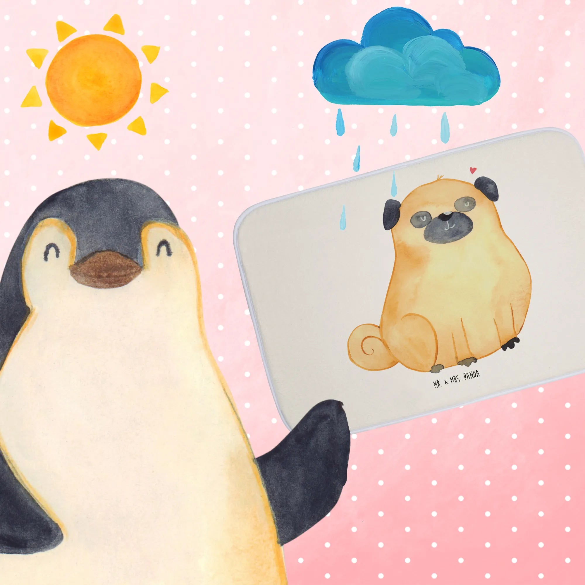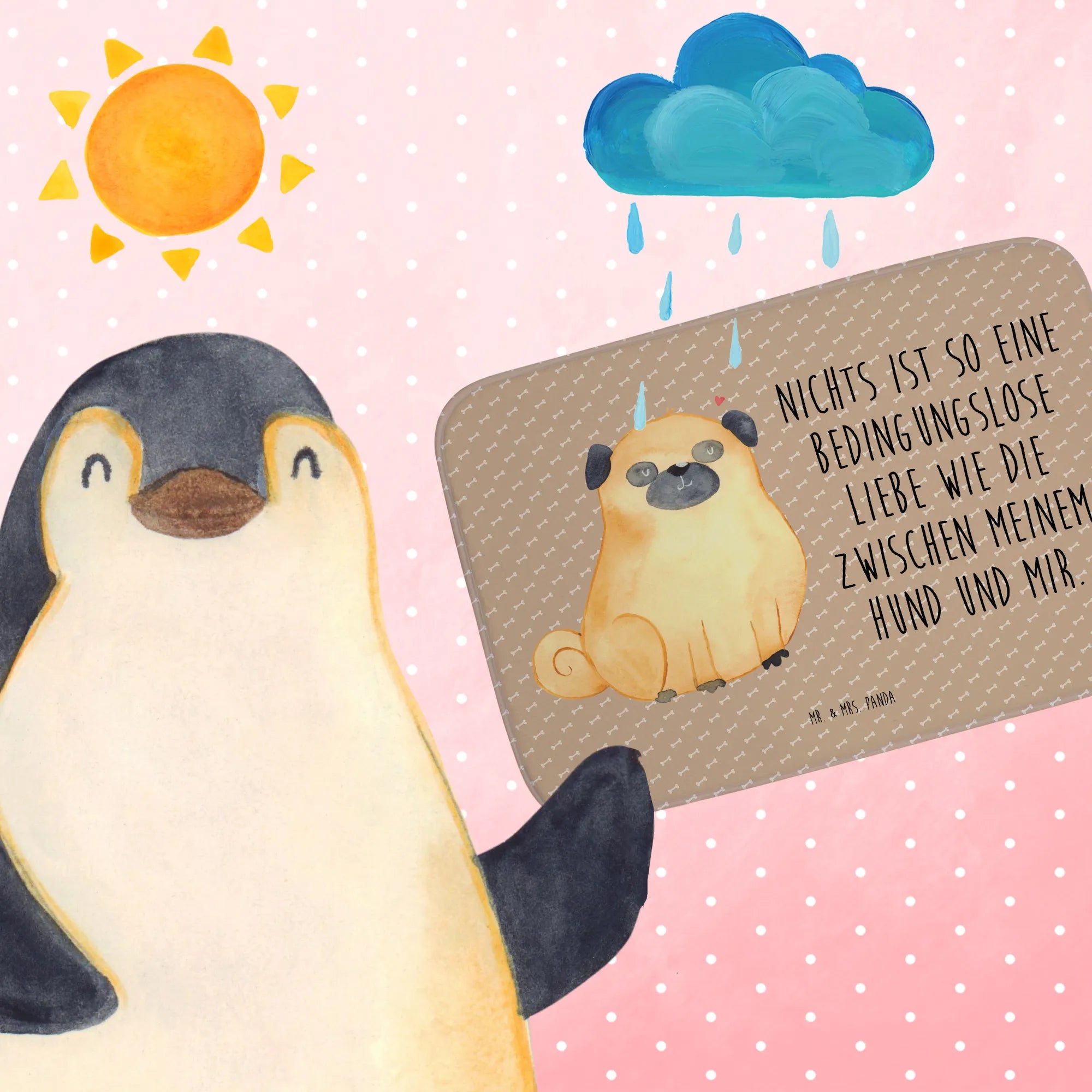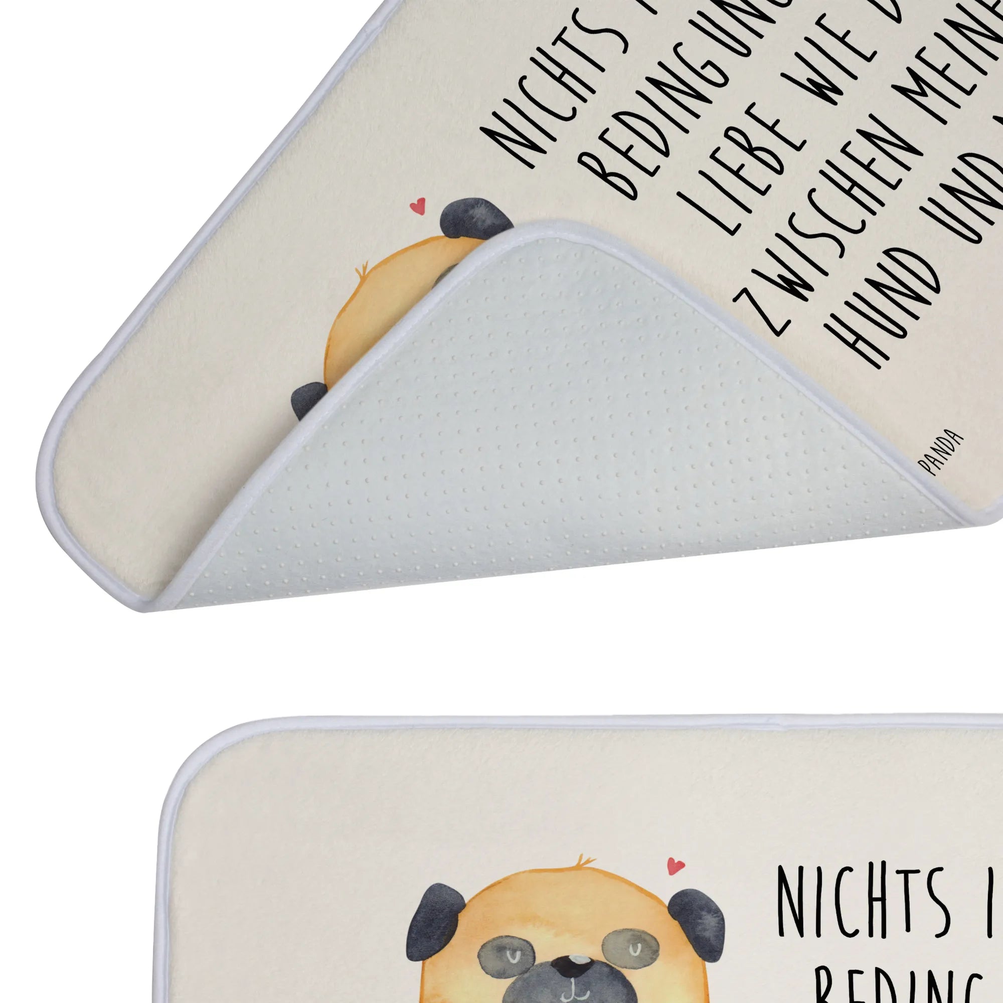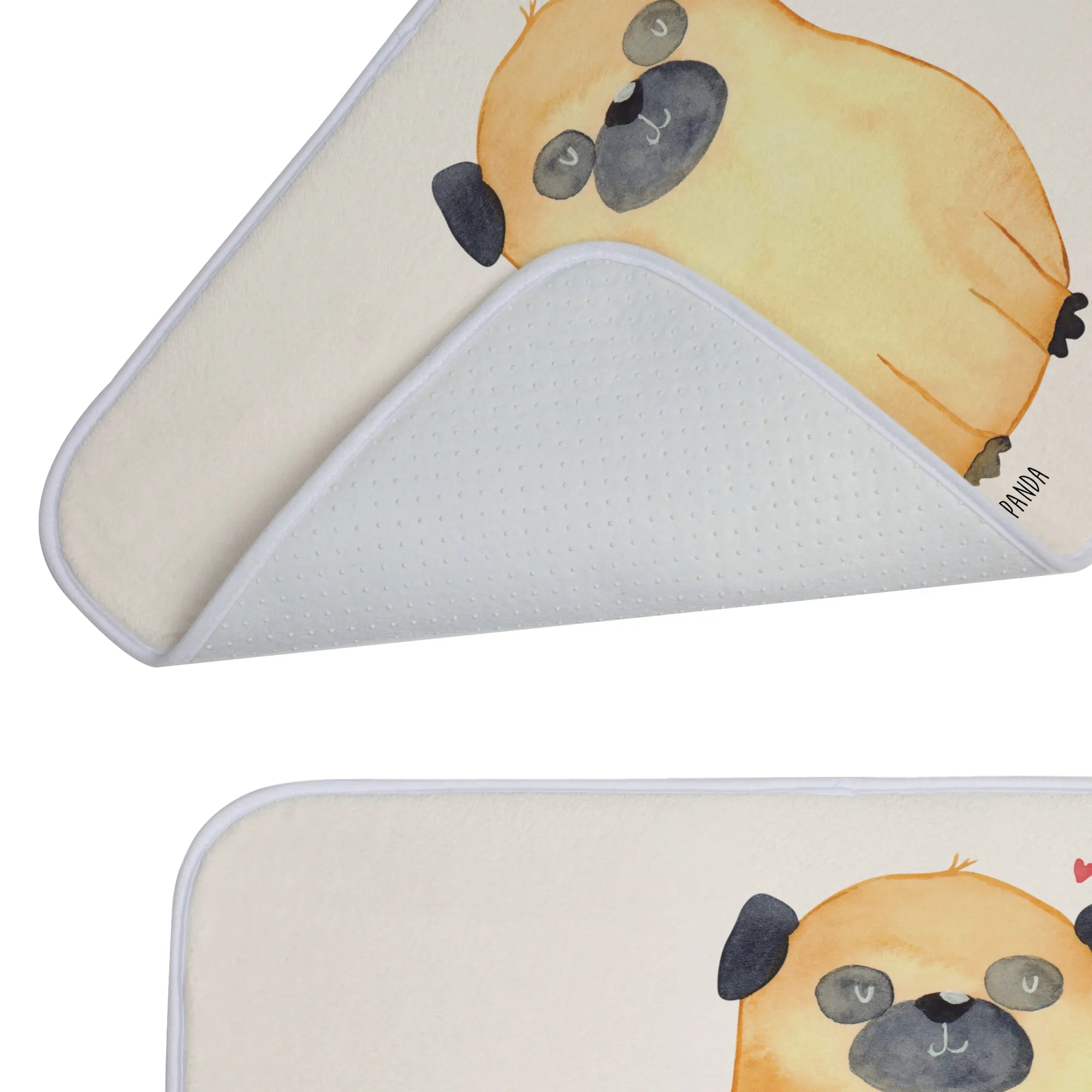 Mache dein Badezimmer ganz individuell und zeige der ganzen Welt deine Leidenschaft zu Hunden mit diesem Badteppich. Perfekt für alle Mops-Besitzer und Hundeliebhaber – die Hunde Kollektion von Mr. & Mrs. Panda bietet dir eine liebevoll zusammengestellte Auswahl an Produkten, die zeigen, wie viel Liebe zwischen dir und deinem tierischen Begleiter besteht.