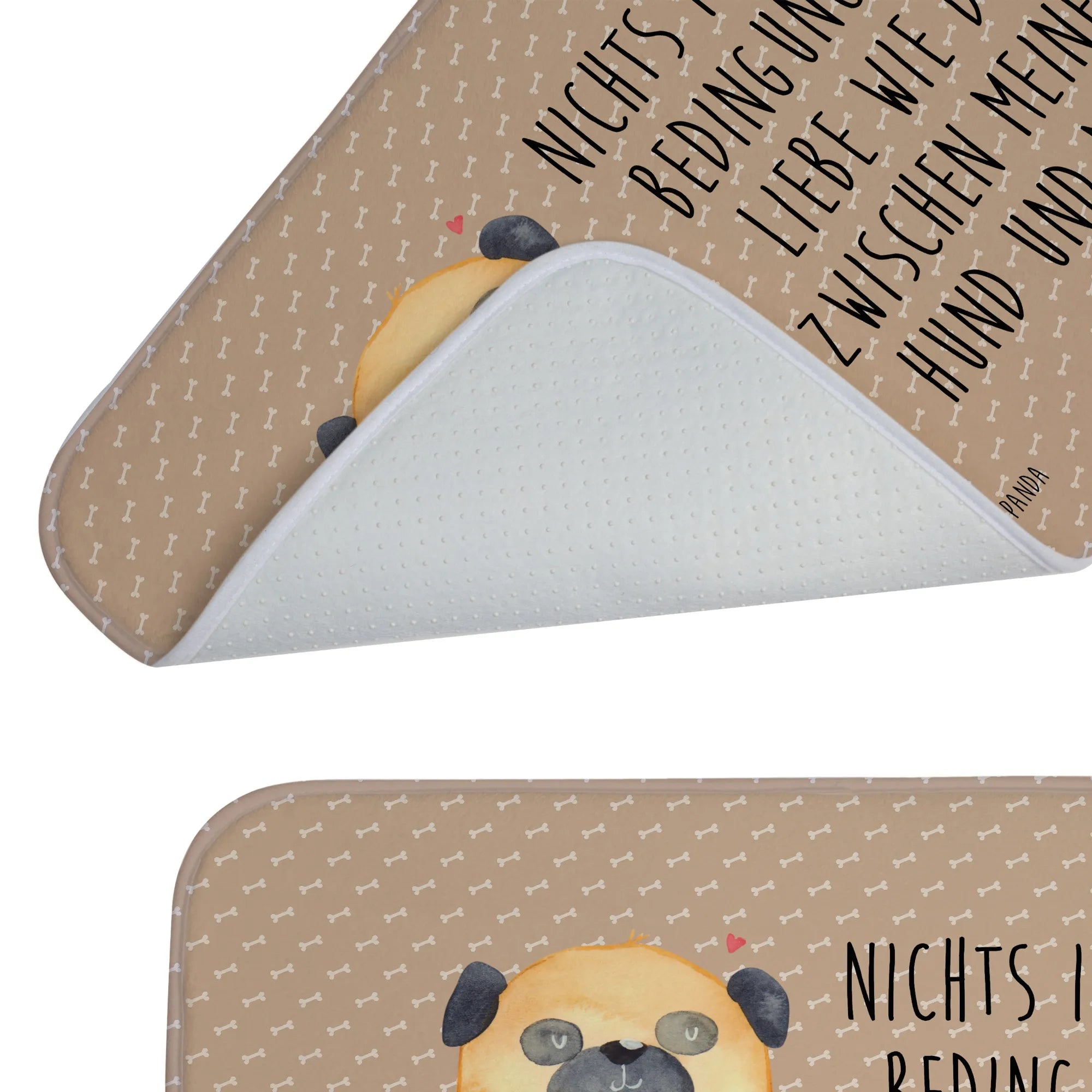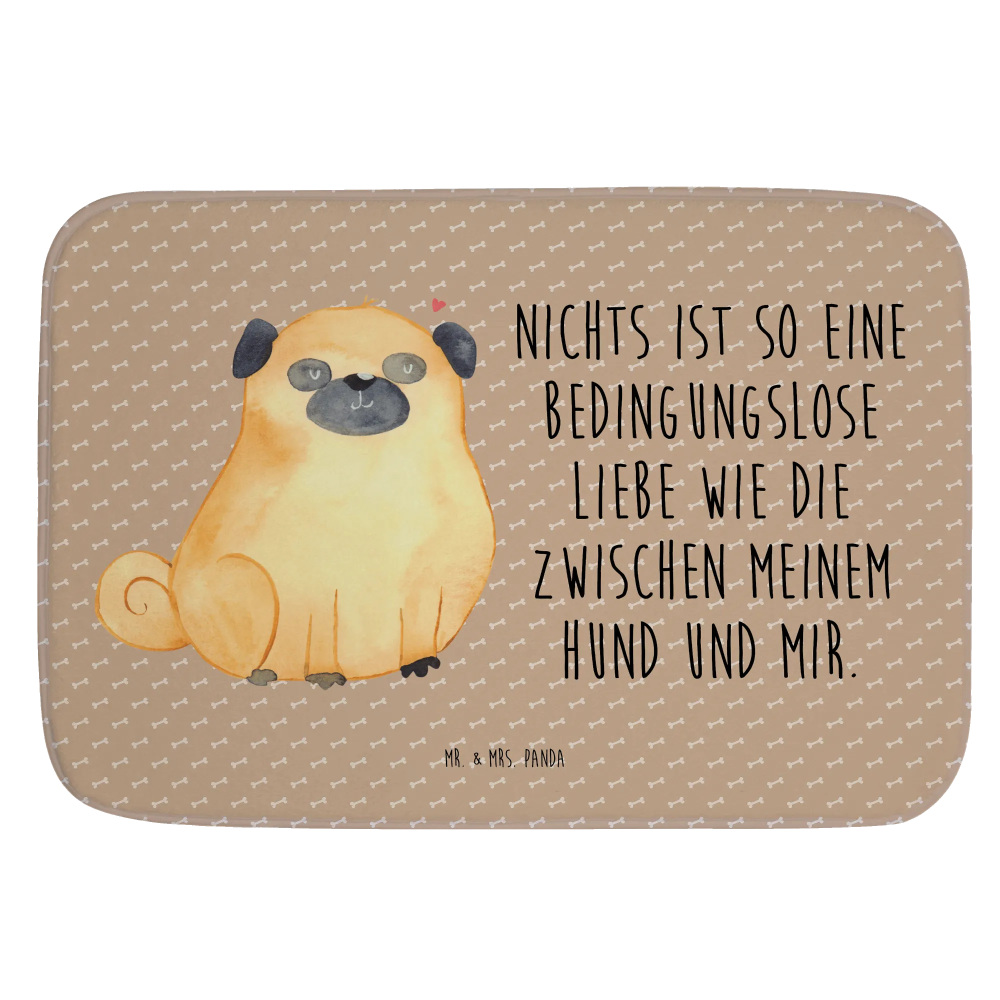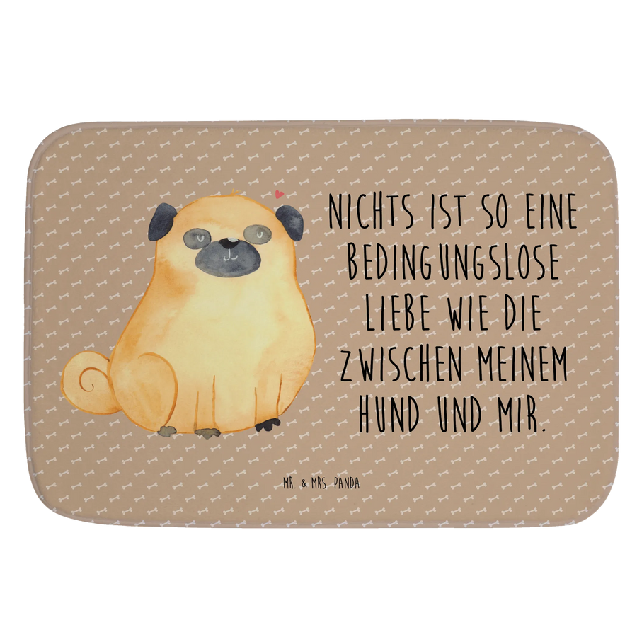 Der wunderschöne Badvorleger mit dem niedlichen Mops-Motiv von Mr. & Mrs. Panda ist das perfekte Geschenk für alle Hundeliebhaber. Mit einem Slogan, der die bedingungslose Liebe zwischen dir und deinem Hund verkörpert, bringt dieser Badteppich nicht nur Freude in dein Badezimmer, sondern sorgt auch für einen sicheren Stand, auch wenn es mal nass wird.